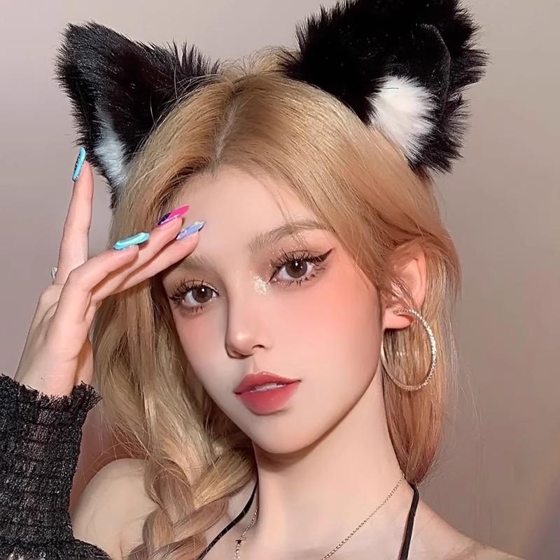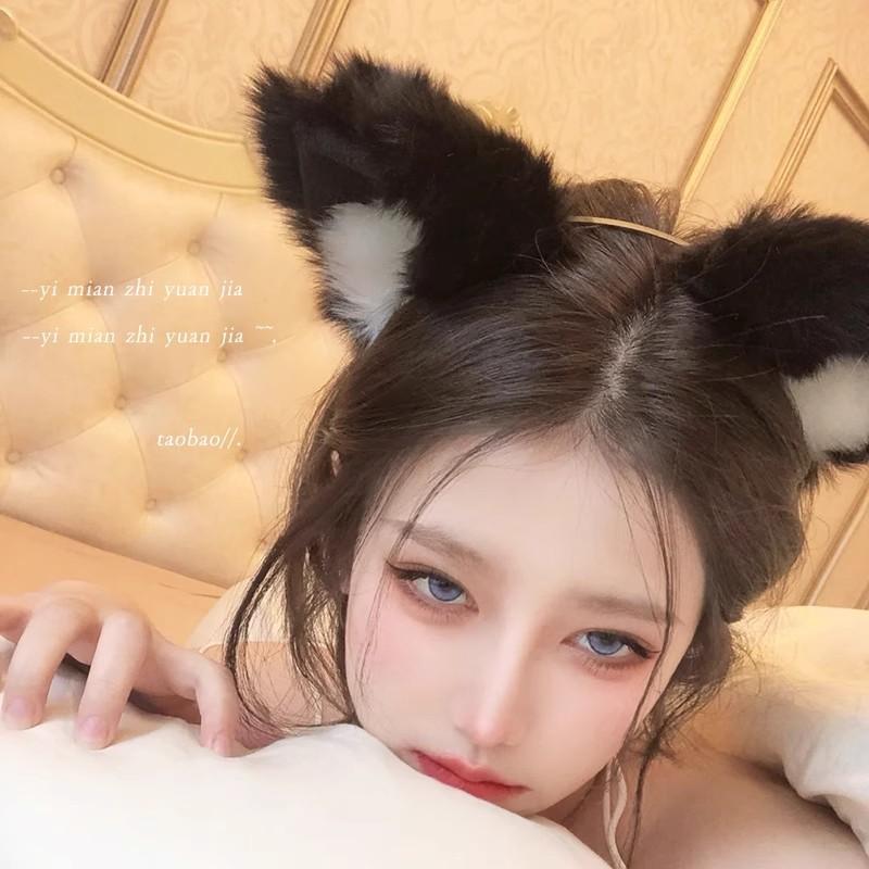 Diadema con orejas de gato para el pelo, accesorio para el pelo de zorro sexy de peluche de dibujos animados para mujer, pinzas para el pelo de sirvienta, diadema con foto exagerada