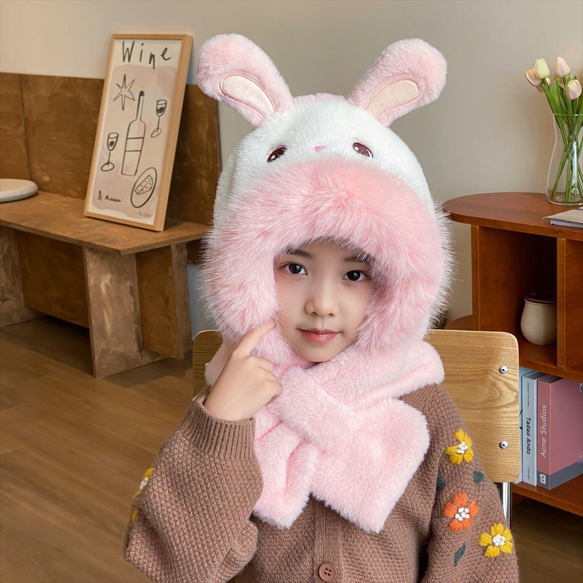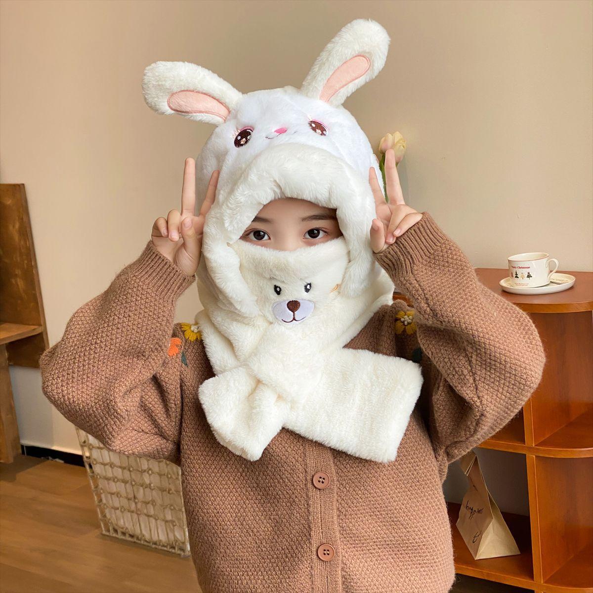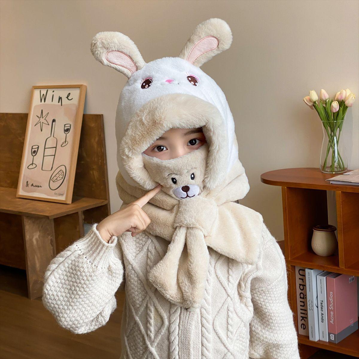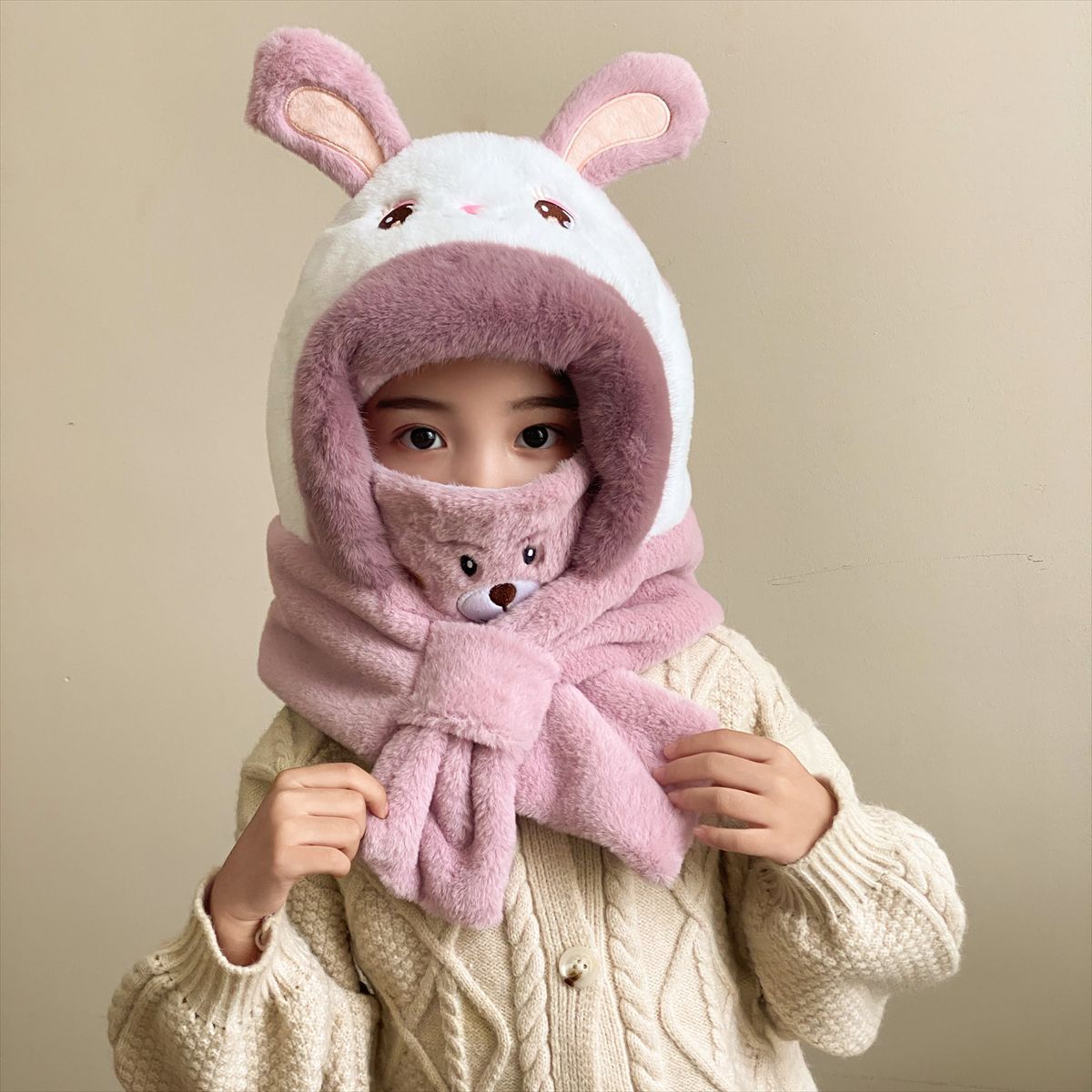 Gorro de peluche cálido con diseño de conejo pequeño, bonito y versátil, para estudiantes de otoño e invierno, con protección para las orejas, estilo Lei Feng, estilo coreano.