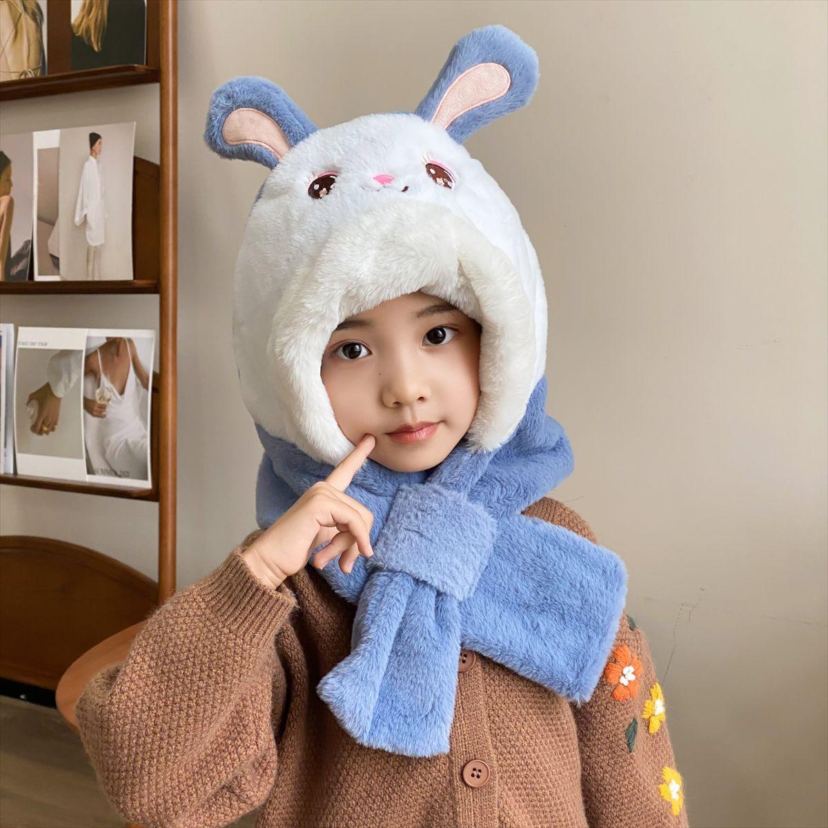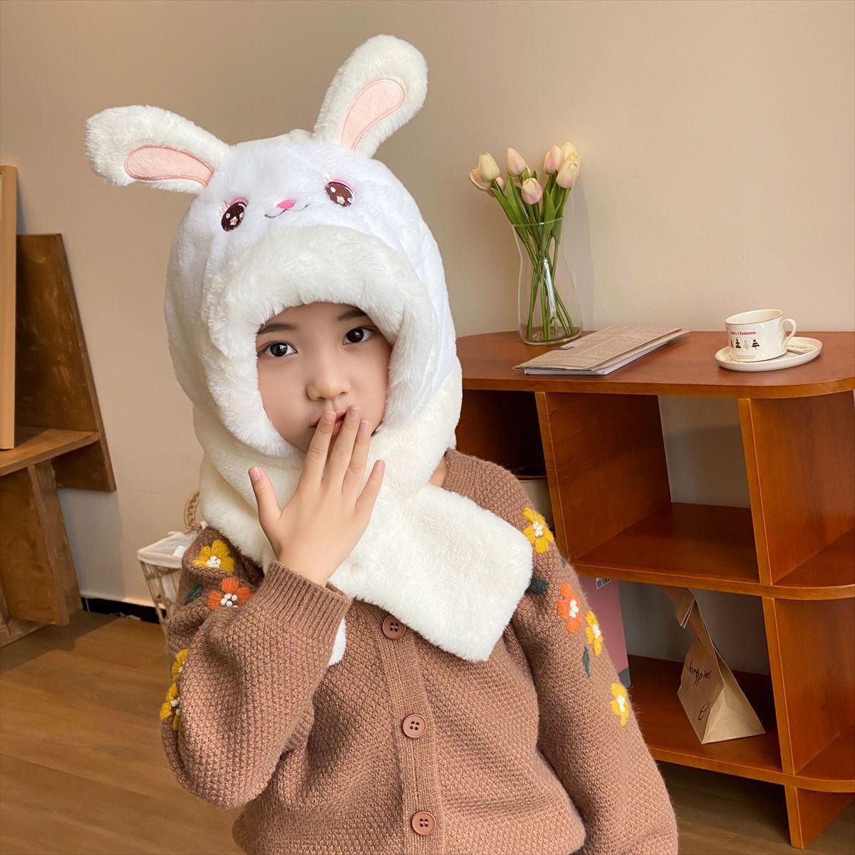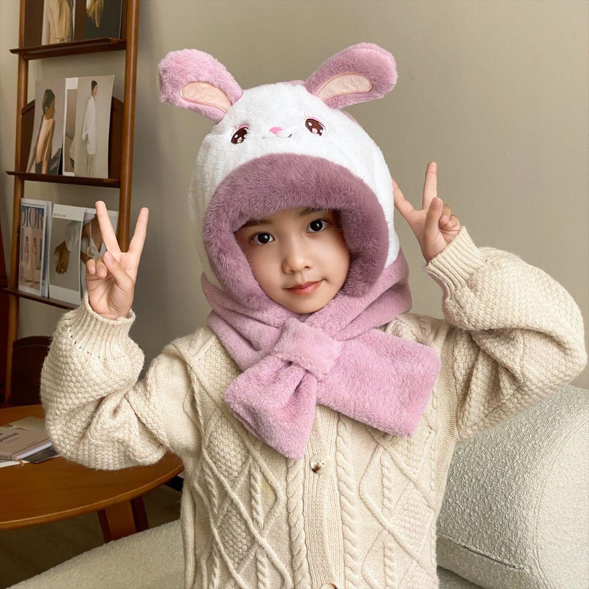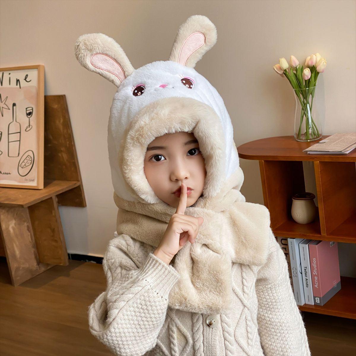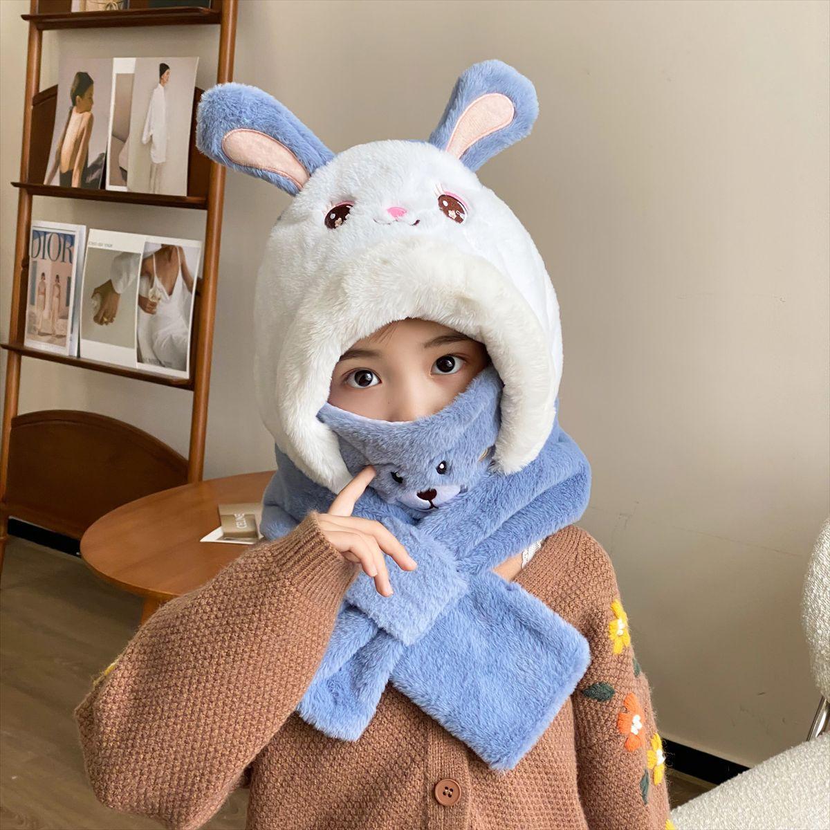 Gorro de peluche cálido con diseño de conejo pequeño, bonito y versátil, para estudiantes de otoño e invierno, con protección para las orejas, estilo Lei Feng, estilo coreano.