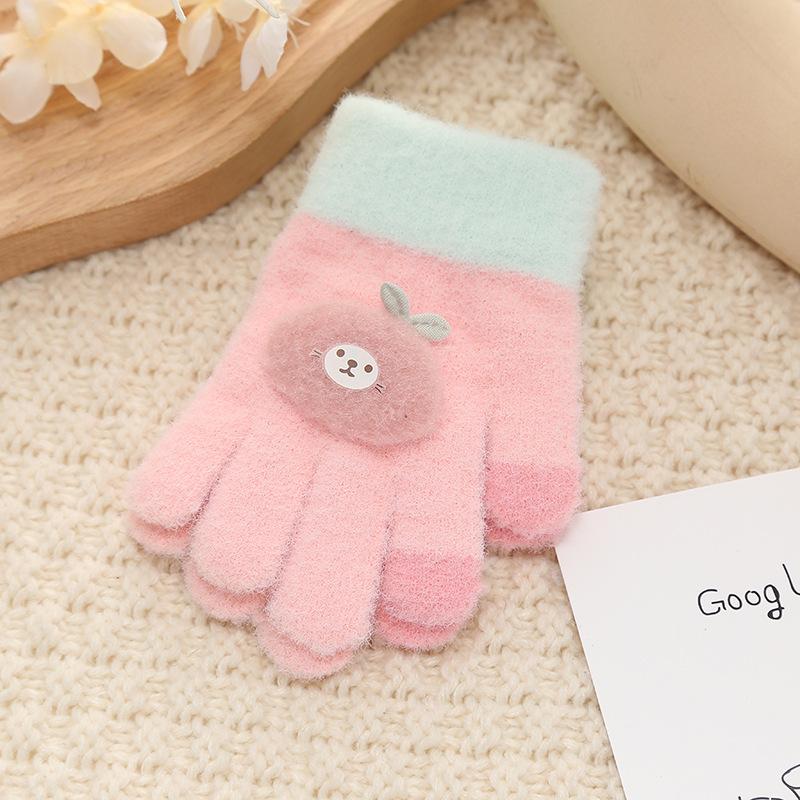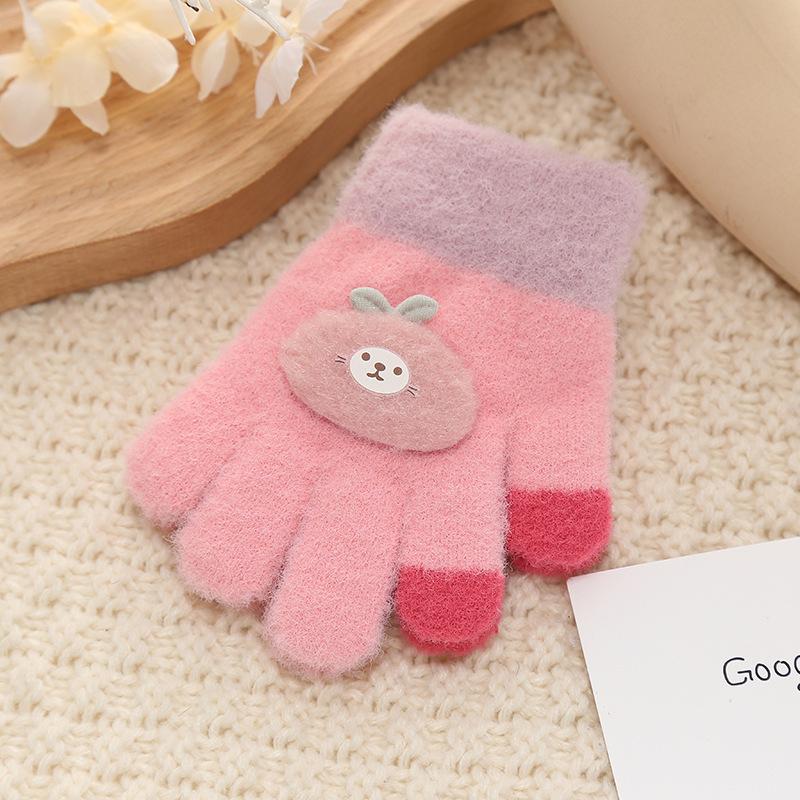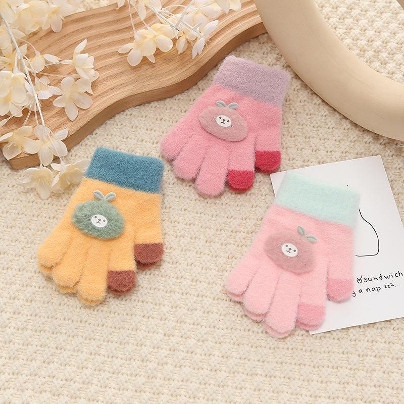 Guantes de dibujos animados para niños estilo coreano Otoño e Invierno Nuevo Lindo Bebé Cálido Cinco Dedos Felpa Color Sólido Guantes para Niños a Prueba de Frío