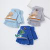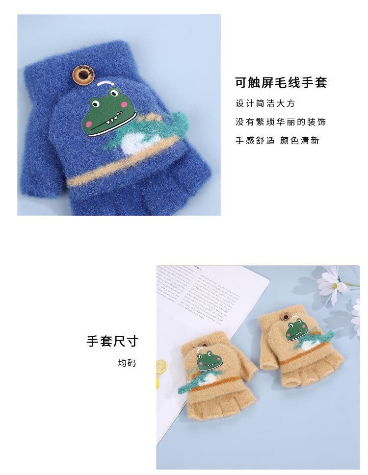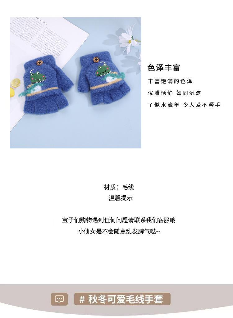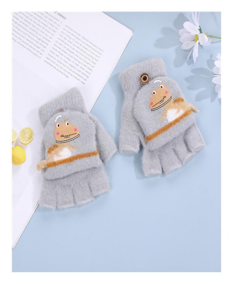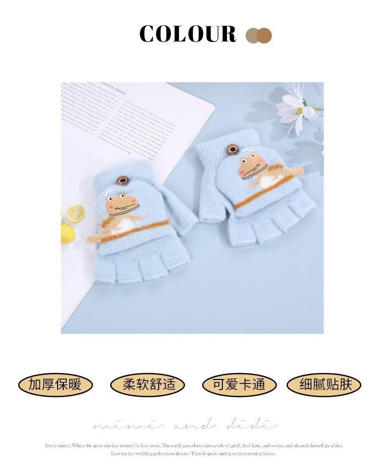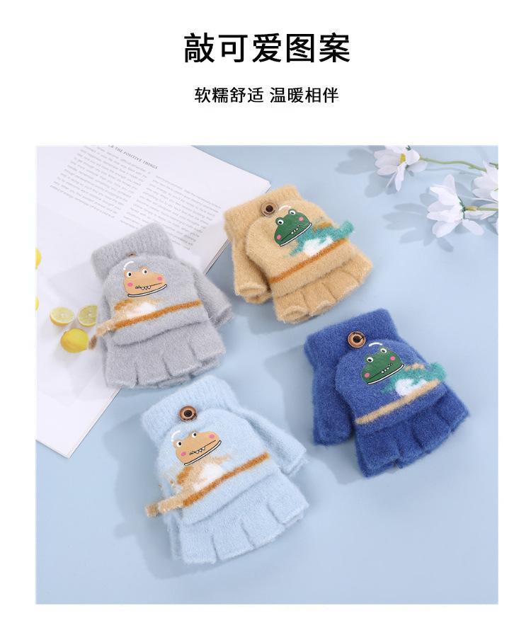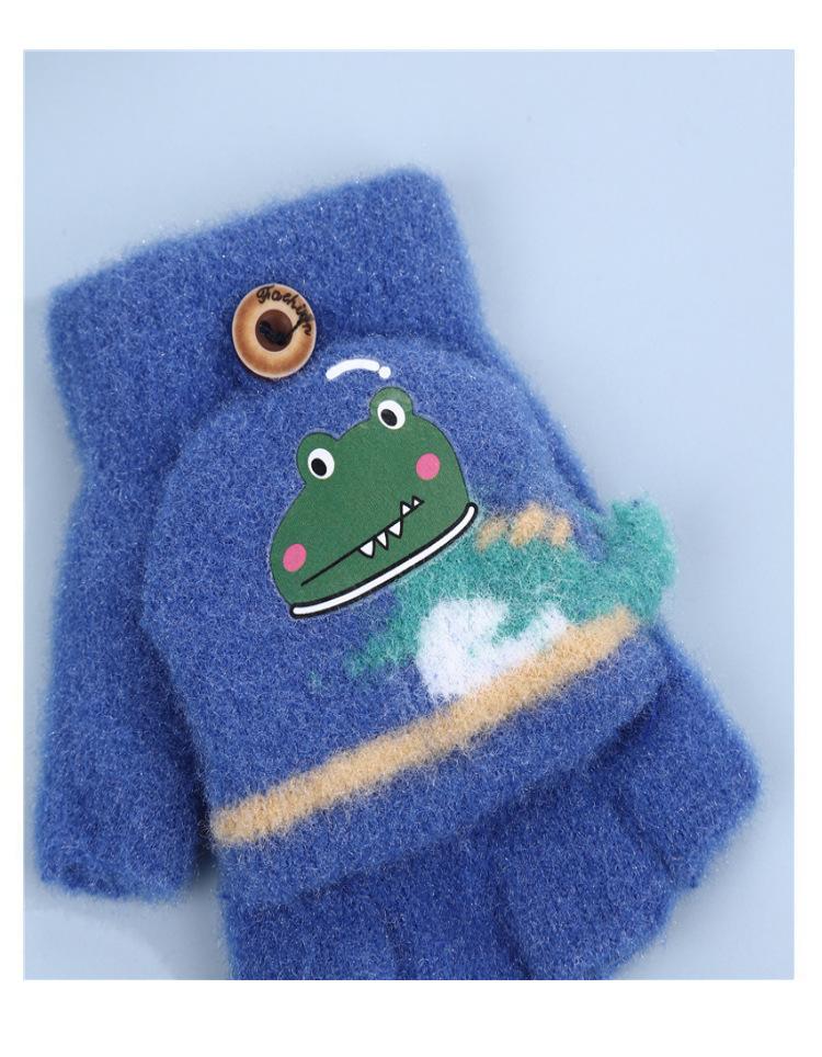 Guantes Flip para Niños Lindo Dinosaurio de Dibujos Animados Niños Bebé Niños Jardín de Infancia Invierno Cálido Medio Dedo Lana