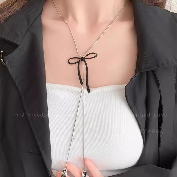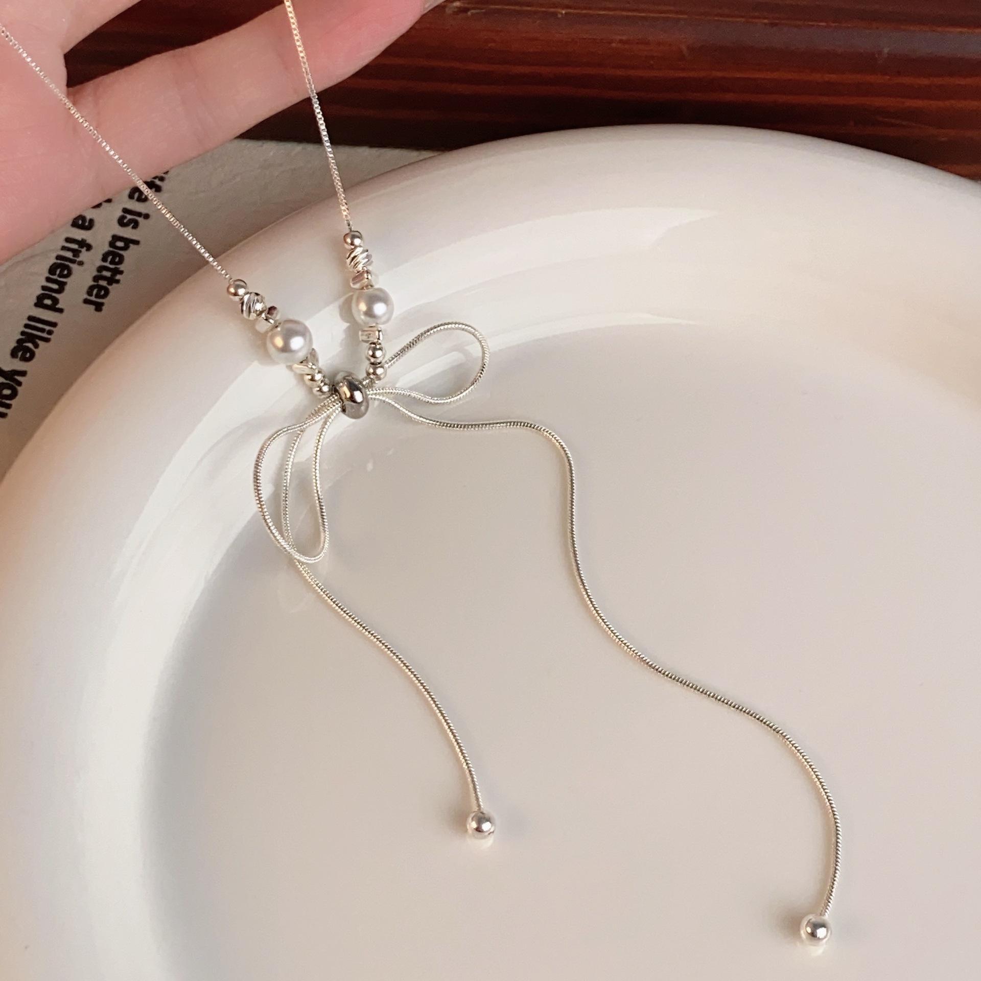 Moda Dulce Fragmentado Plata Lazo Collar de Perlas Nicho Simple Exquisito Colgante Zapatillas de Ballet Cadena para el Cuello Nuevo
