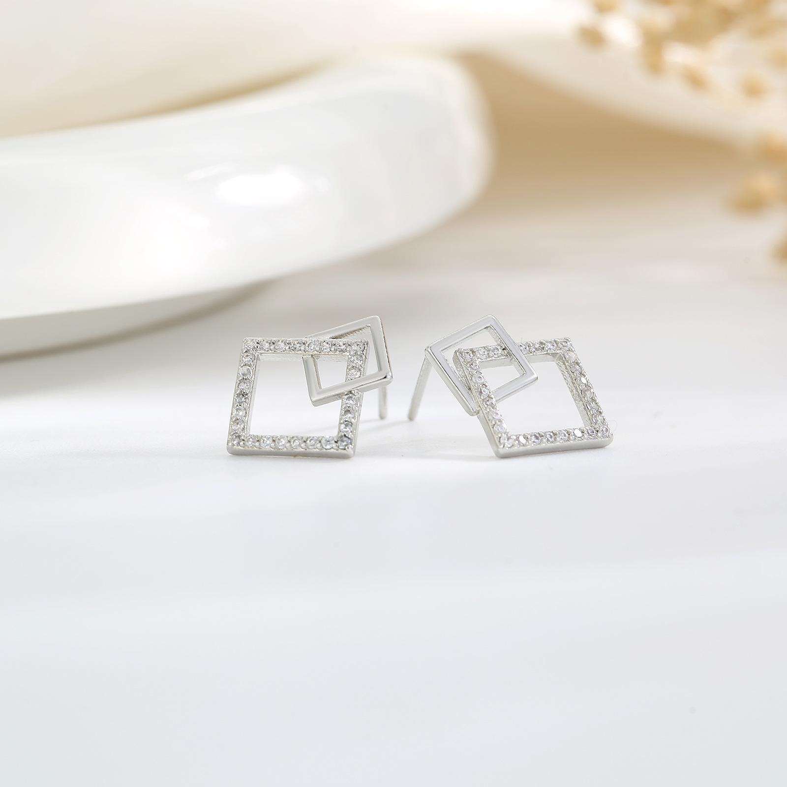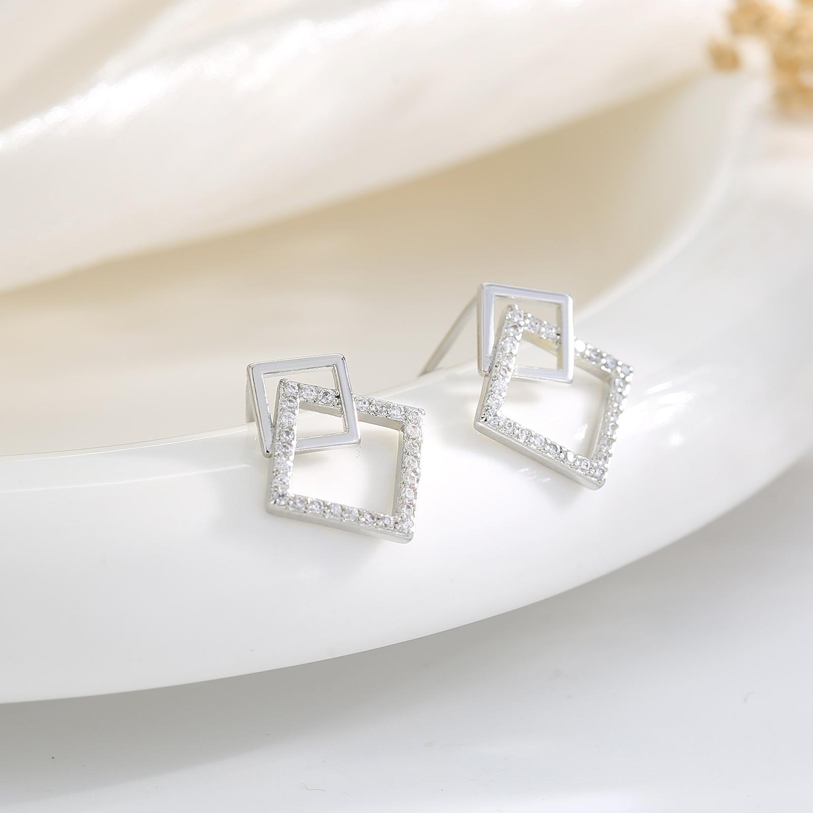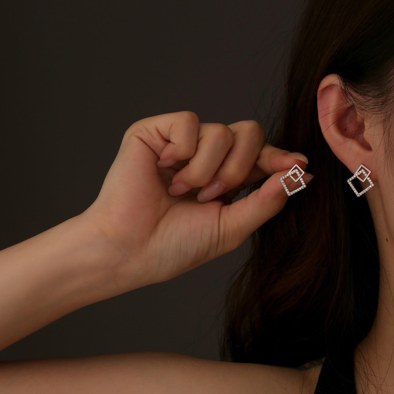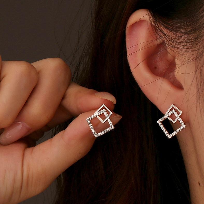 Compra Nueva moda ins aretes cuadrados de temperamento combinables con todo, aretes geométricos de personalidad simples con diamantes brillantes al por mayor al por mayor en Joom.pro