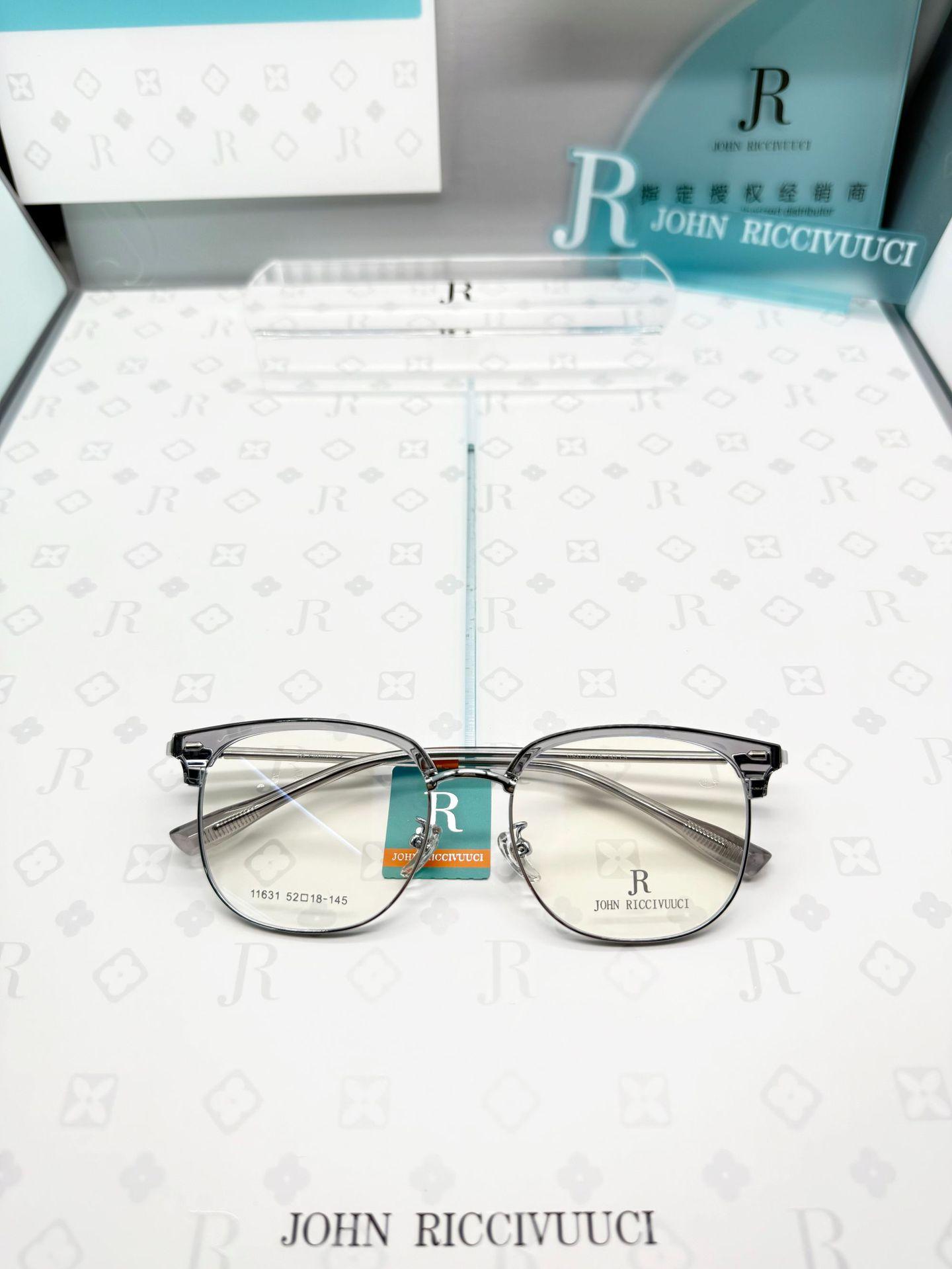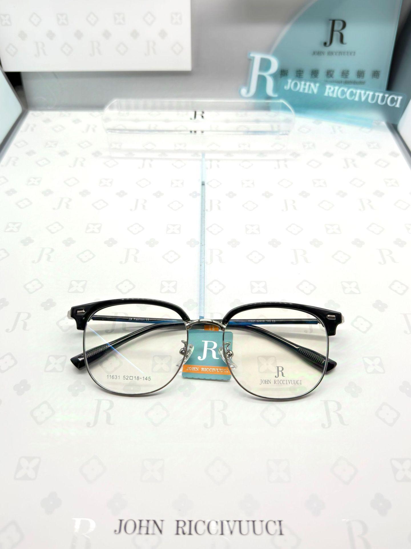 Venta al por mayor 11631, nueva moda, gafas ultraligeras de negocios con montura grande y revestimiento IP de dos colores, patas talladas