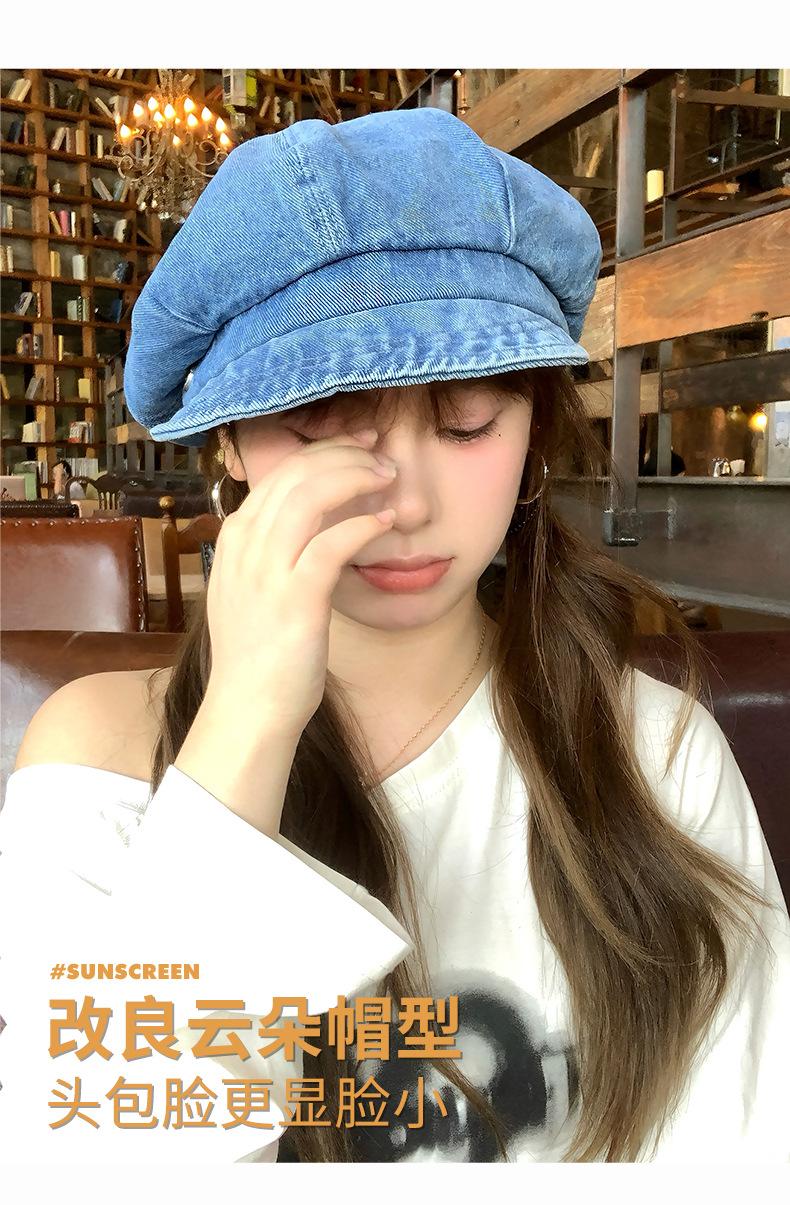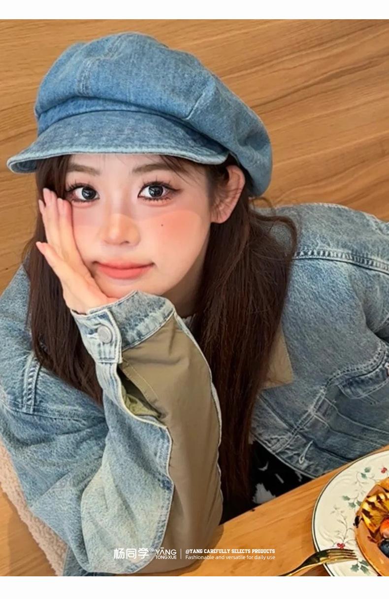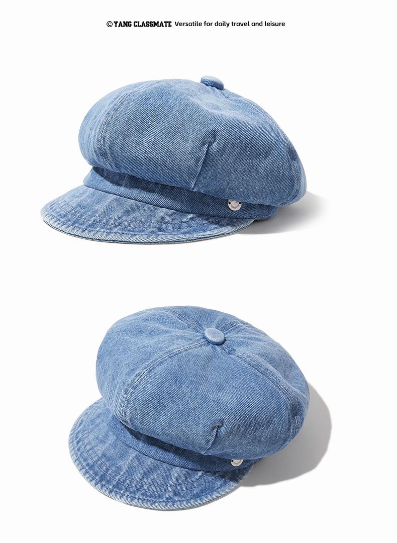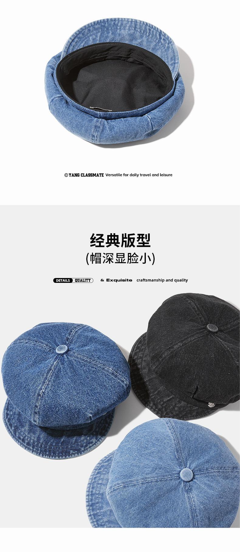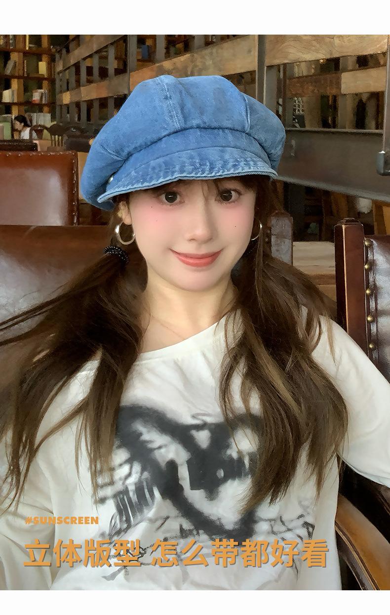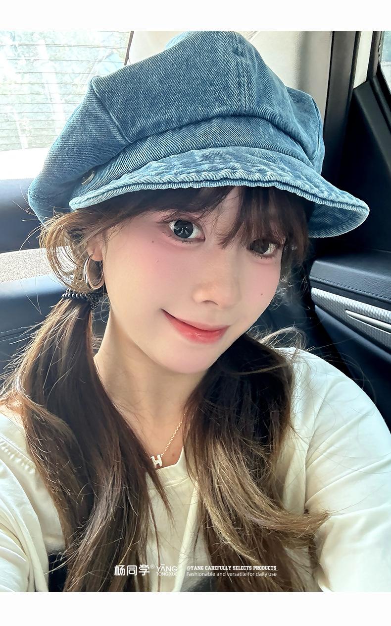 Yang Tongxue Boina de mezclilla estrictamente seleccionada Delgada transpirable Gorra de avance Retro Gorra octogonal Verano Nuevo Gorra de repartidor para mujer