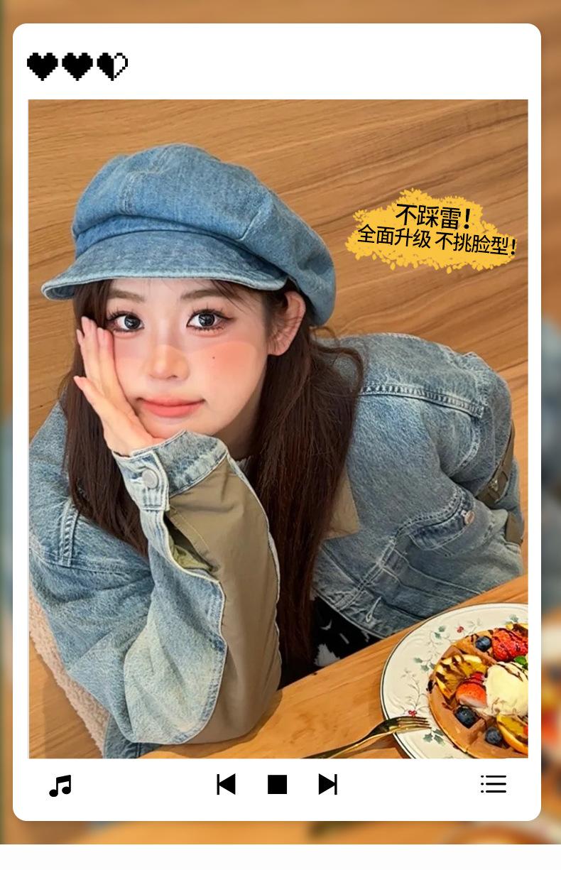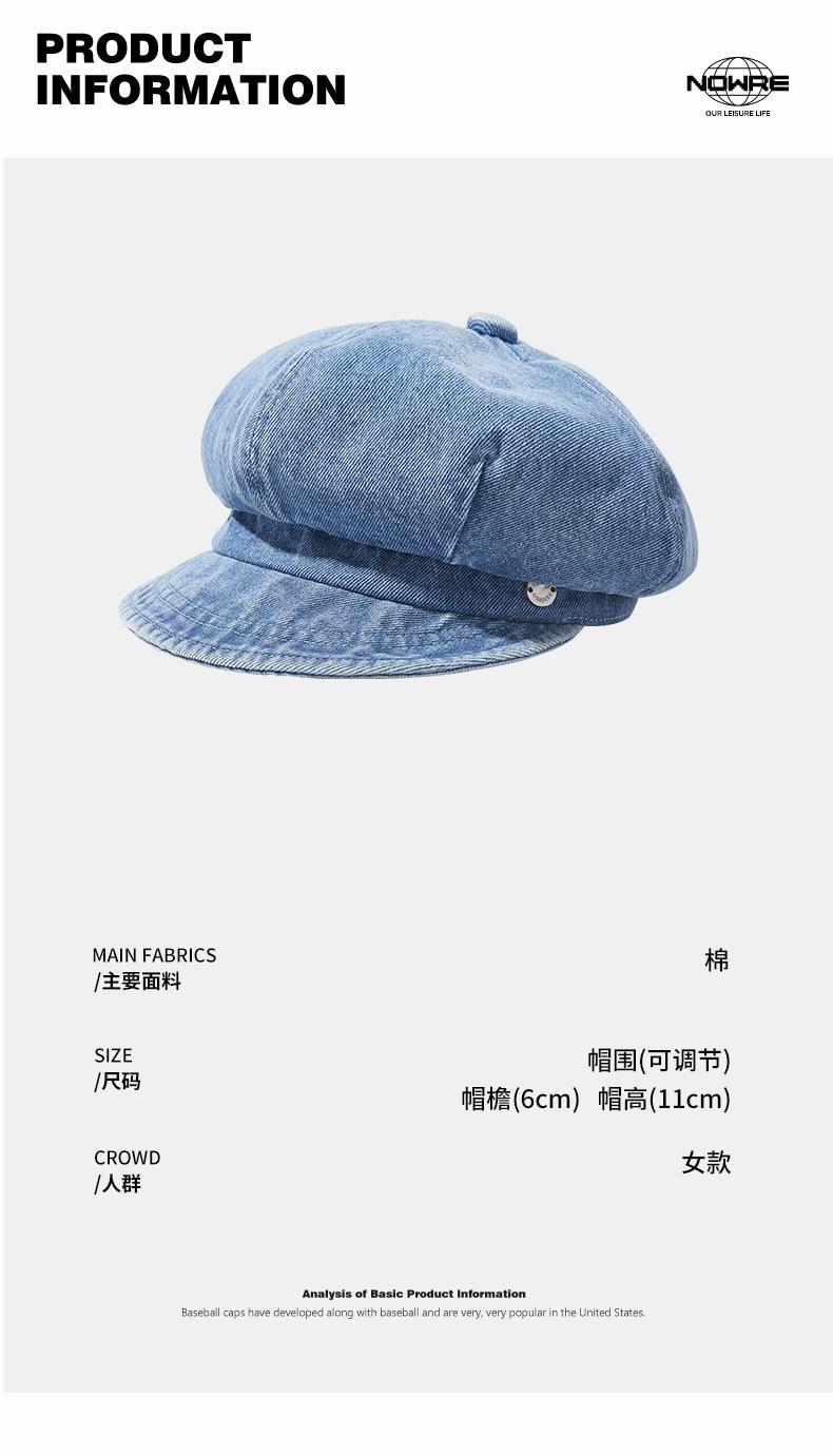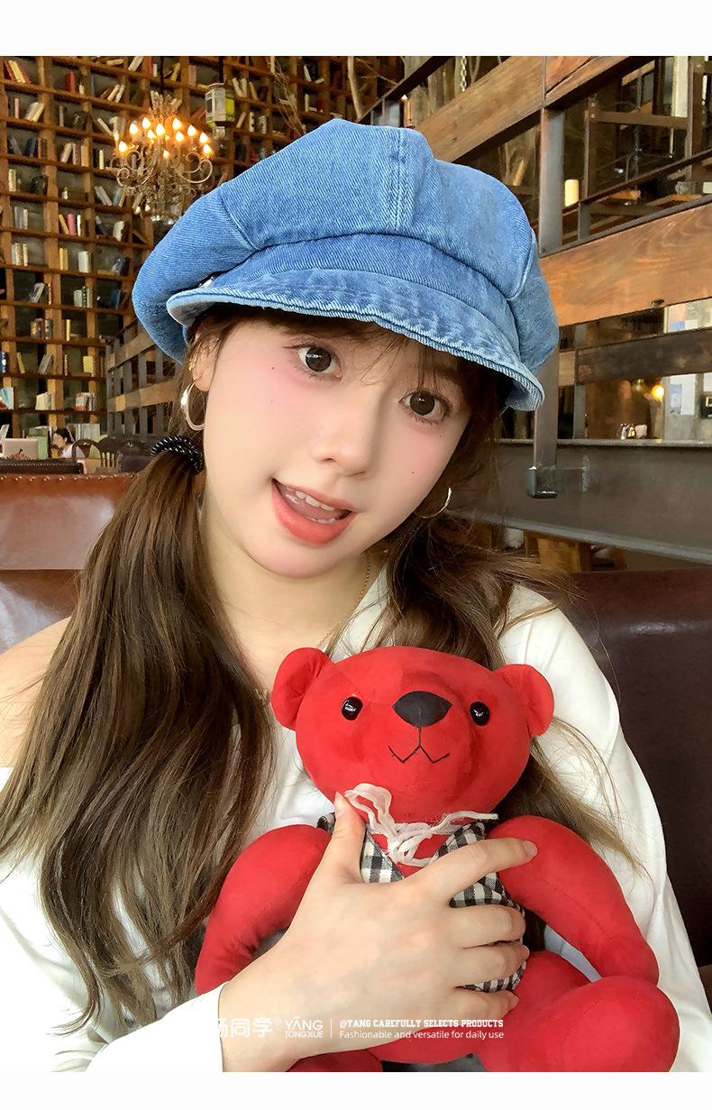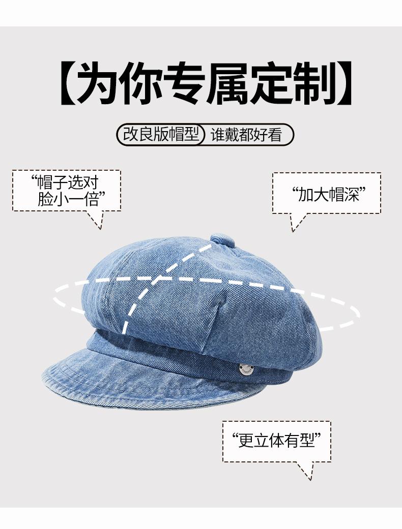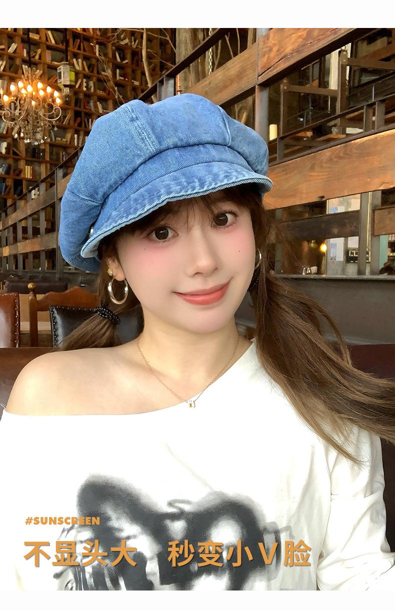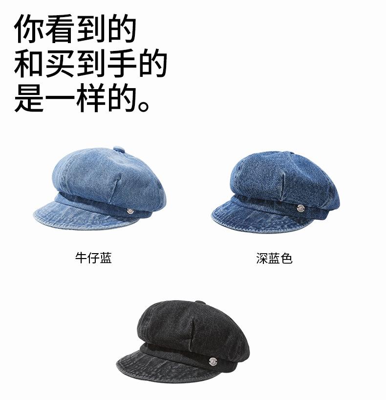 Yang Tongxue Boina de mezclilla estrictamente seleccionada Delgada transpirable Gorra de avance Retro Gorra octogonal Verano Nuevo Gorra de repartidor para mujer