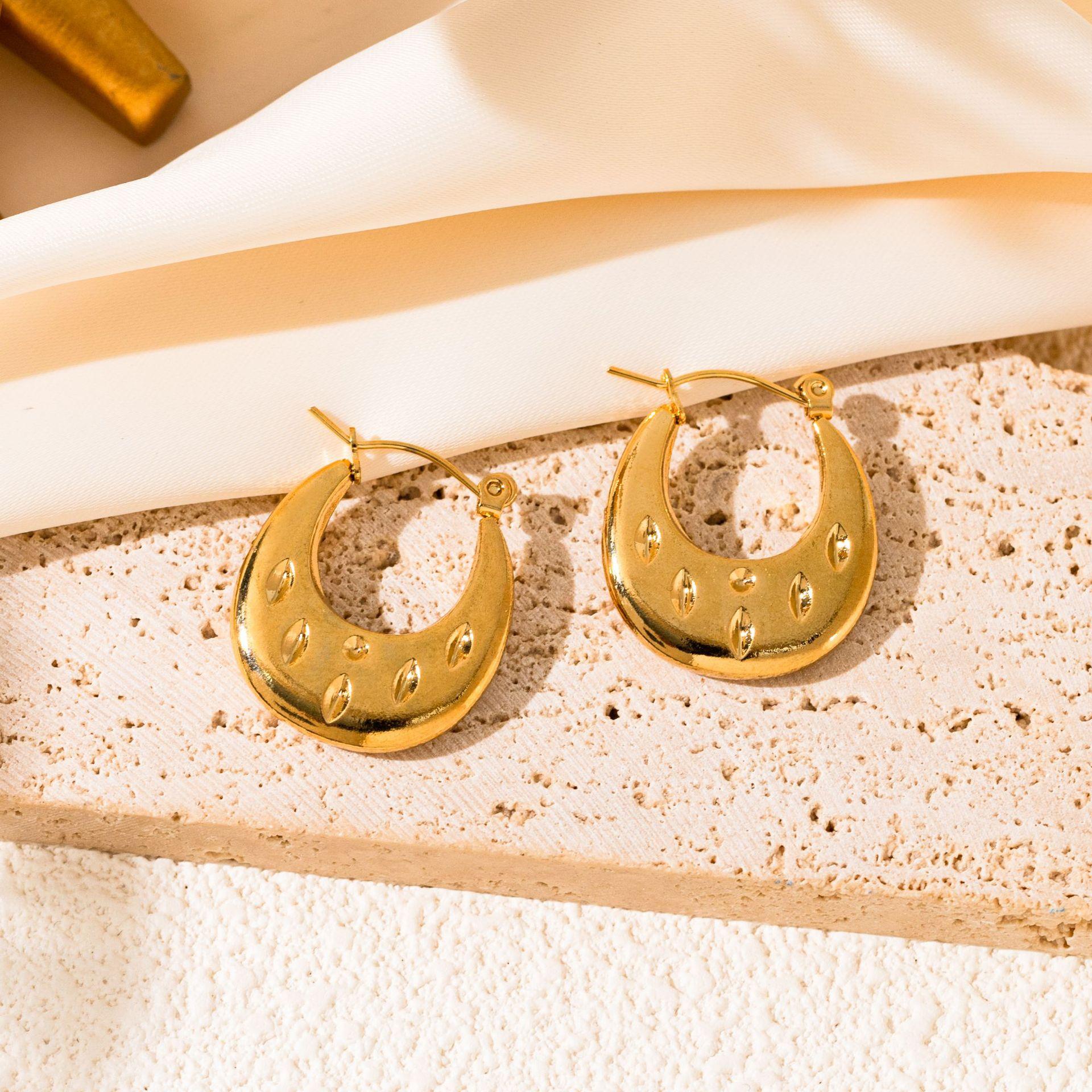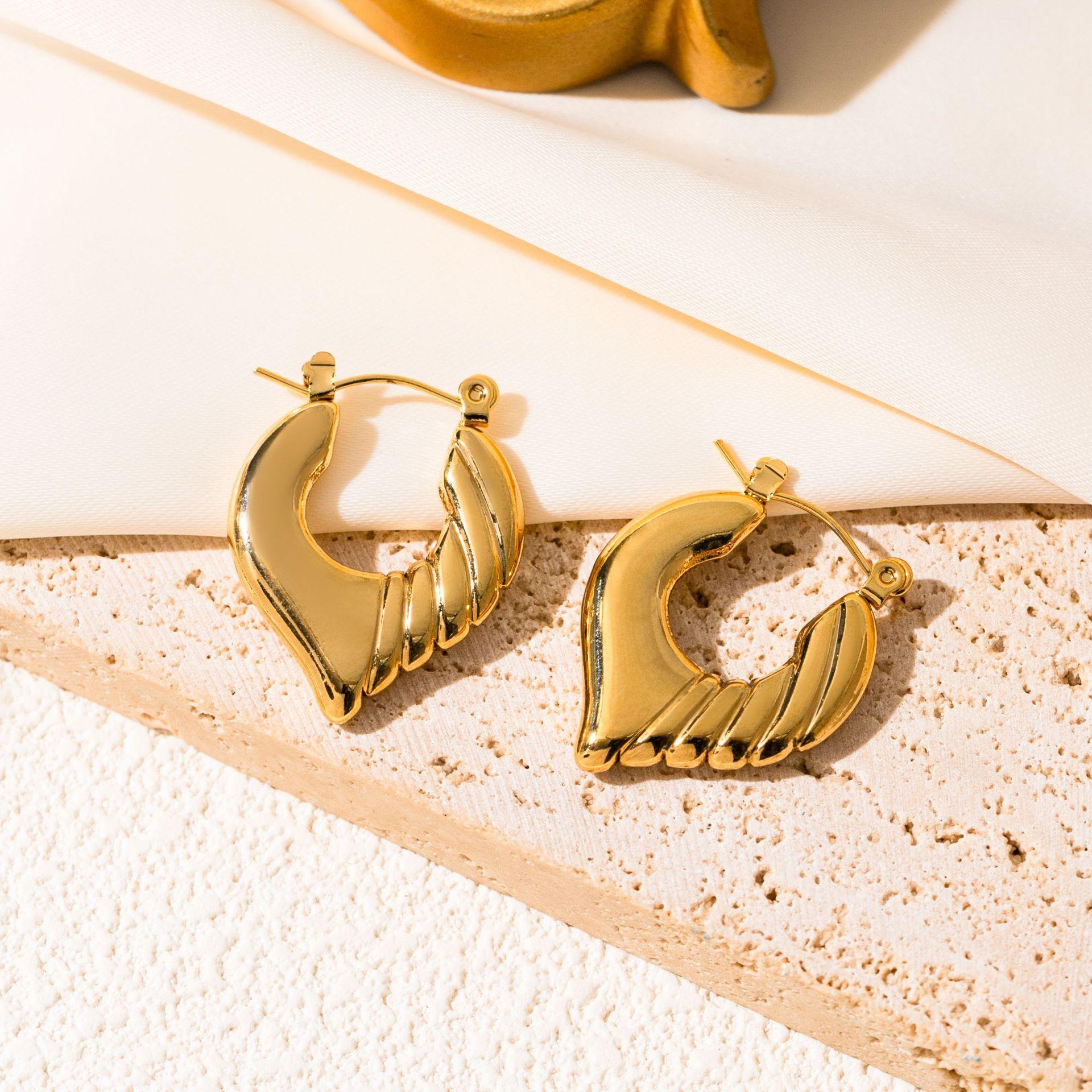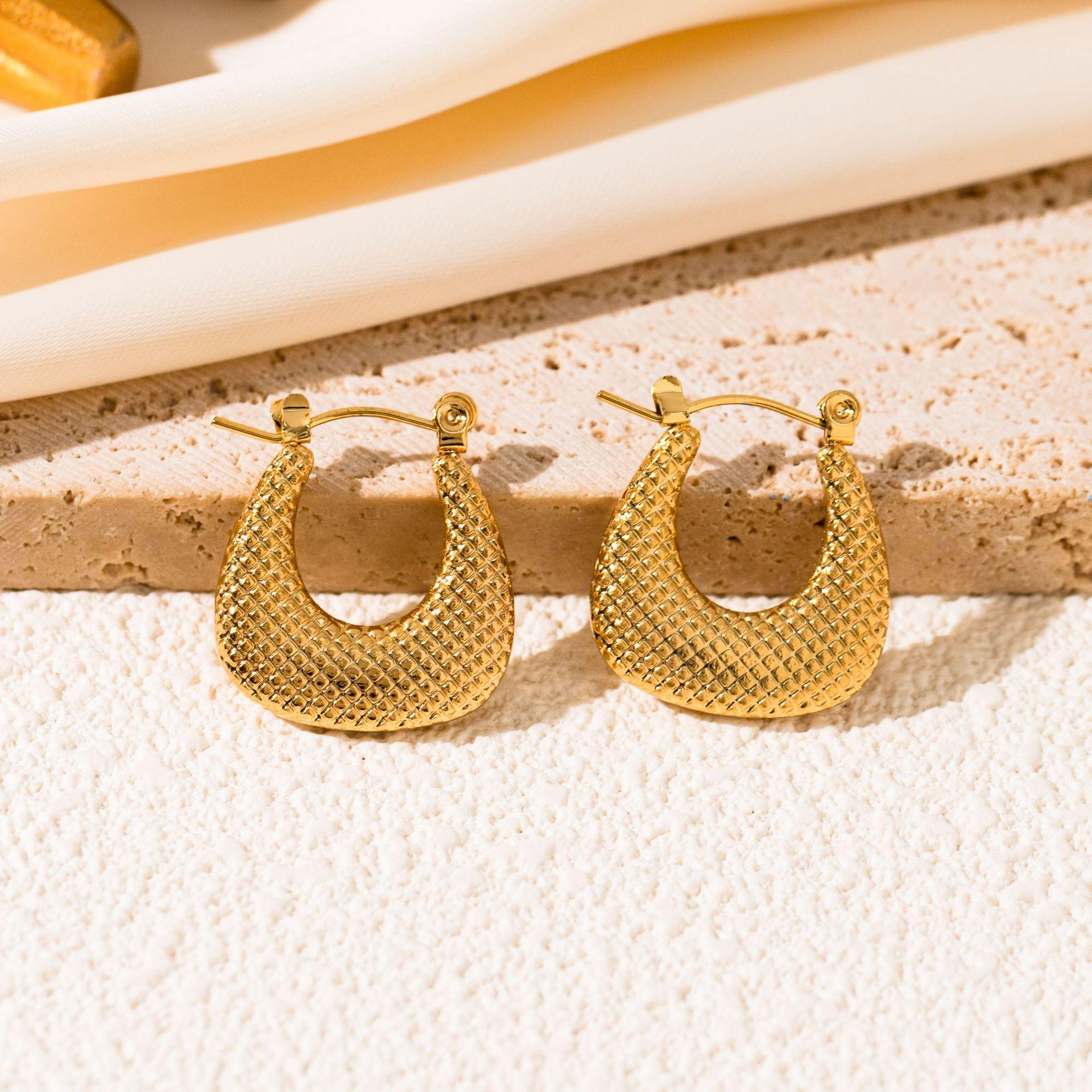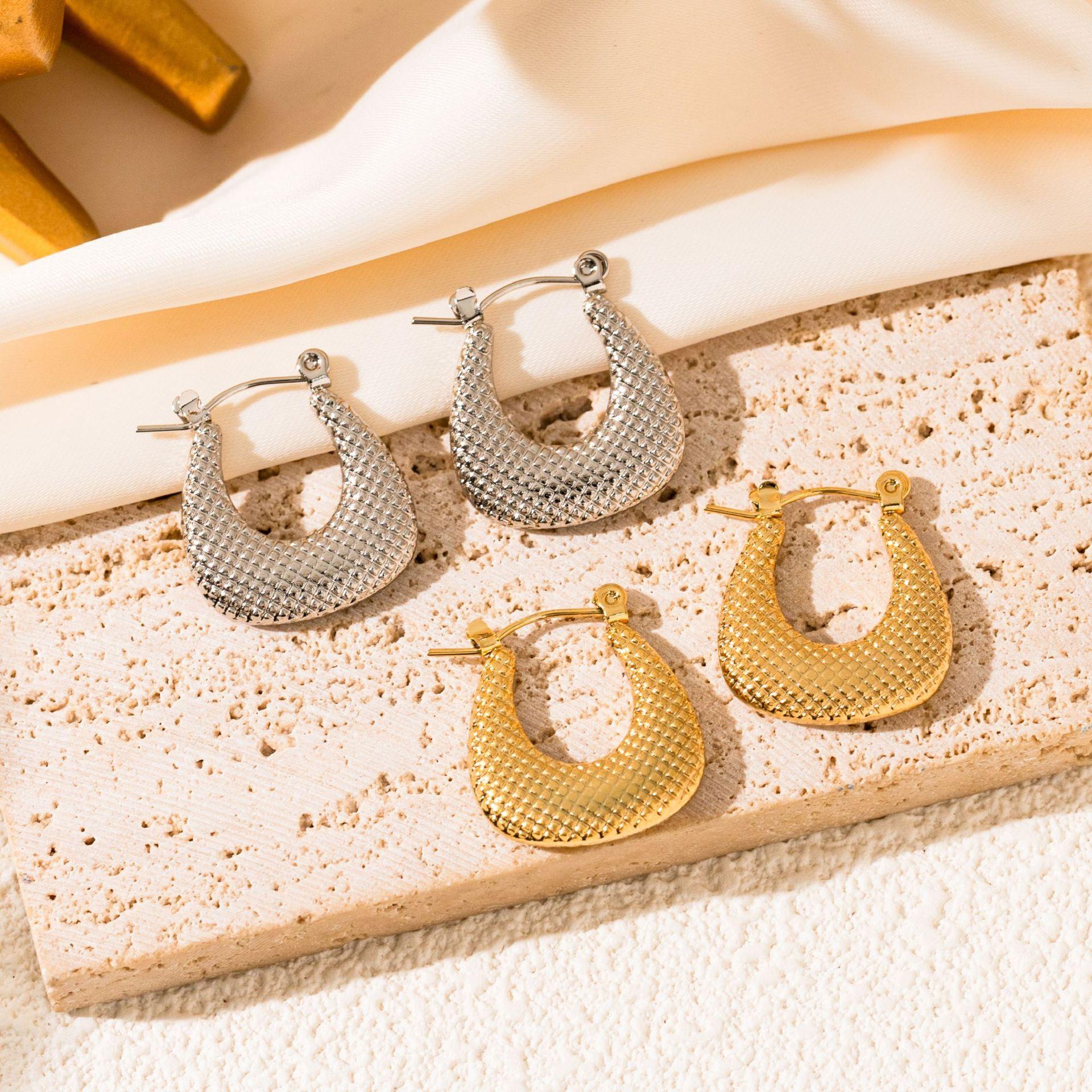 Aretes de punto de onda transfronterizos europeos y americanos para mujer, retro, acero inoxidable chapado en oro, nicho de lujo ligero francés, aretes que no se desvanecen al por mayor