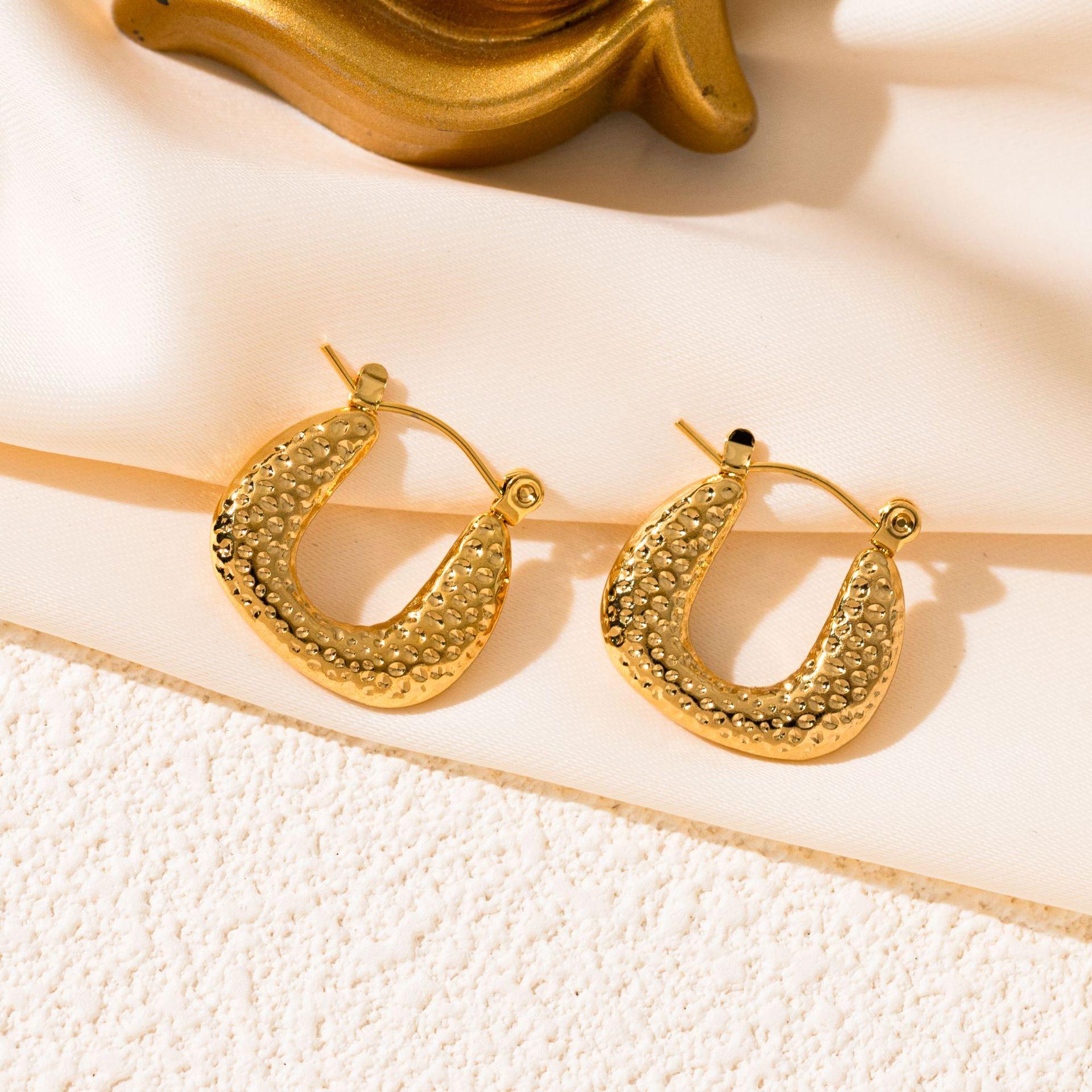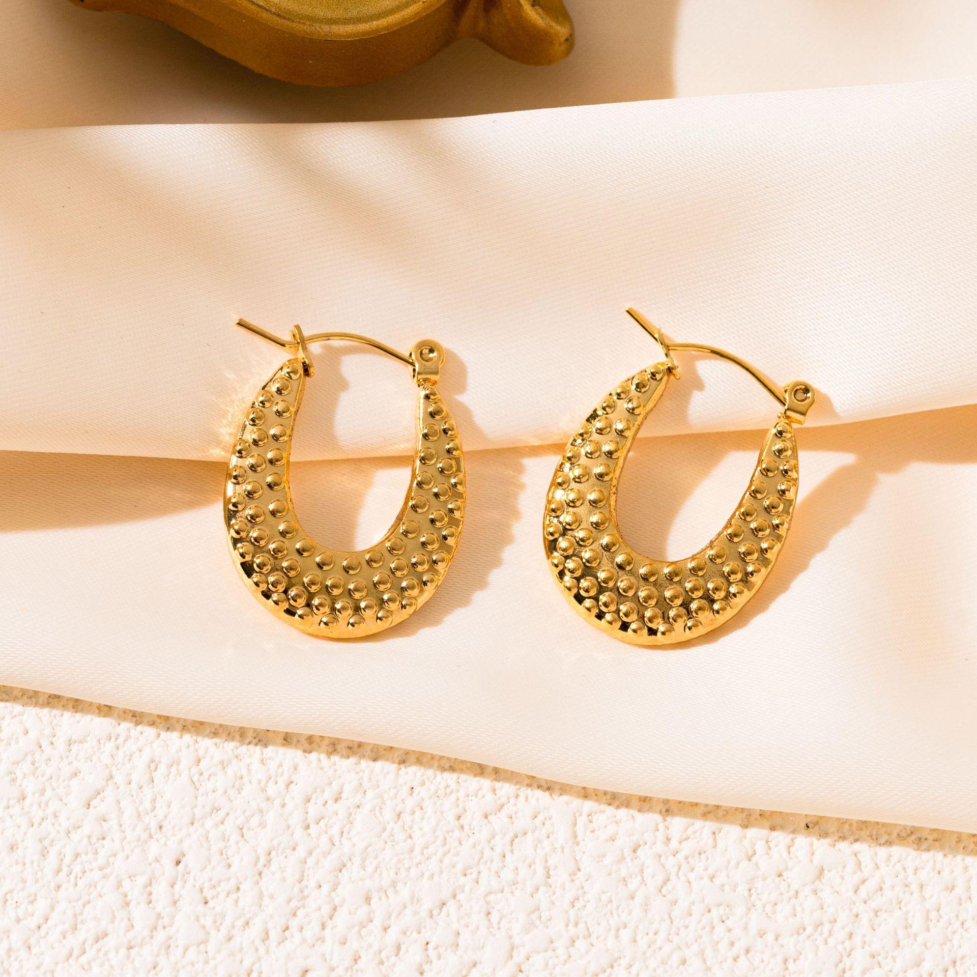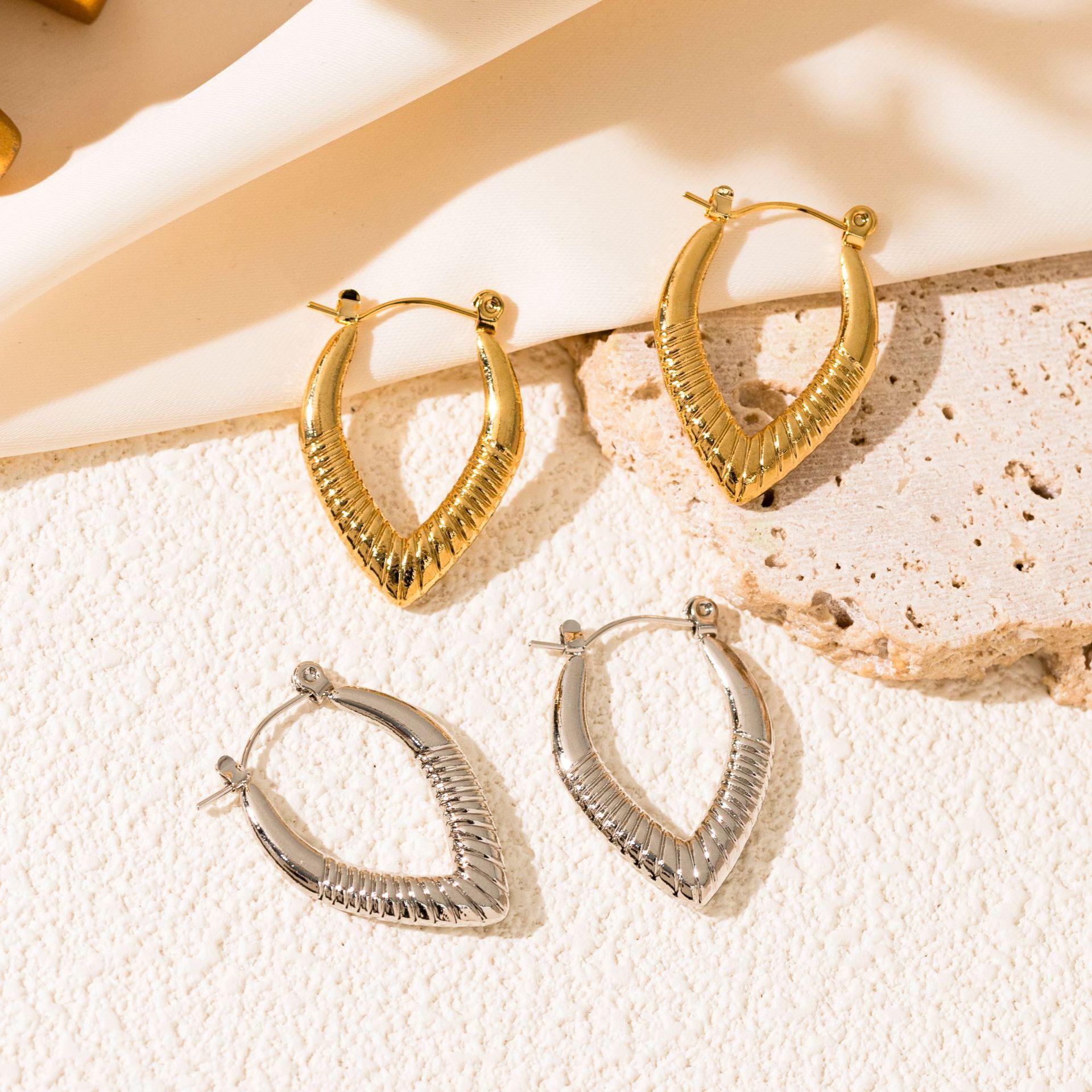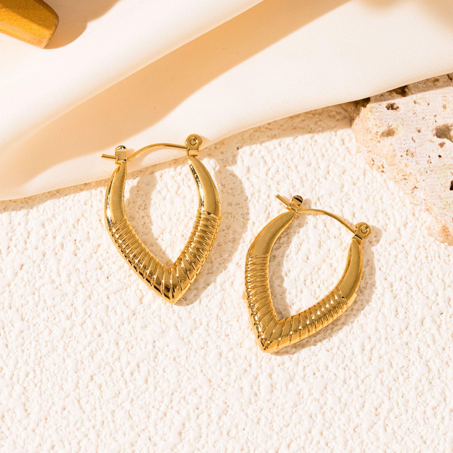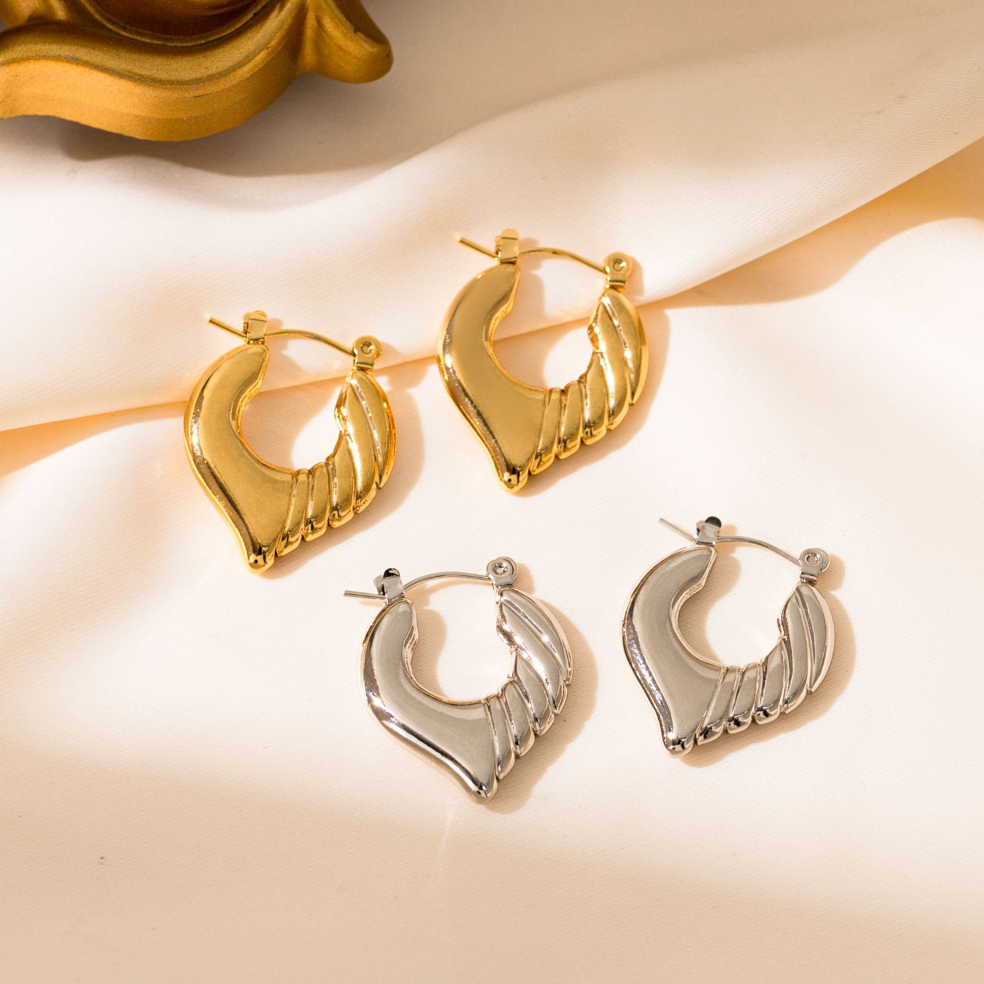 Aretes de punto de onda transfronterizos europeos y americanos para mujer, retro, acero inoxidable chapado en oro, nicho de lujo ligero francés, aretes que no se desvanecen al por mayor