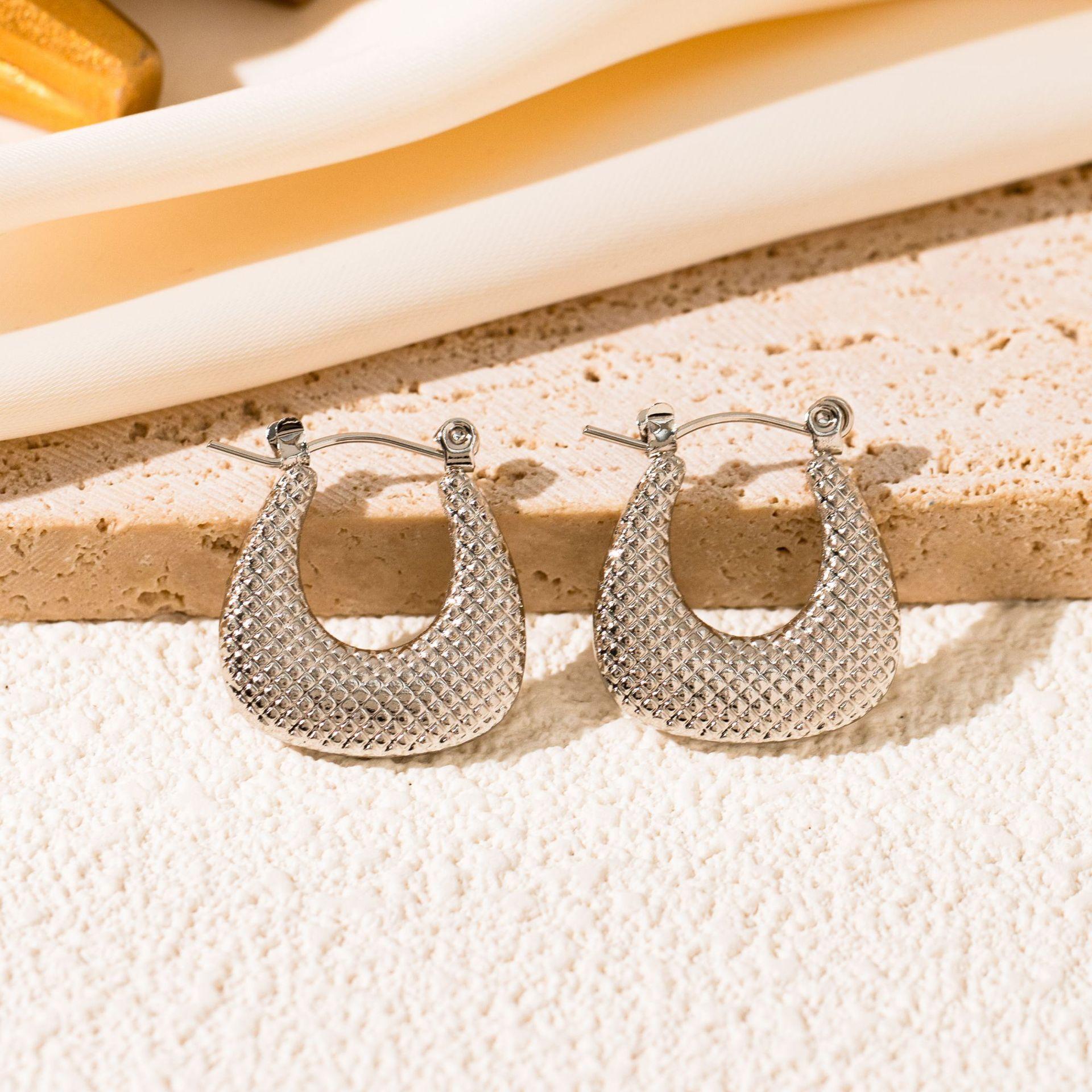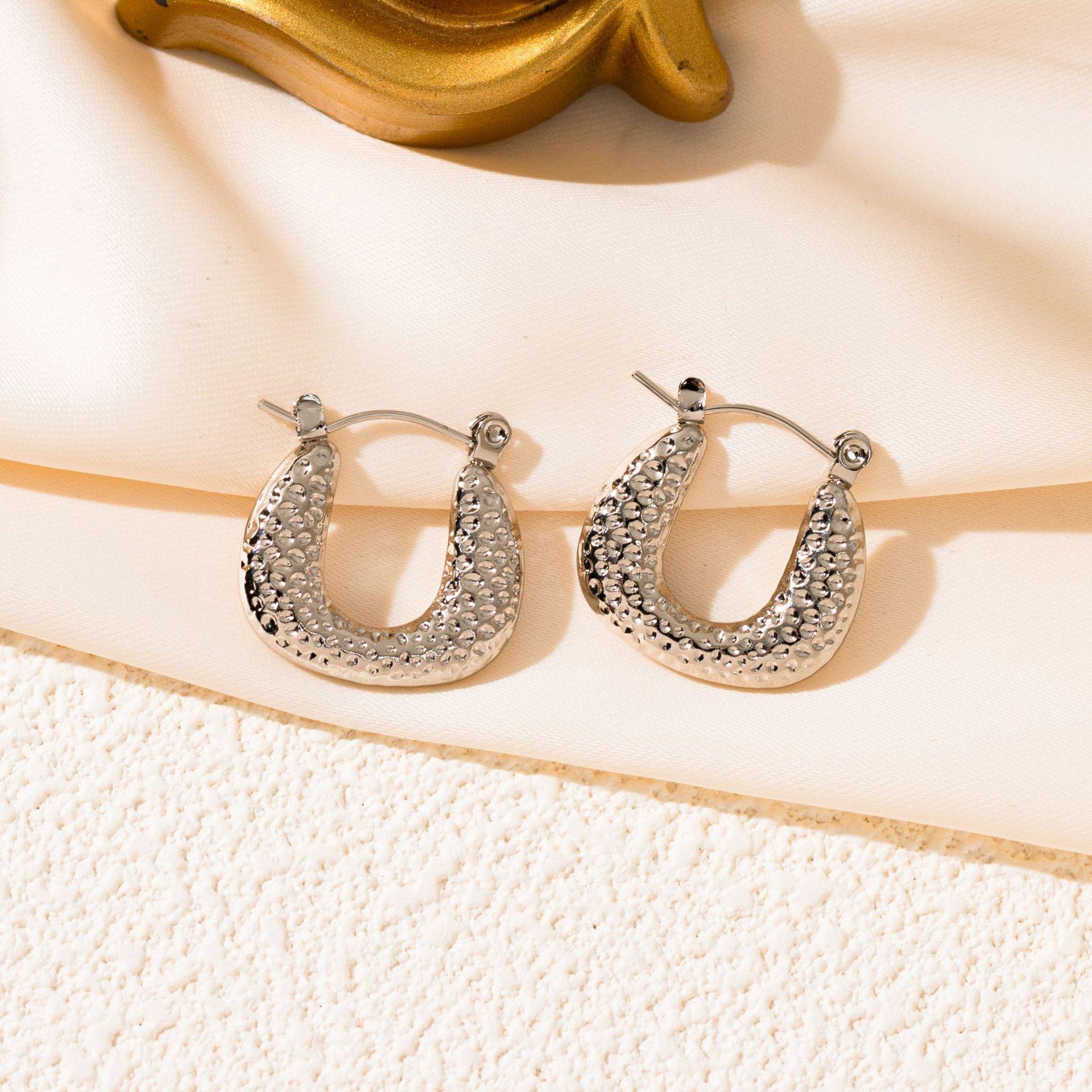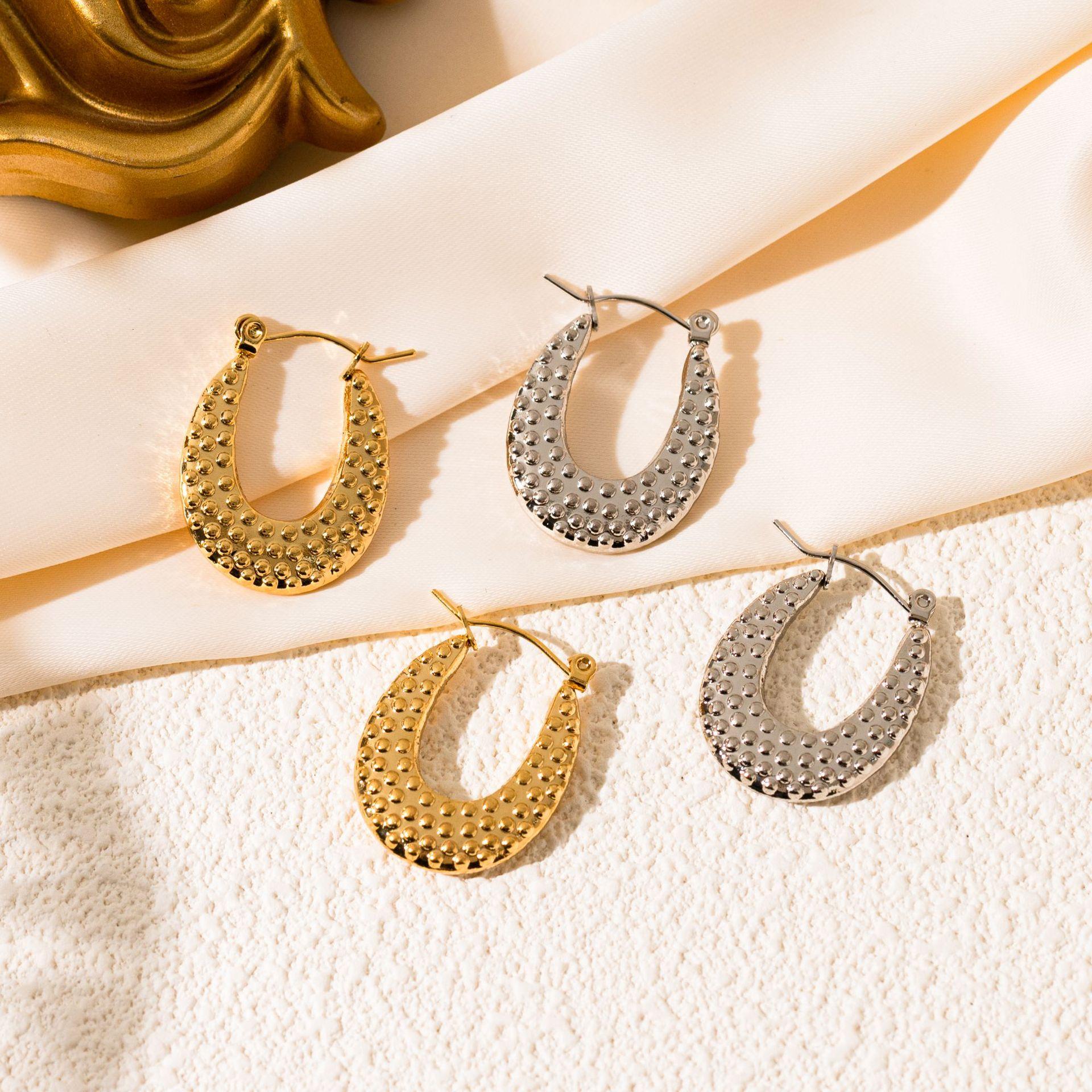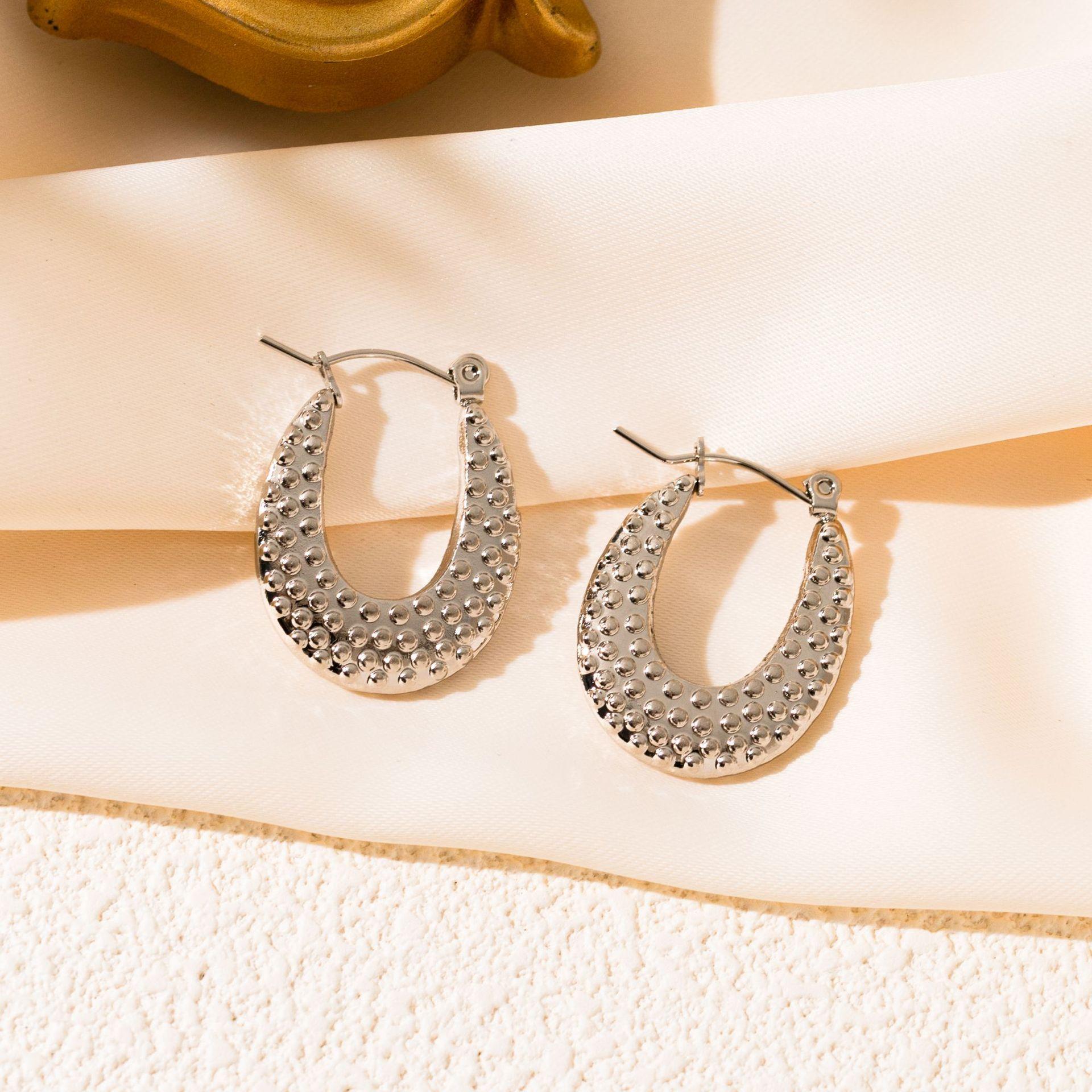 Aretes de punto de onda transfronterizos europeos y americanos para mujer, retro, acero inoxidable chapado en oro, nicho de lujo ligero francés, aretes que no se desvanecen al por mayor