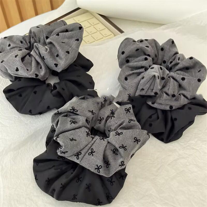2024 nueva ola punto arco amor cuerda para el cabello retro intestino grueso anillo para el cabello cuerda para la cabeza bola cabeza banda de goma temperamento cabeza flor