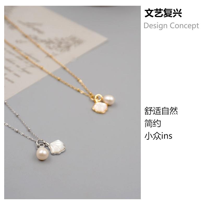 Material: Perla de agua dulce + colgante de cobre + concha + cadena de acero titanio