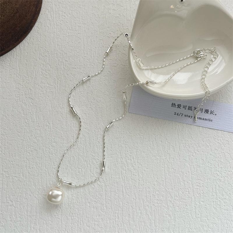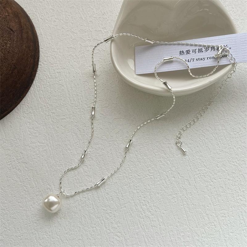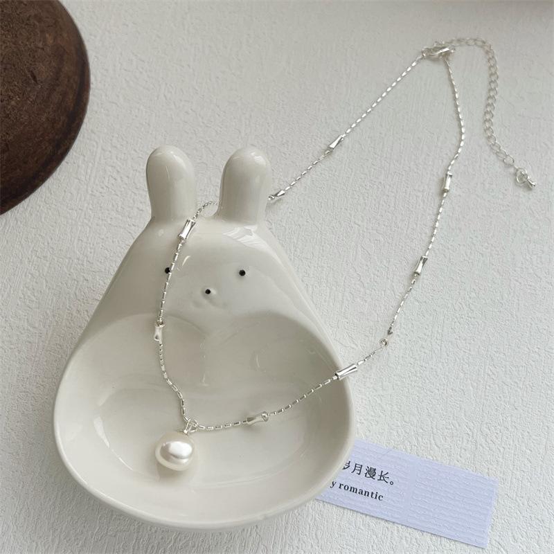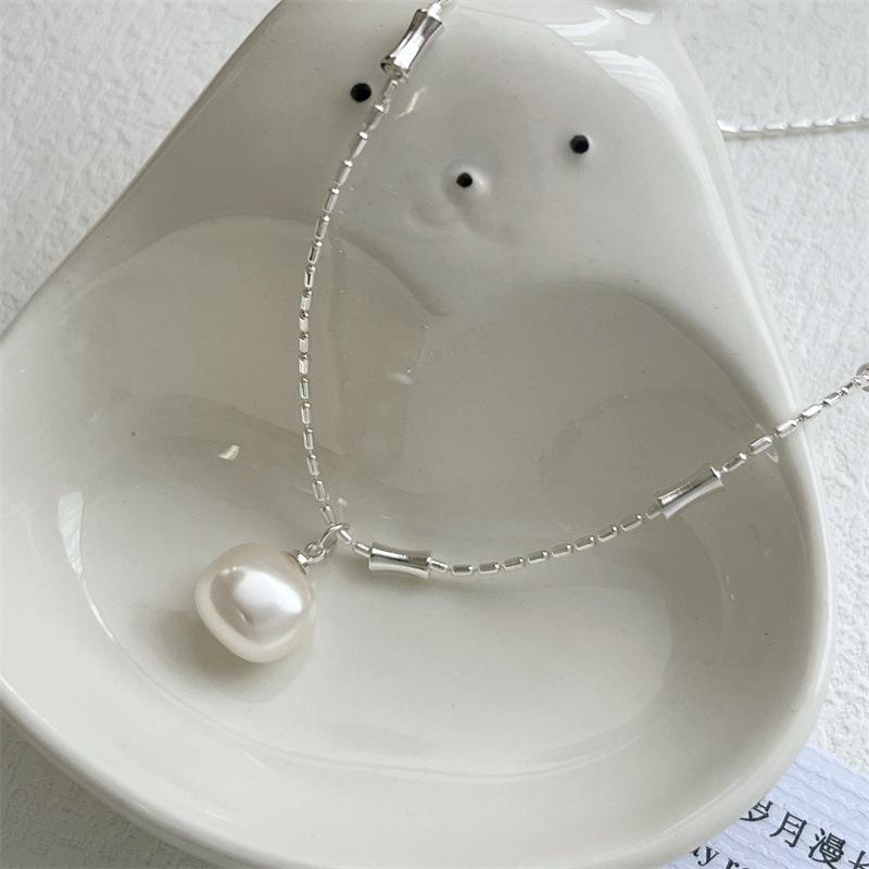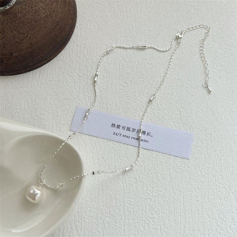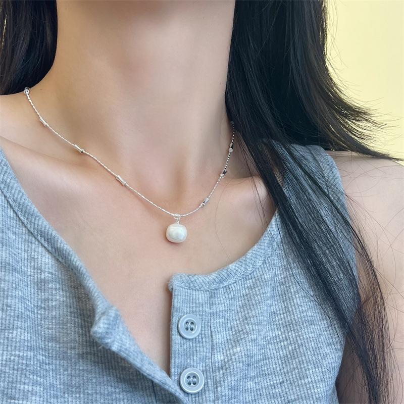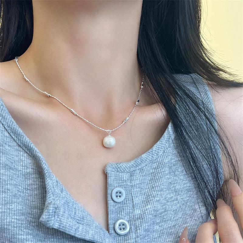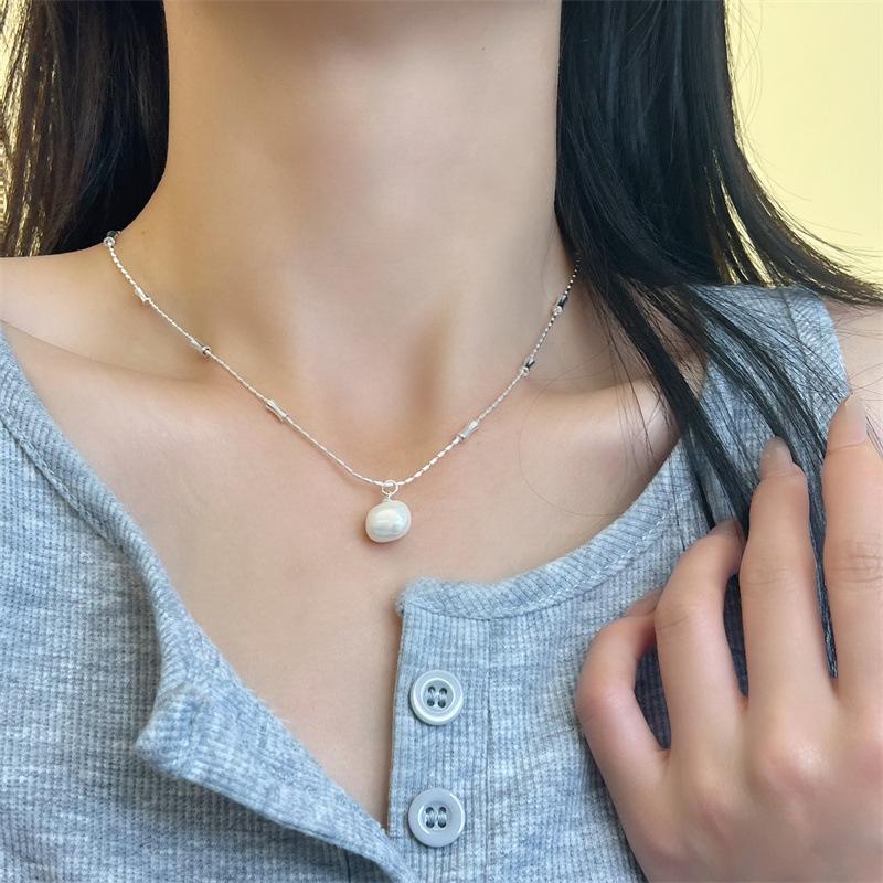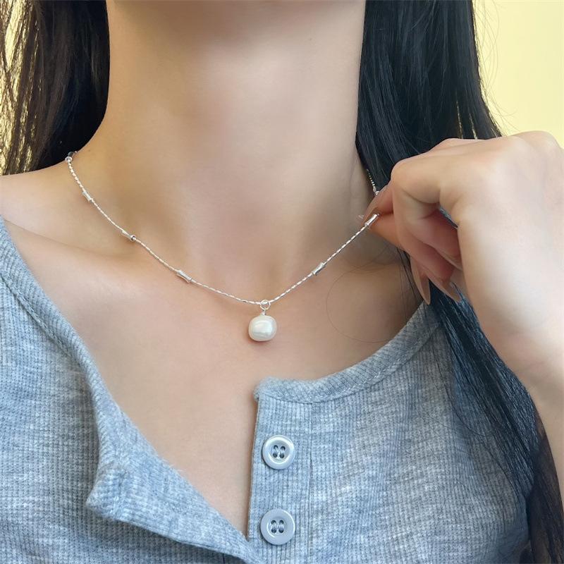 Collar con colgante de perla barroca, sencillo, de alta gama, combinable con todo, exquisito collar, ligero, de lujo, a la moda, cadena de clavícula para mujer.