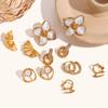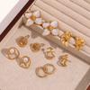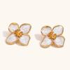 Pendientes y clips para las orejas con flores de colores, de venta transfronteriza, de acero inoxidable chapados en oro de 18 quilates, modernos y sencillos, para mujer, de Europa y América.