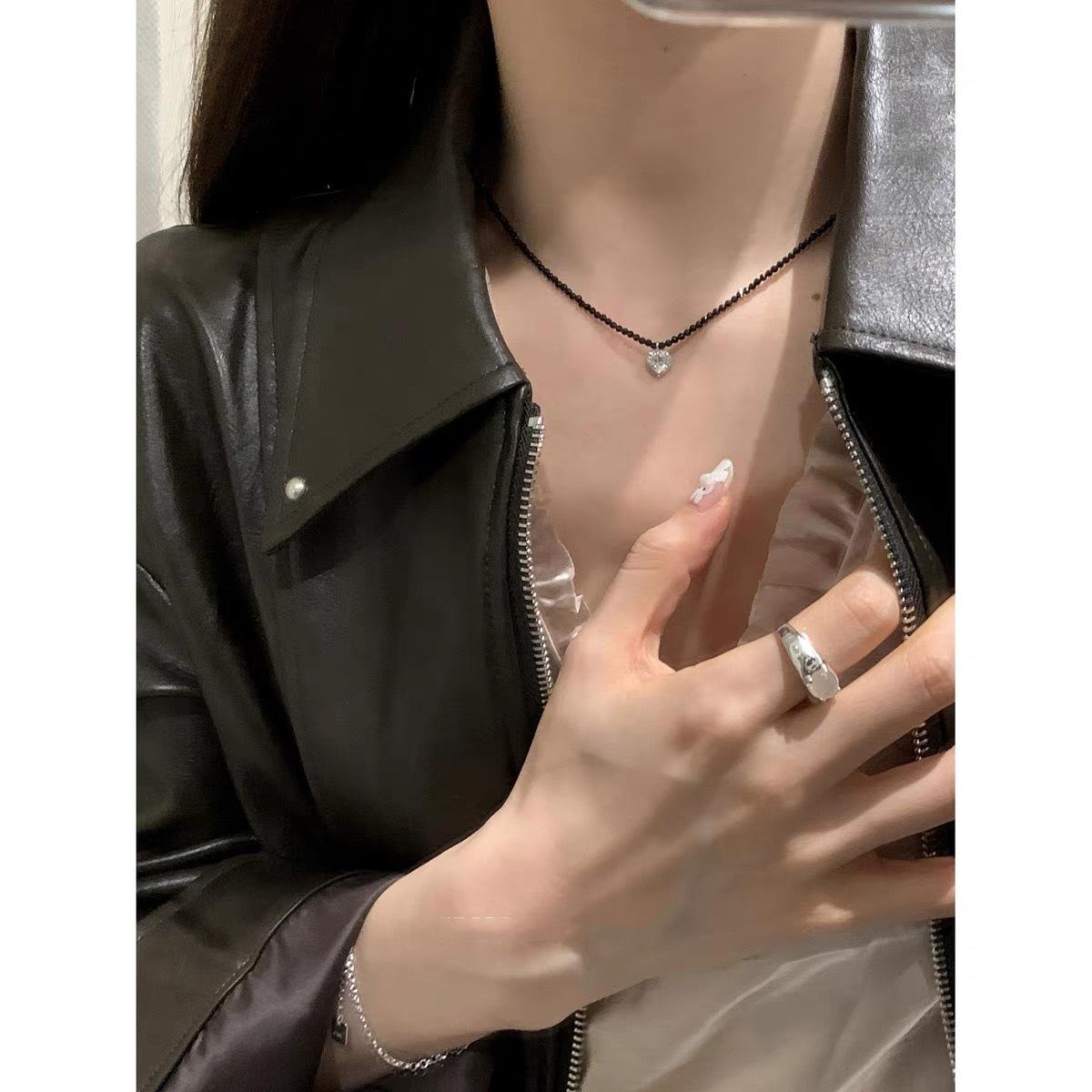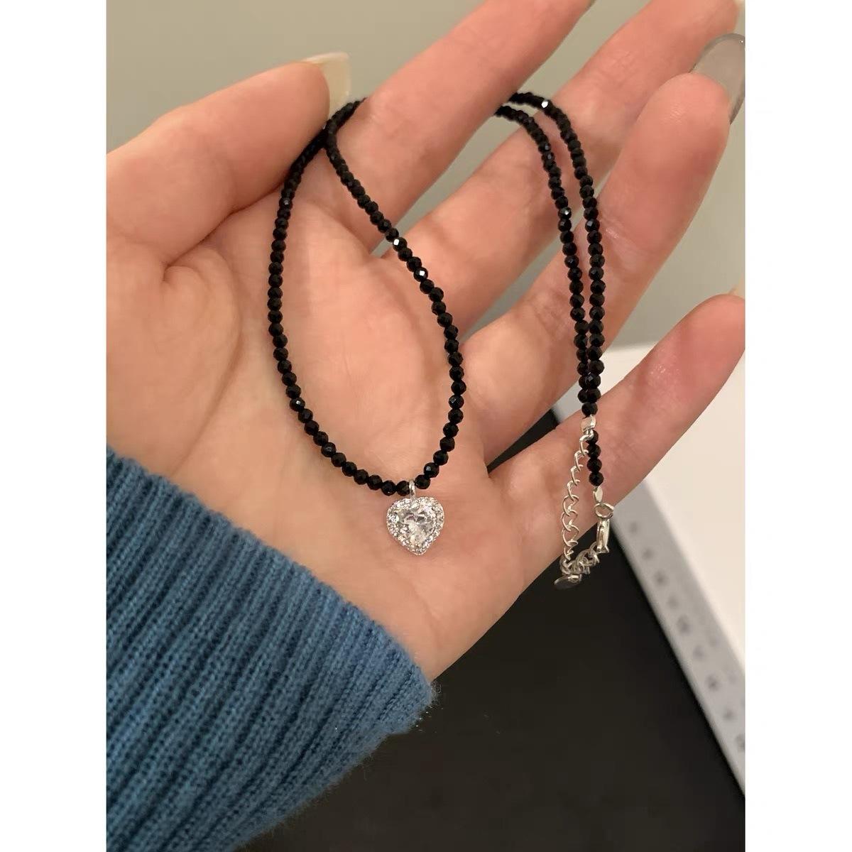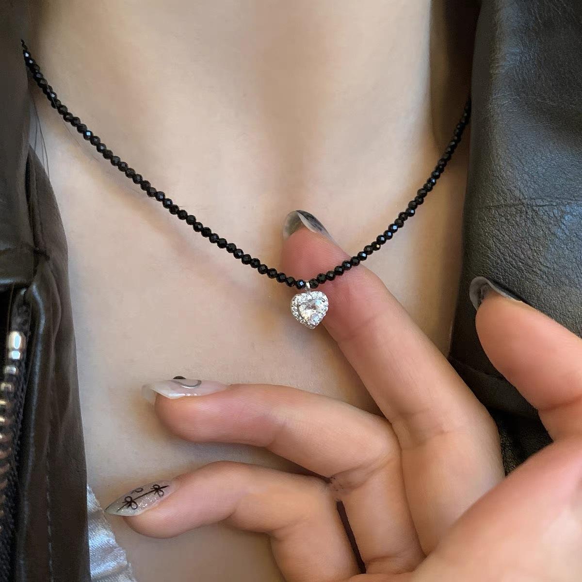 Black spinel pearl clavicle chain