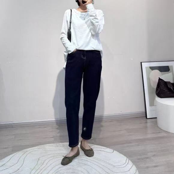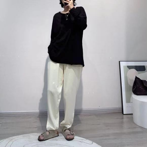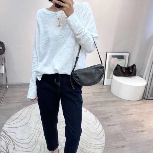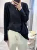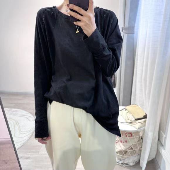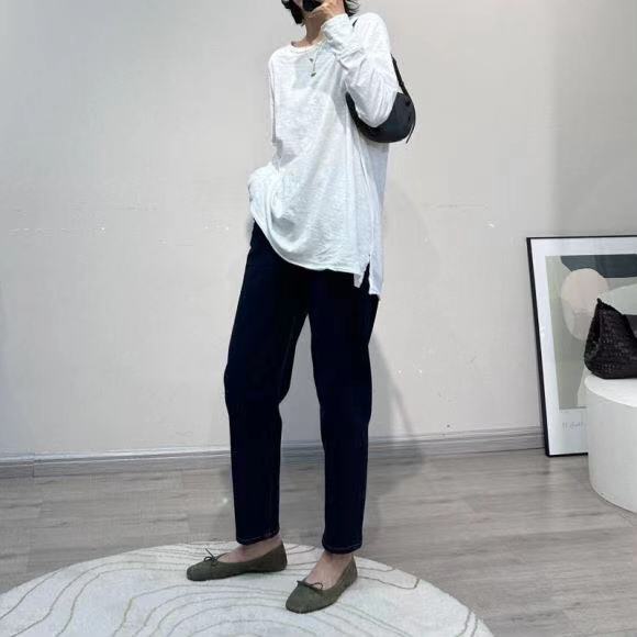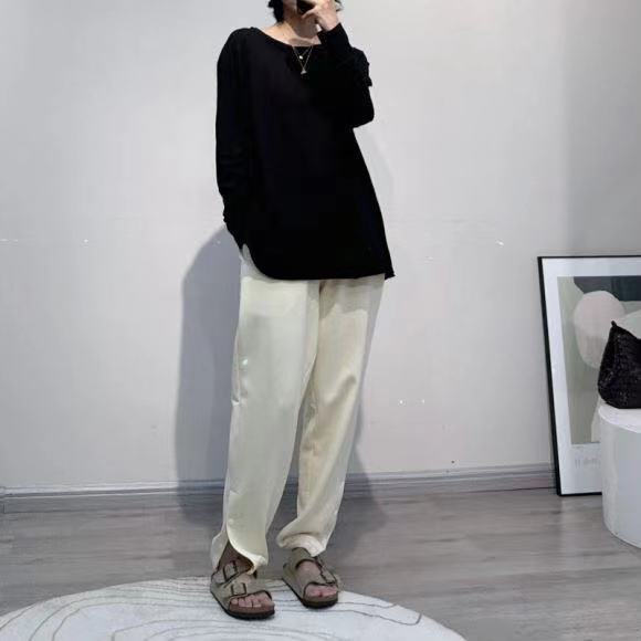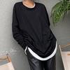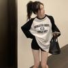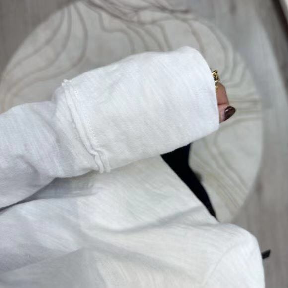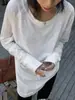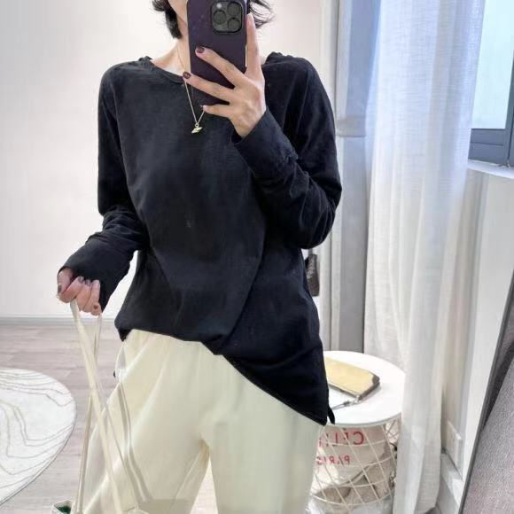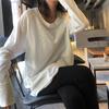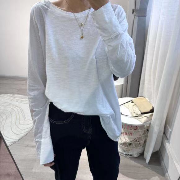 Camiseta de manga larga para mujer, primavera y otoño 2023, nueva camiseta holgada, top blanco de principios de otoño, camisa de base negra de longitud media