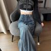 Pantalones vaqueros micro acampanados deshilachados retro de estilo coreano para mujer, otoño 2023, nuevos pantalones adelgazantes de cintura alta y elásticos