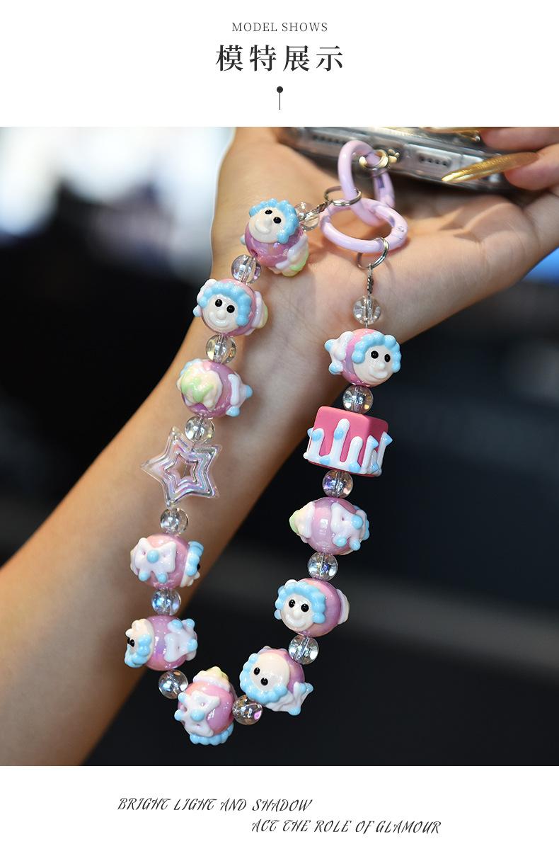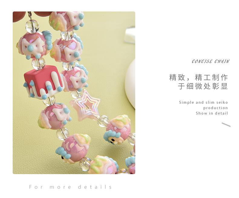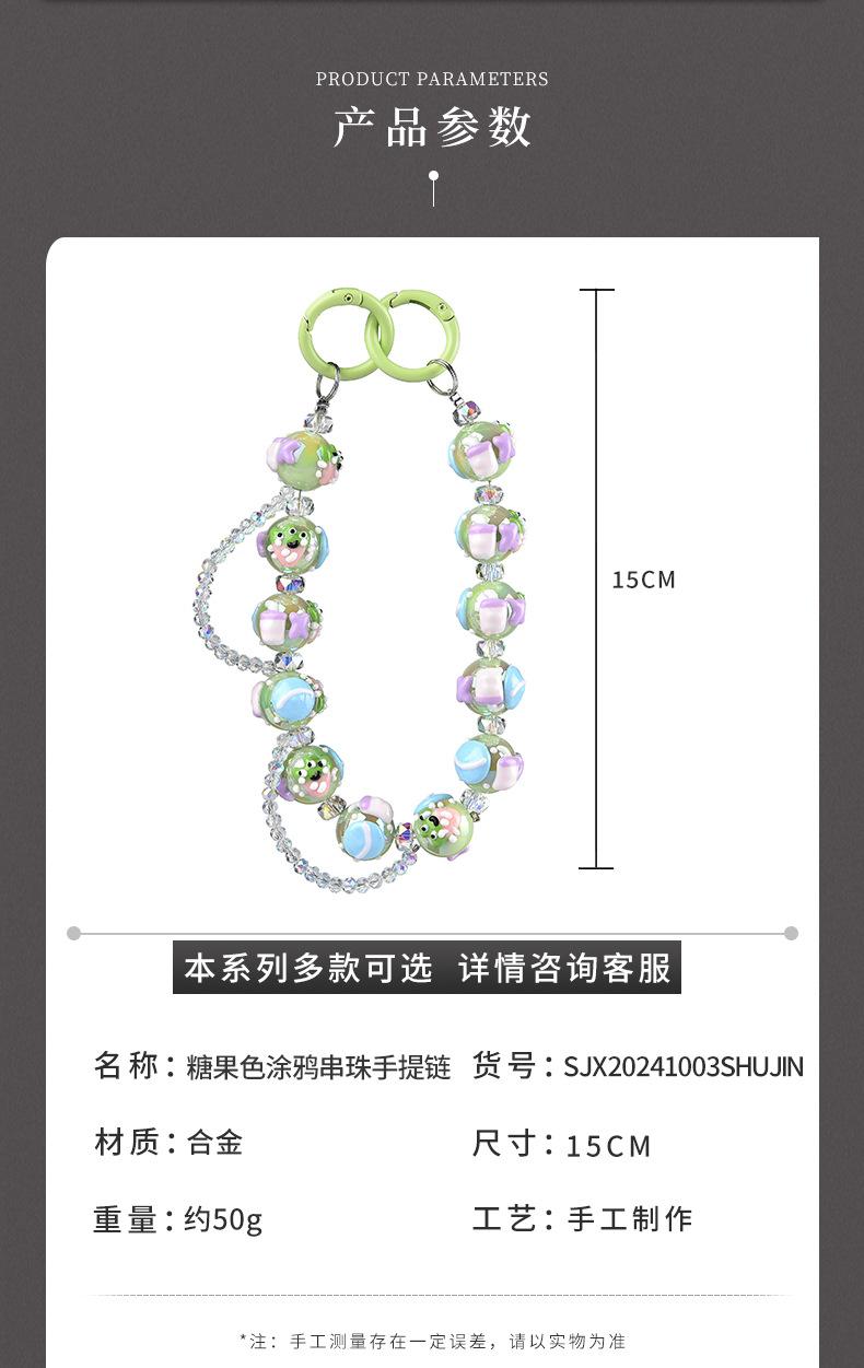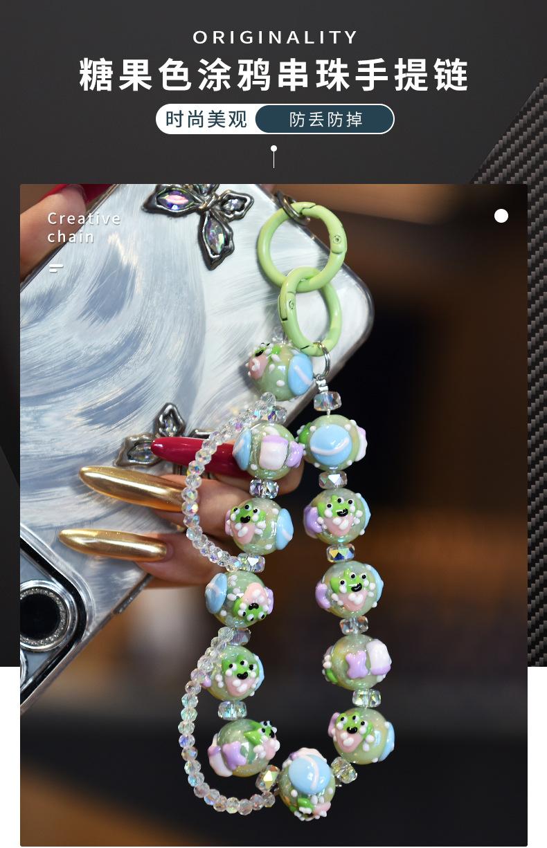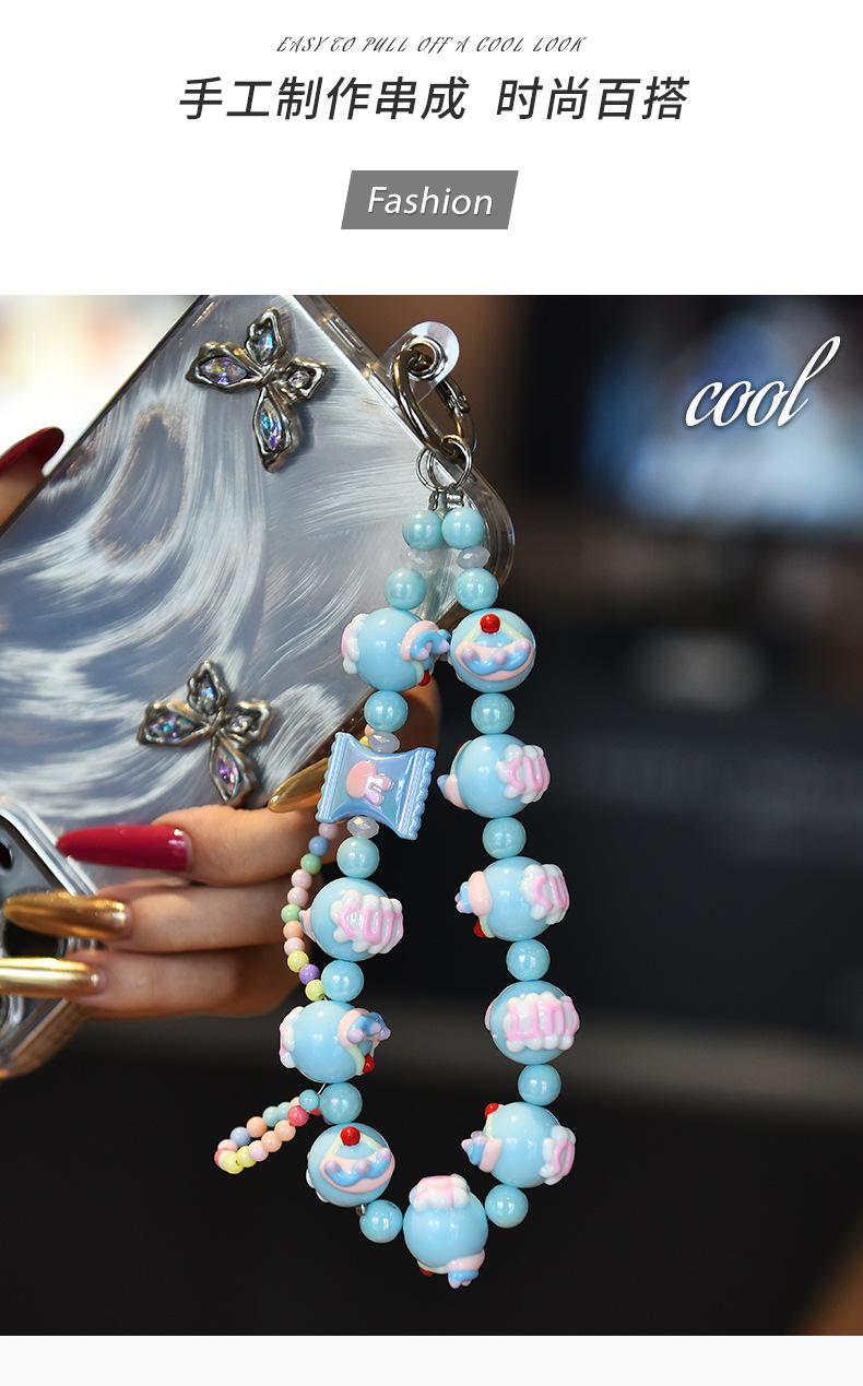 Pulsera de cuentas con grafiti de color caramelo para mujer, moderna y pequeña, con cadena colgante, para teléfono móvil, con clip corto, venta al por mayor