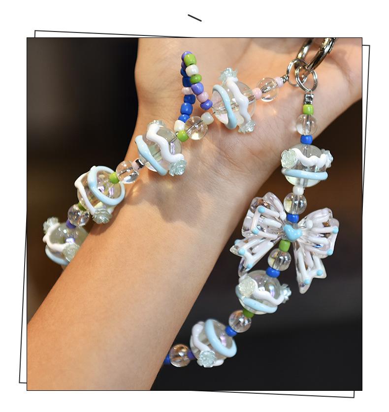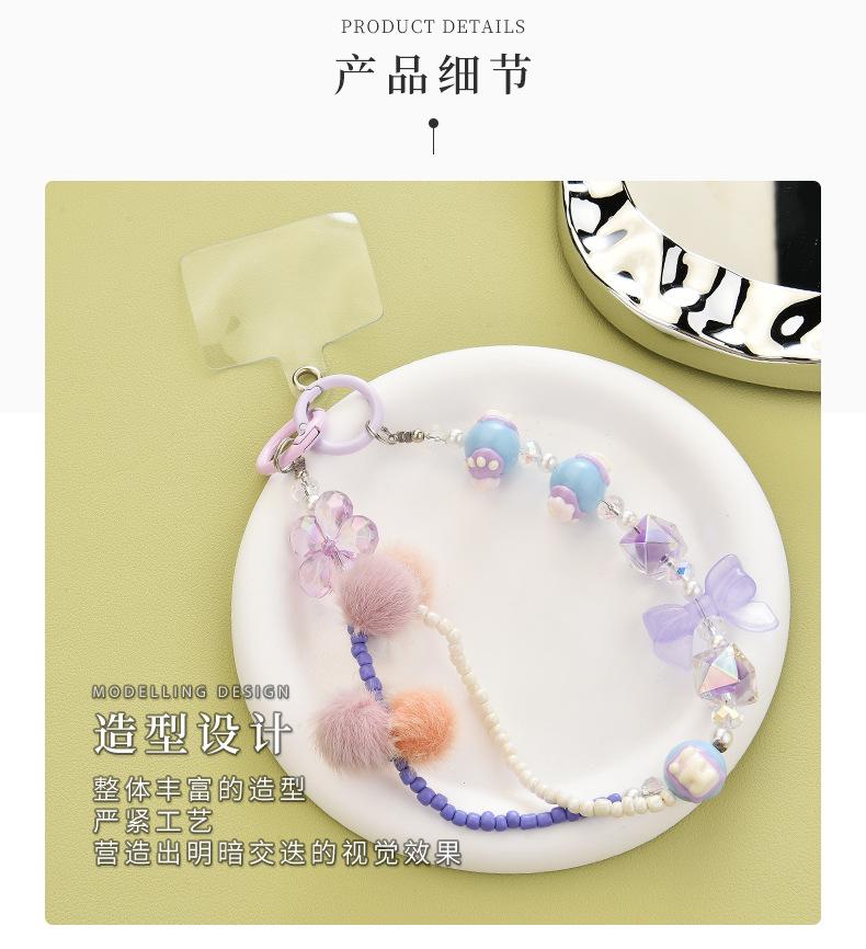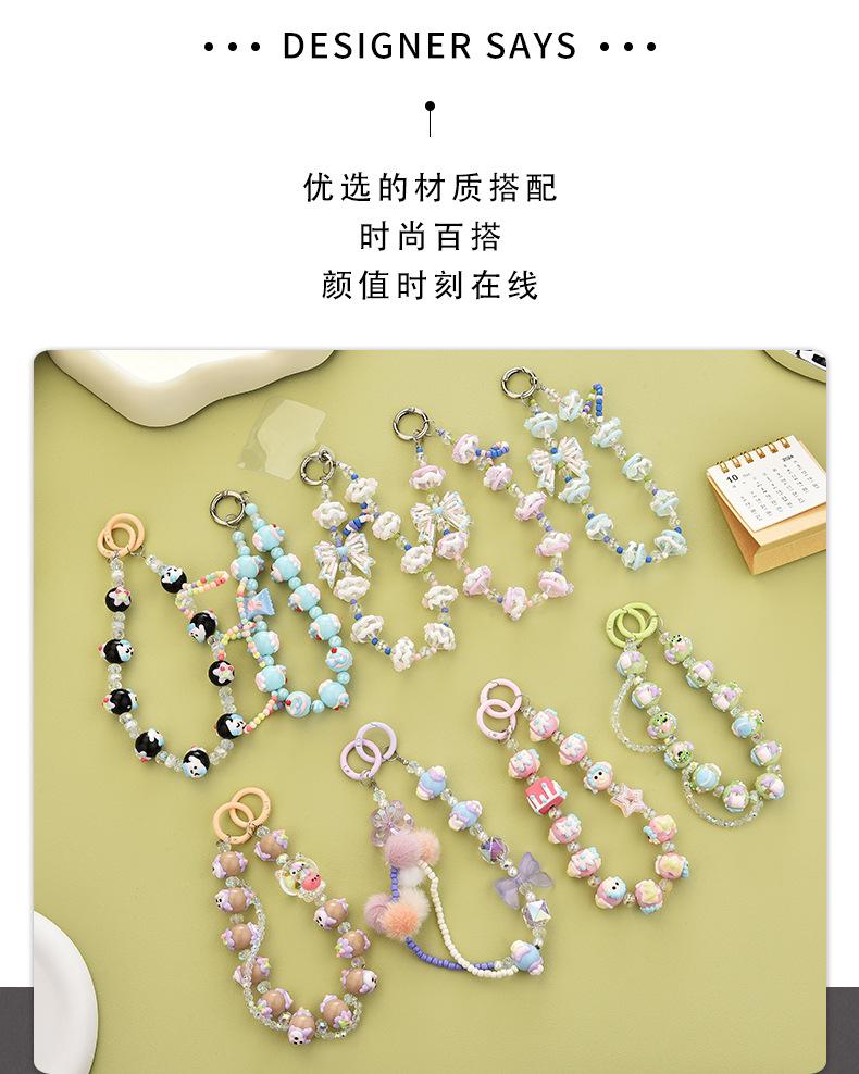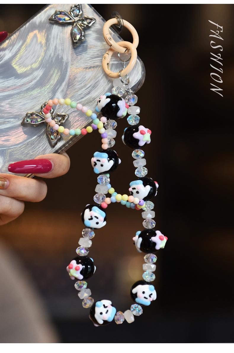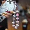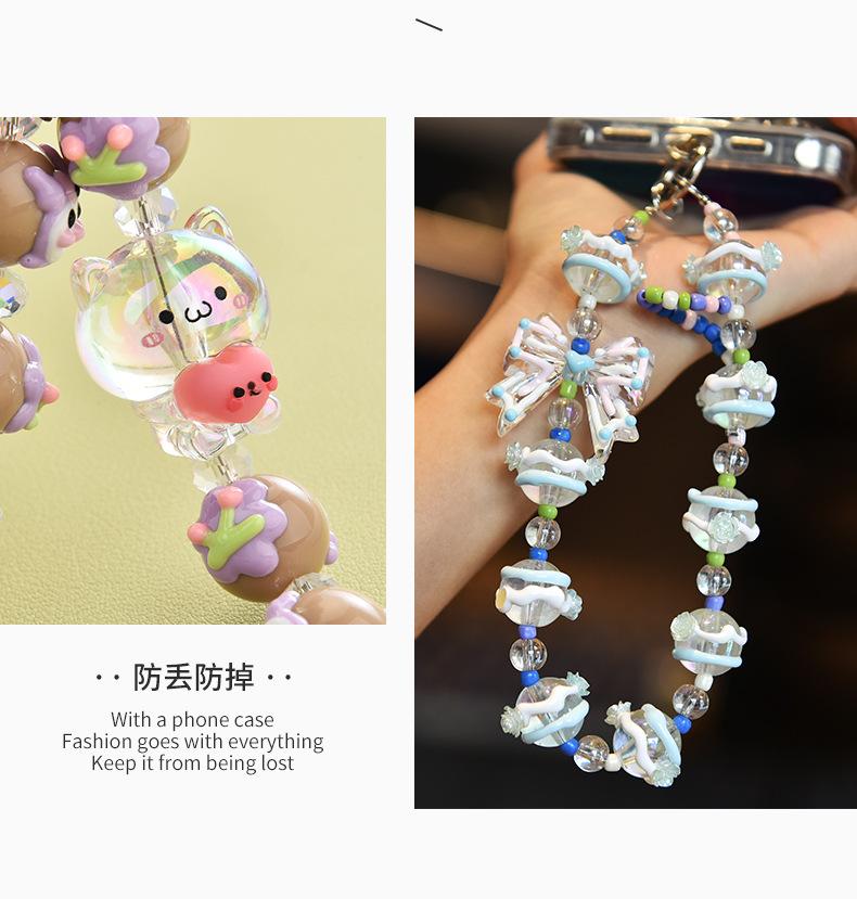 Pulsera de cuentas con grafiti de color caramelo para mujer, moderna y pequeña, con cadena colgante, para teléfono móvil, con clip corto, venta al por mayor