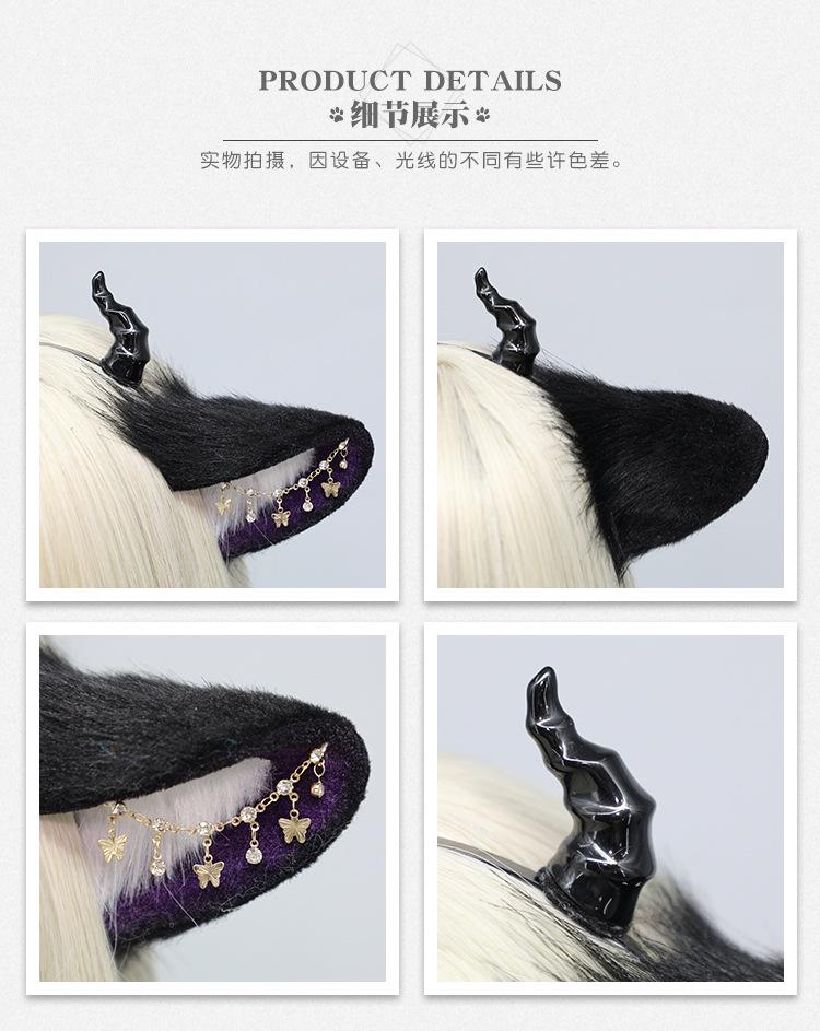 Accesorios de Halloween de Felpa Diadema de Campana de Viento de Demonio Simulación Orejas de Bestia cosplay Accesorios para el Cabello Oscuros