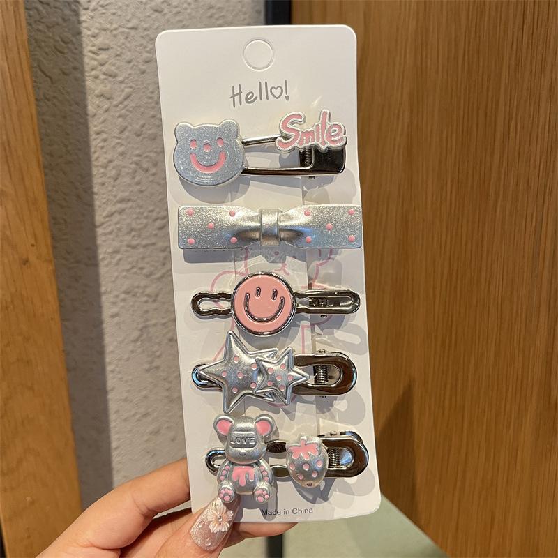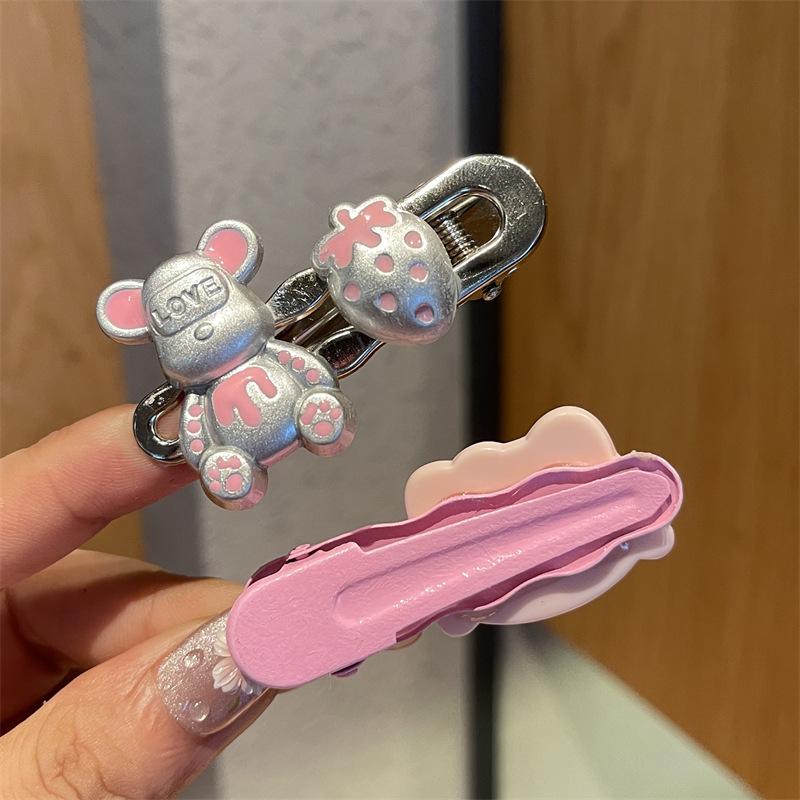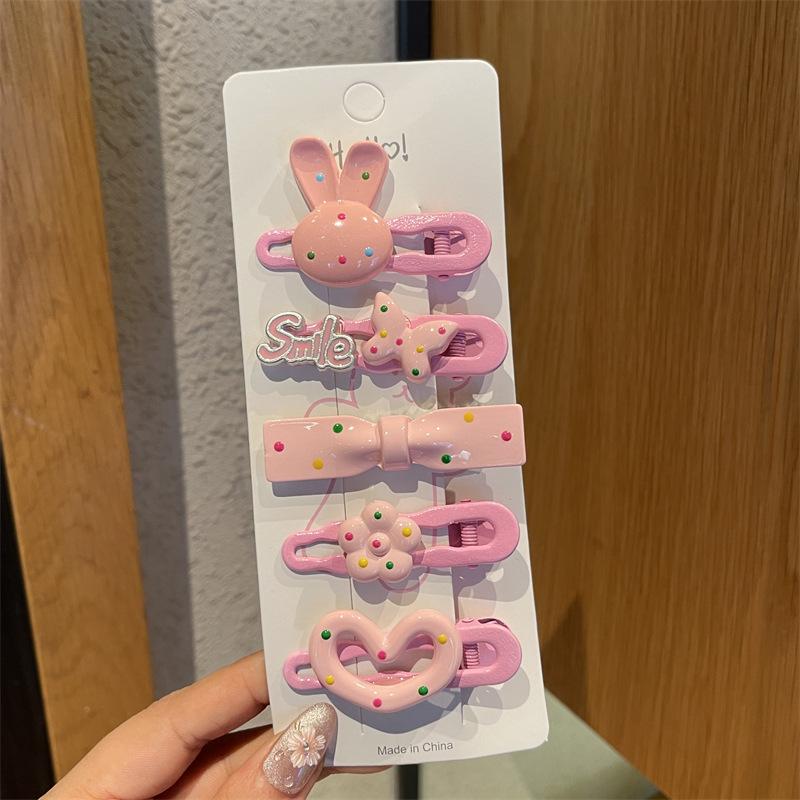 Horquilla rota con cabeza de niña, flequillo lateral de niña, horquilla de dibujos animados, linda pinza para bebé, tocado