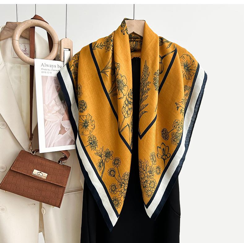 Otoño e Invierno Nuevo Estilo Chino Estampado de Flores Bufanda Cuadrada de 90 Lana Delgada Suave Amigable con la Piel Bufanda Cálida para Mujer