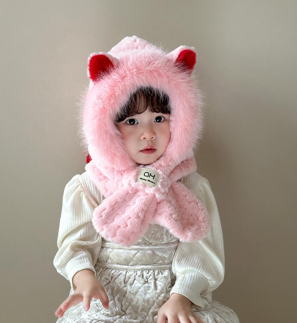 Gorro Bufanda Todo en Uno para Niños de Una Pieza Gorro de Invierno Super Lindo para Niña Lindo Gorro con Protección para las Orejas Gorro Cálido de Felpa para Niño