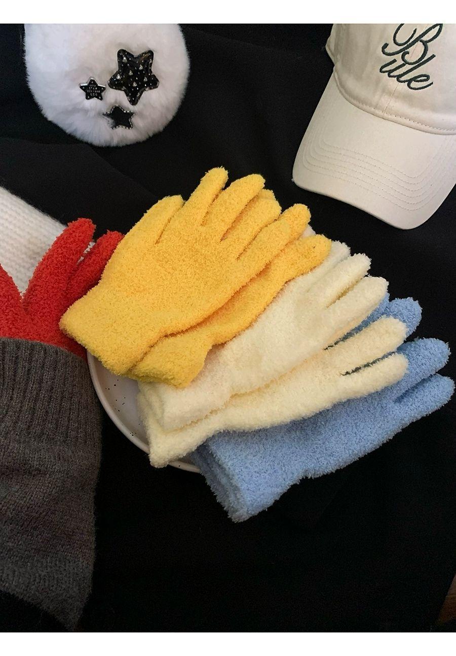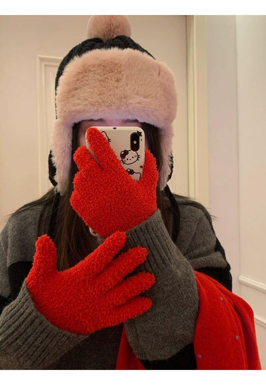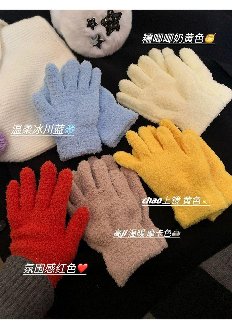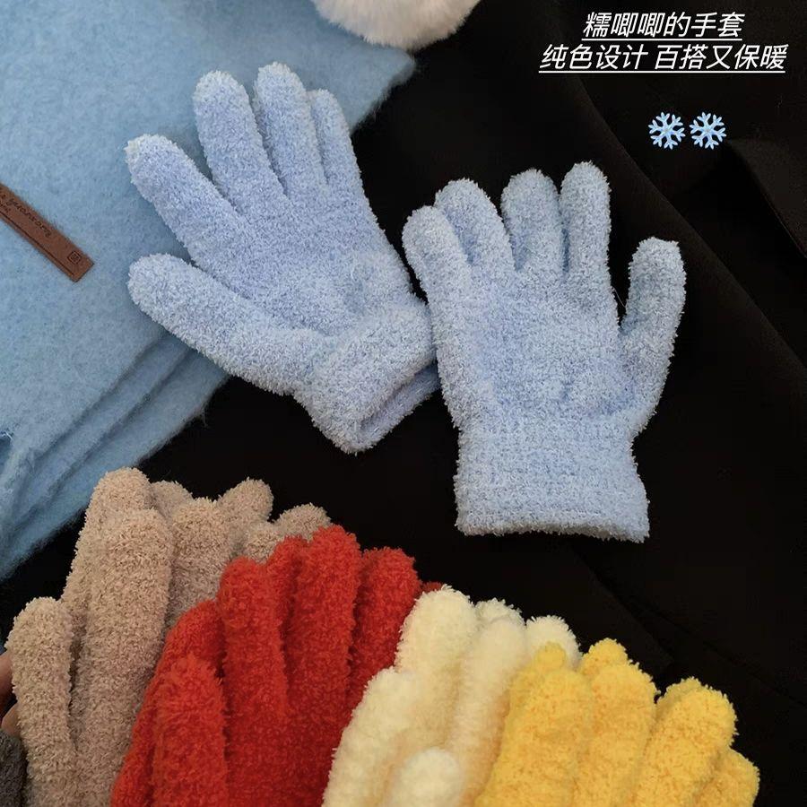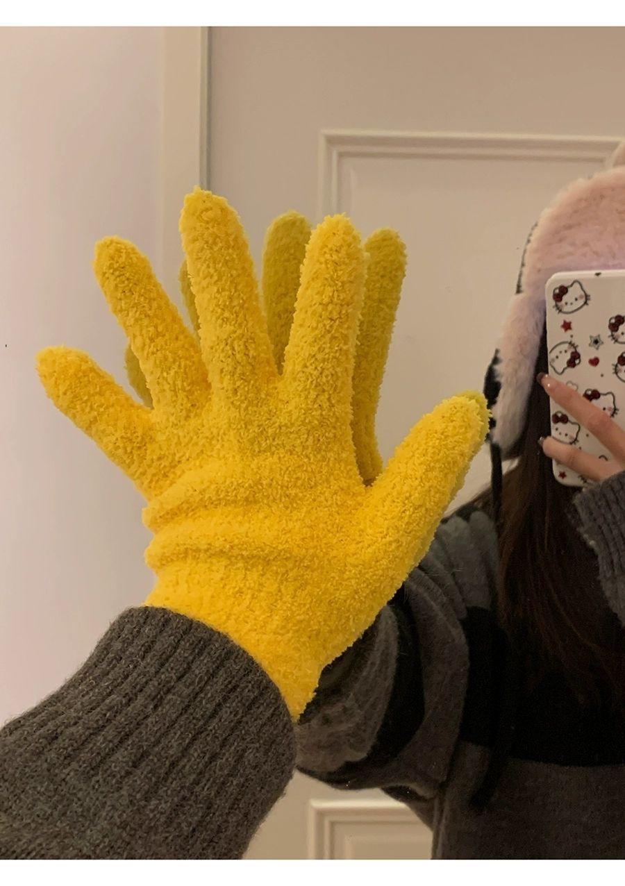 Guantes de felpa de invierno al por mayor de fábrica para mujer, versión coreana, de lana coral, para dedos, color caramelo, para ciclismo, cálidos y fríos.