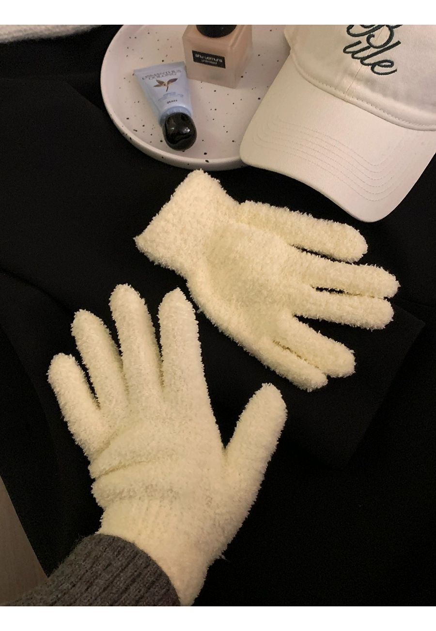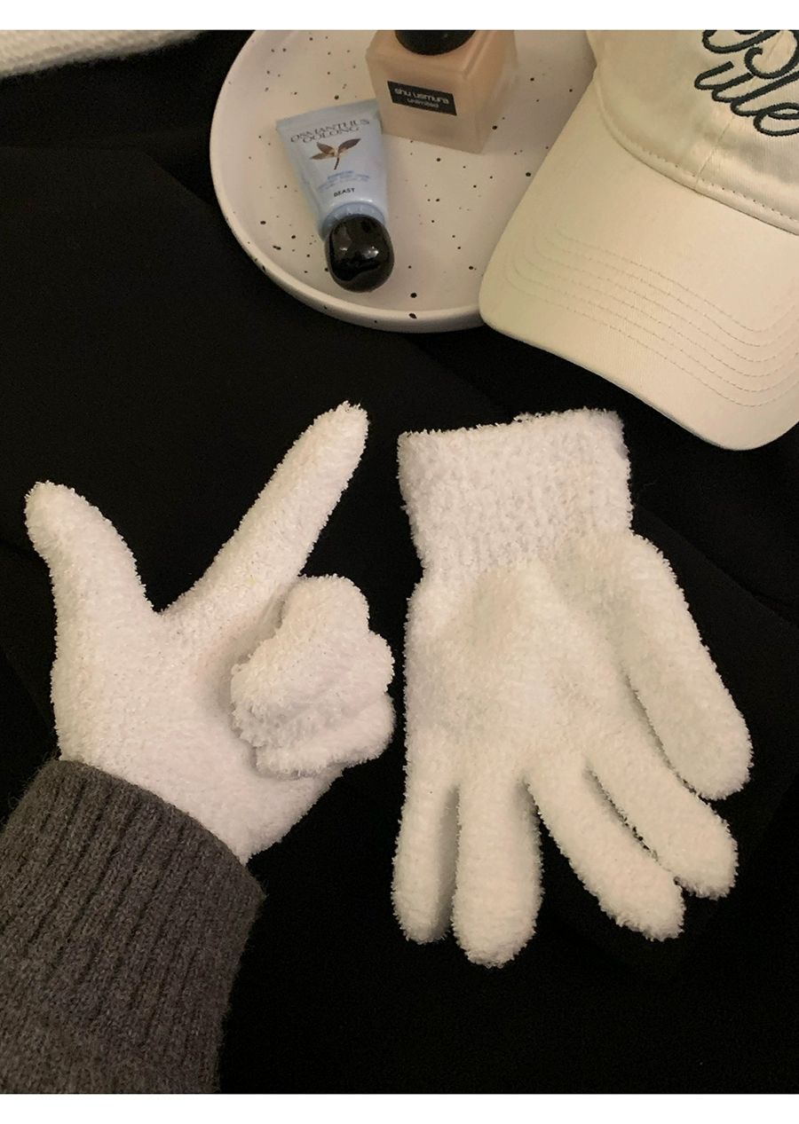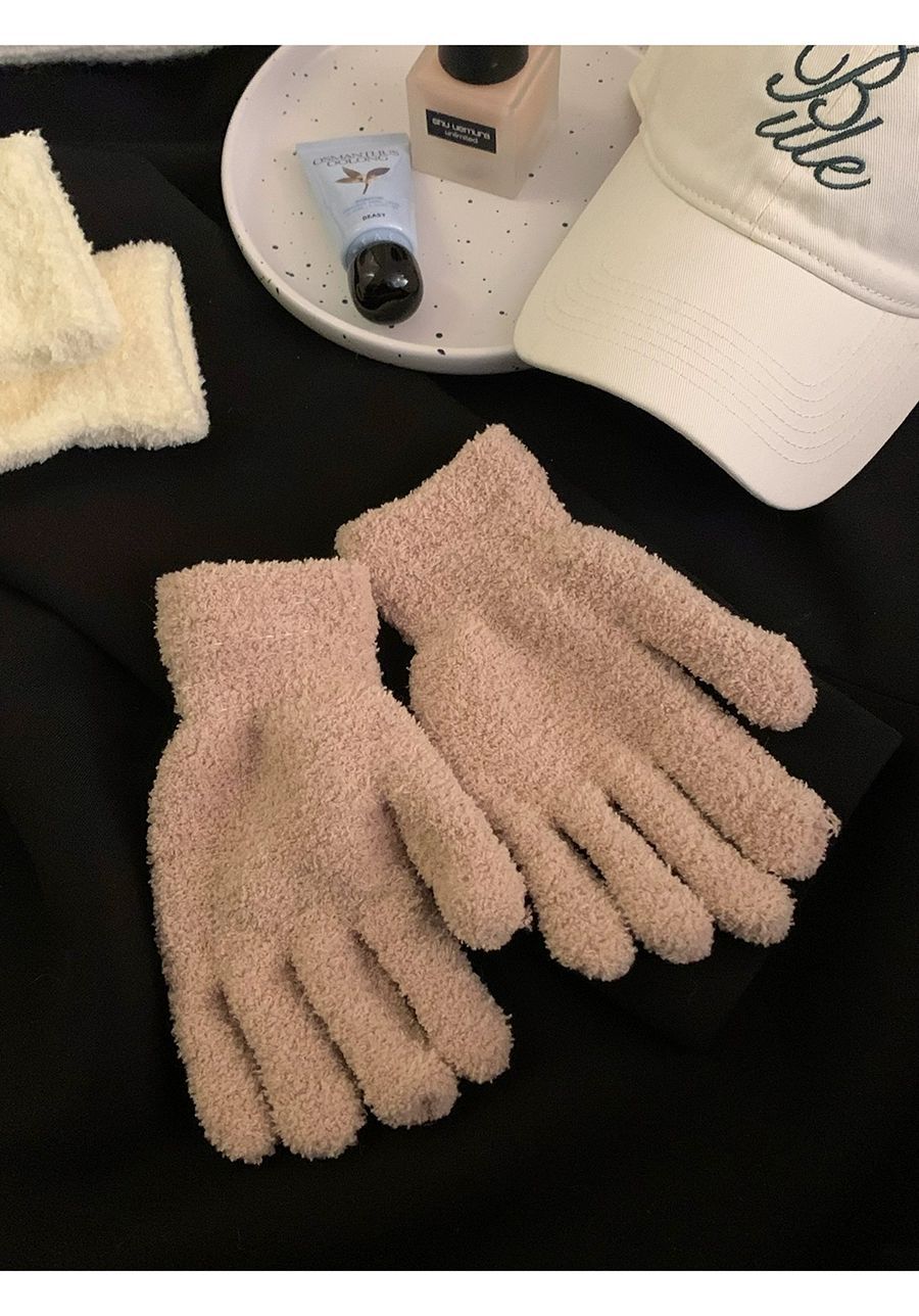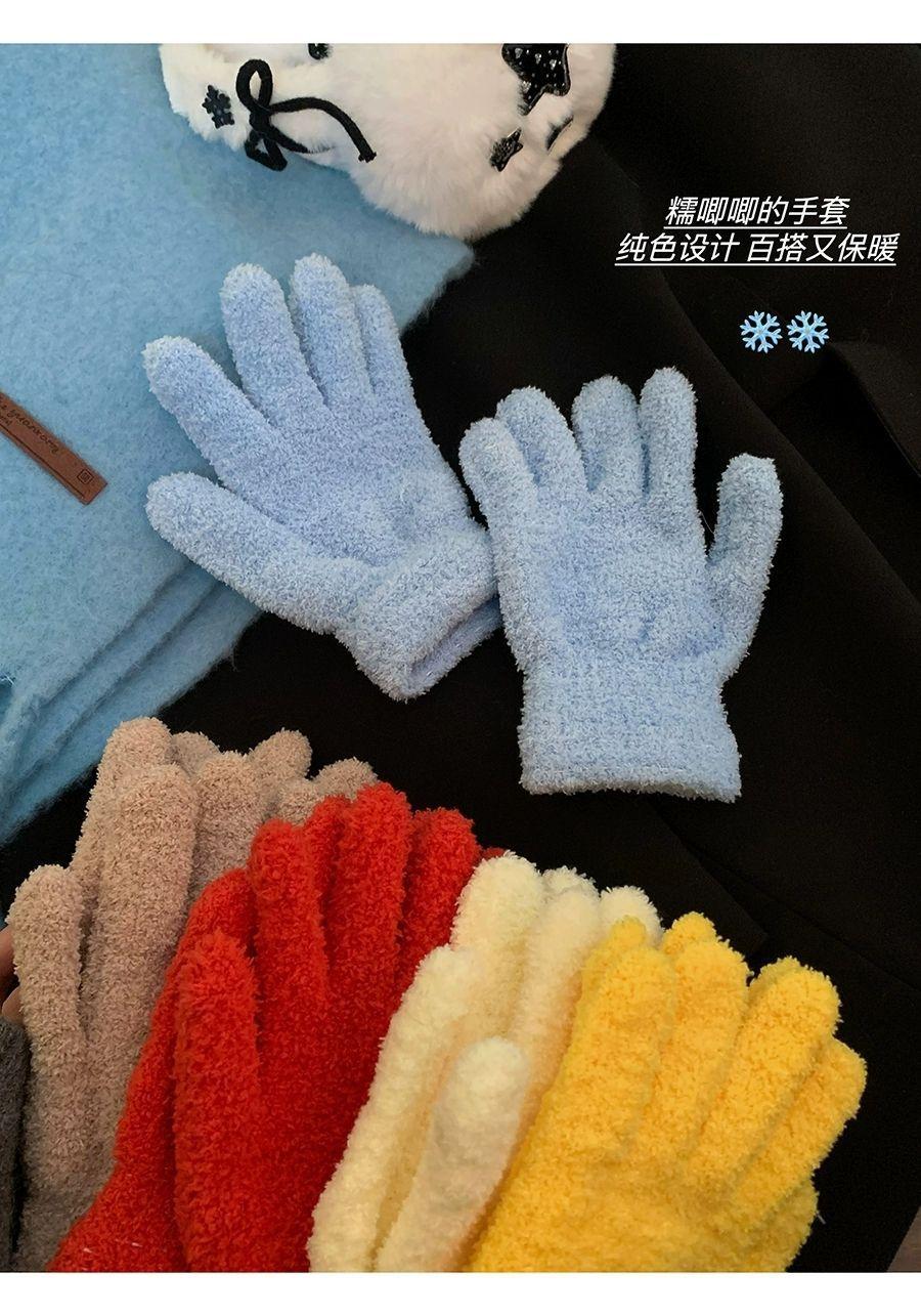 Guantes de felpa de invierno al por mayor de fábrica para mujer, versión coreana, de lana coral, para dedos, color caramelo, para ciclismo, cálidos y fríos.