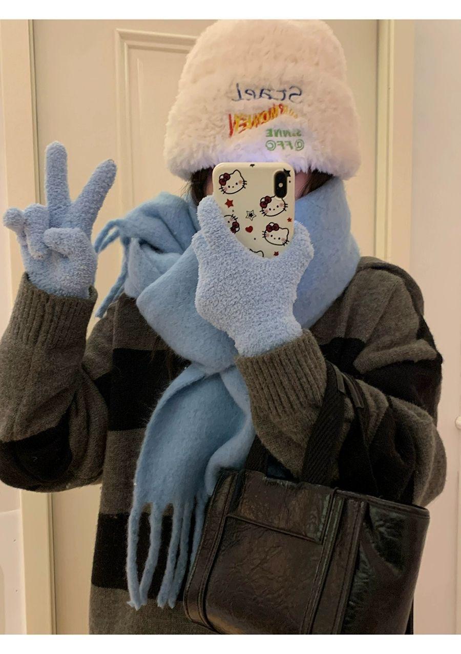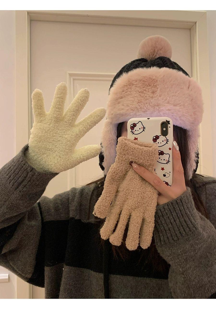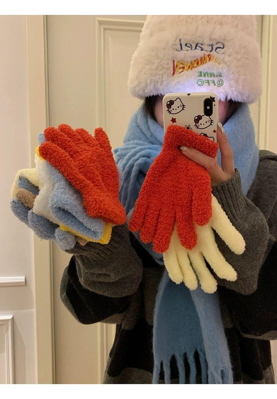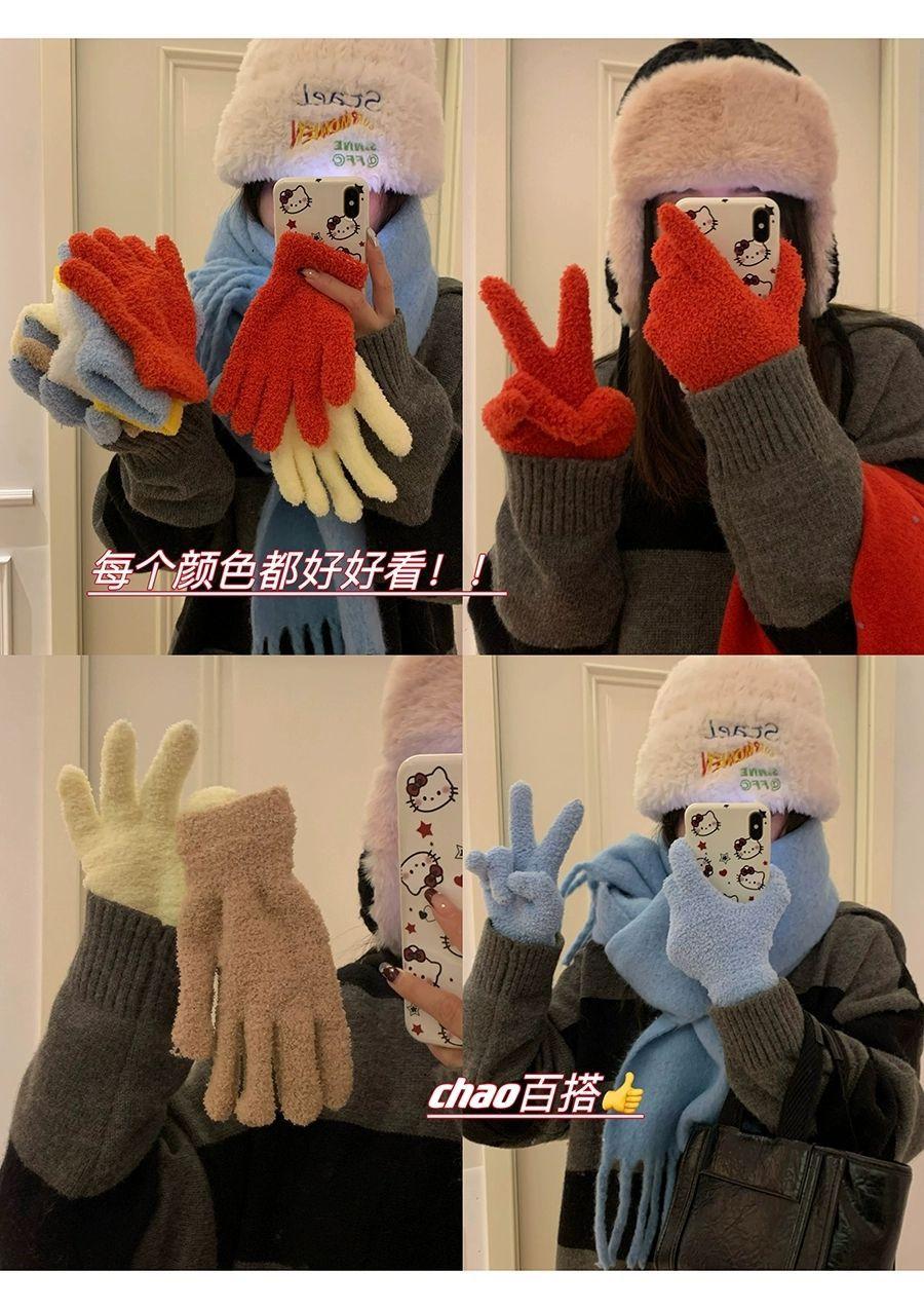 Guantes de felpa de invierno al por mayor de fábrica para mujer, versión coreana, de lana coral, para dedos, color caramelo, para ciclismo, cálidos y fríos.