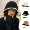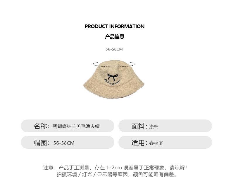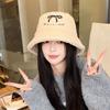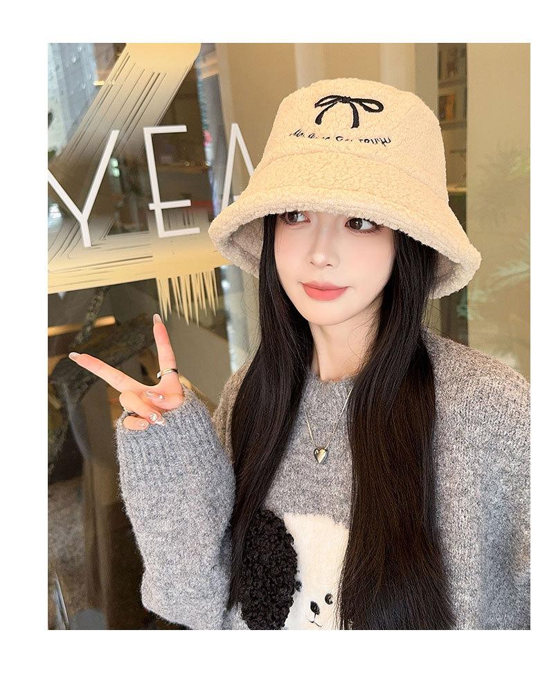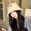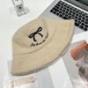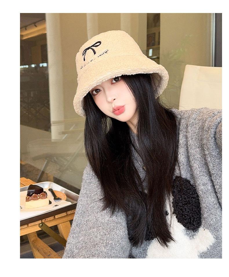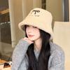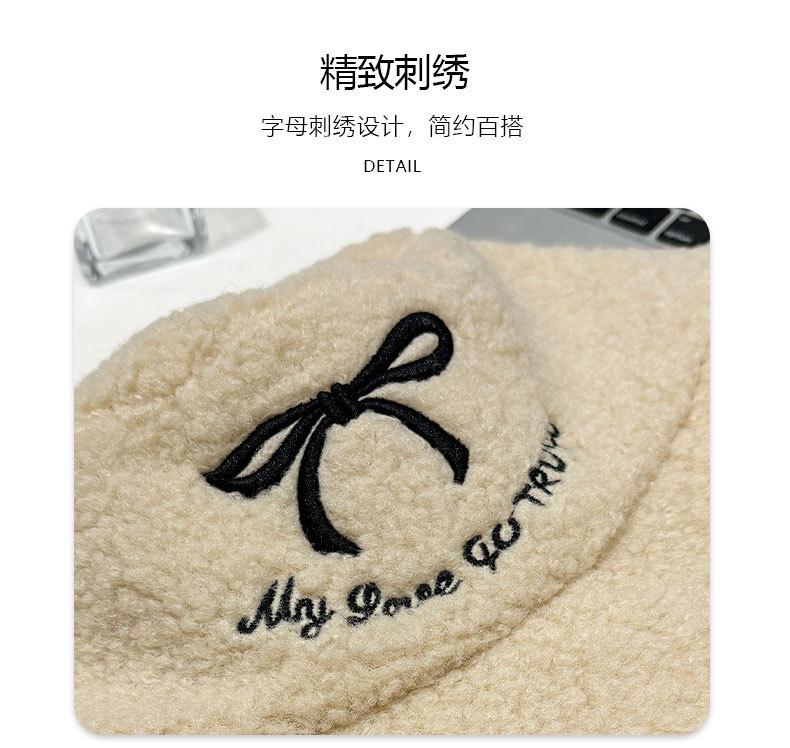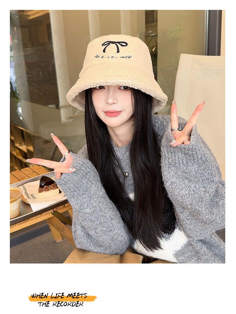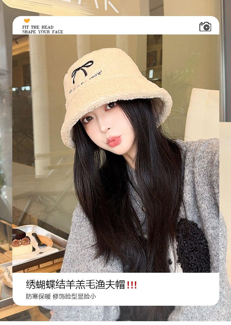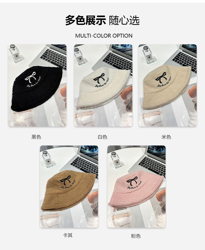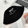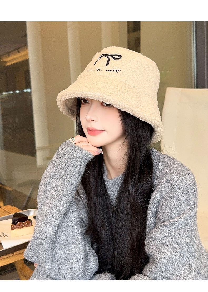 Sombrero de pescador estilo coreano para mujer, con lazo bordado de pelo de cordero, cálido, para otoño e invierno, nuevo estilo, pequeño y liso.