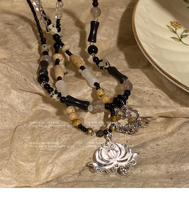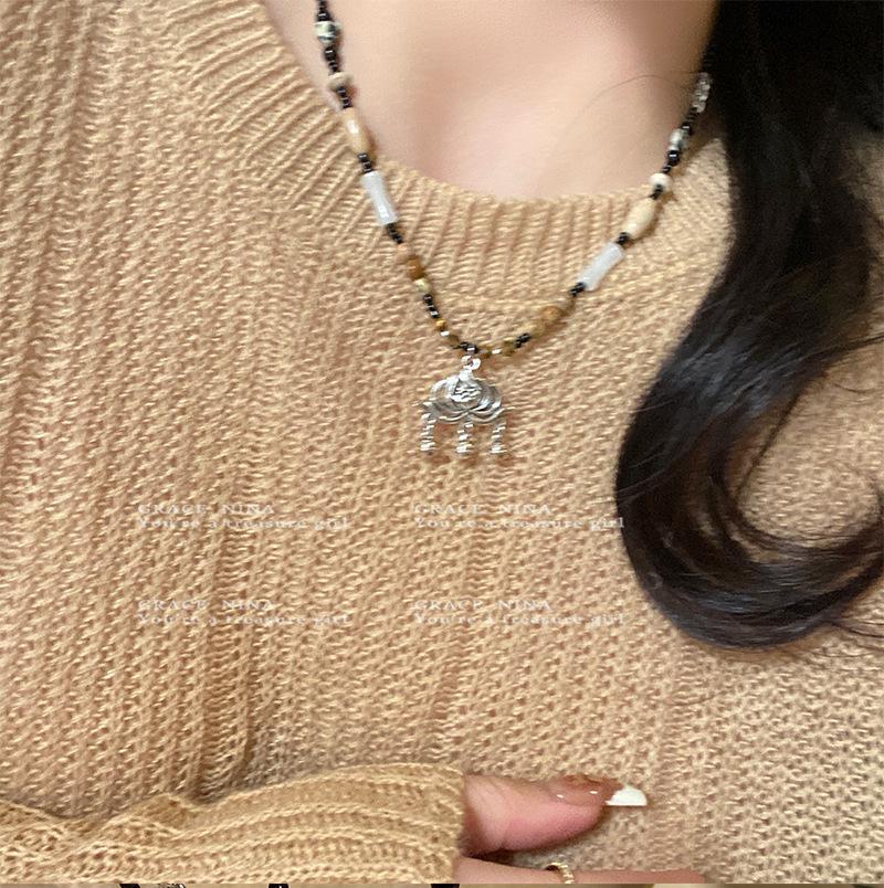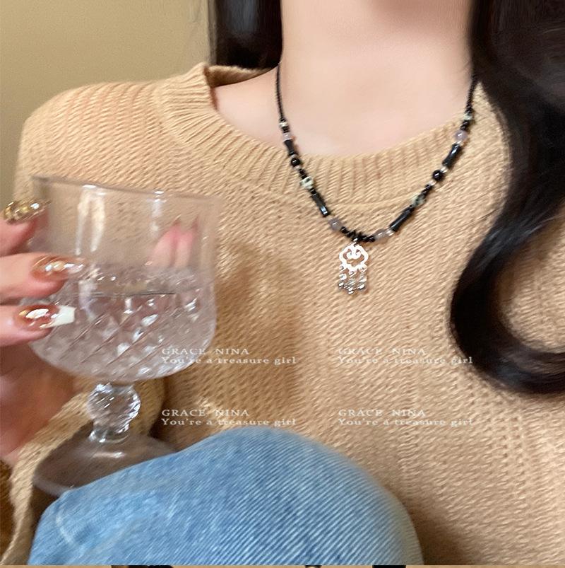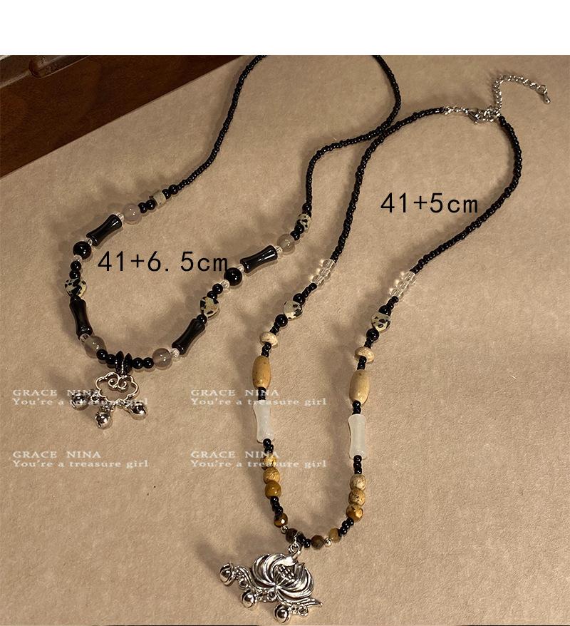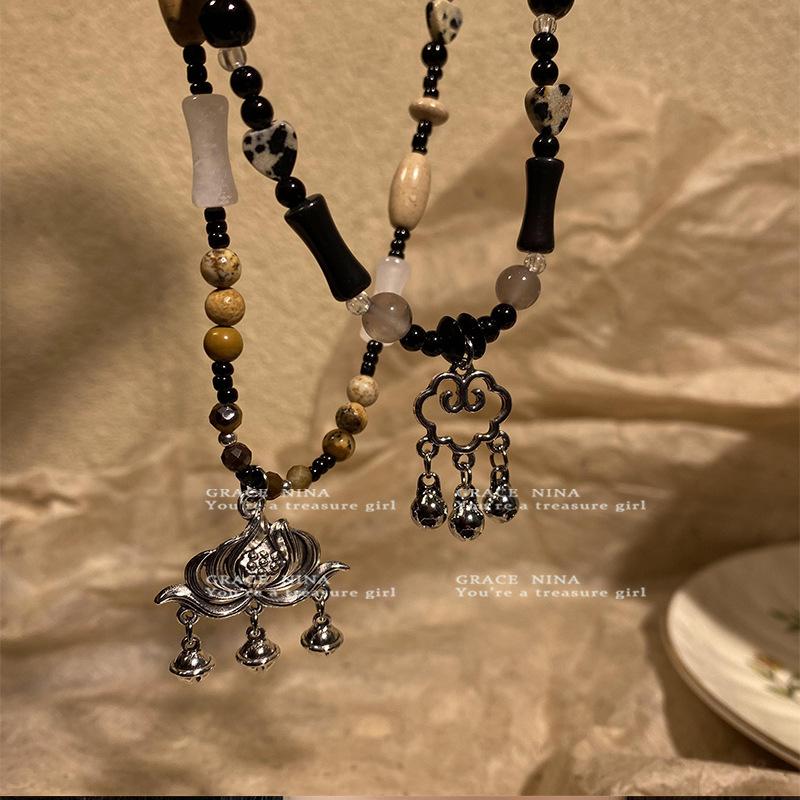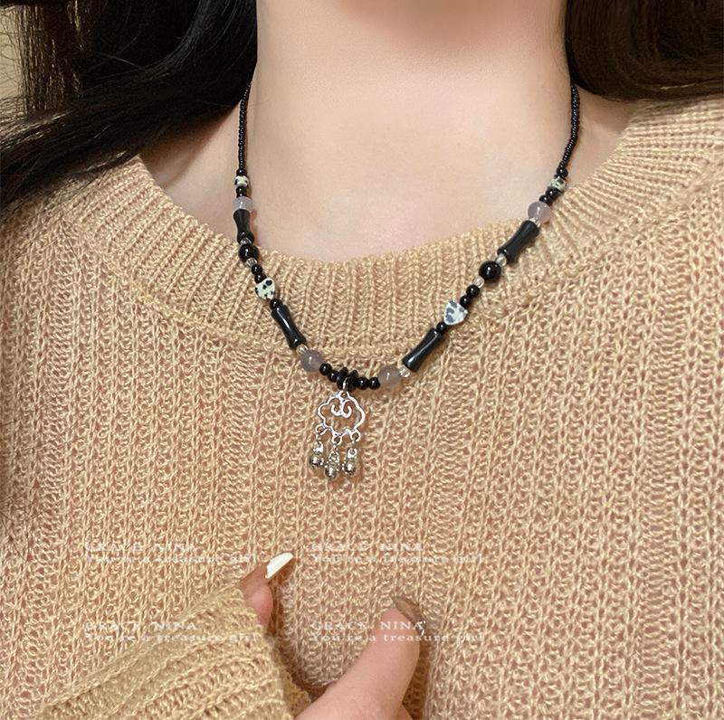 Collar Retro Étnico Estilo Candado de la Paz para Mujer 2024 Nuevo Popular Cadena Clavicular con Cuentas Lujo Accesible Diseño Nicho