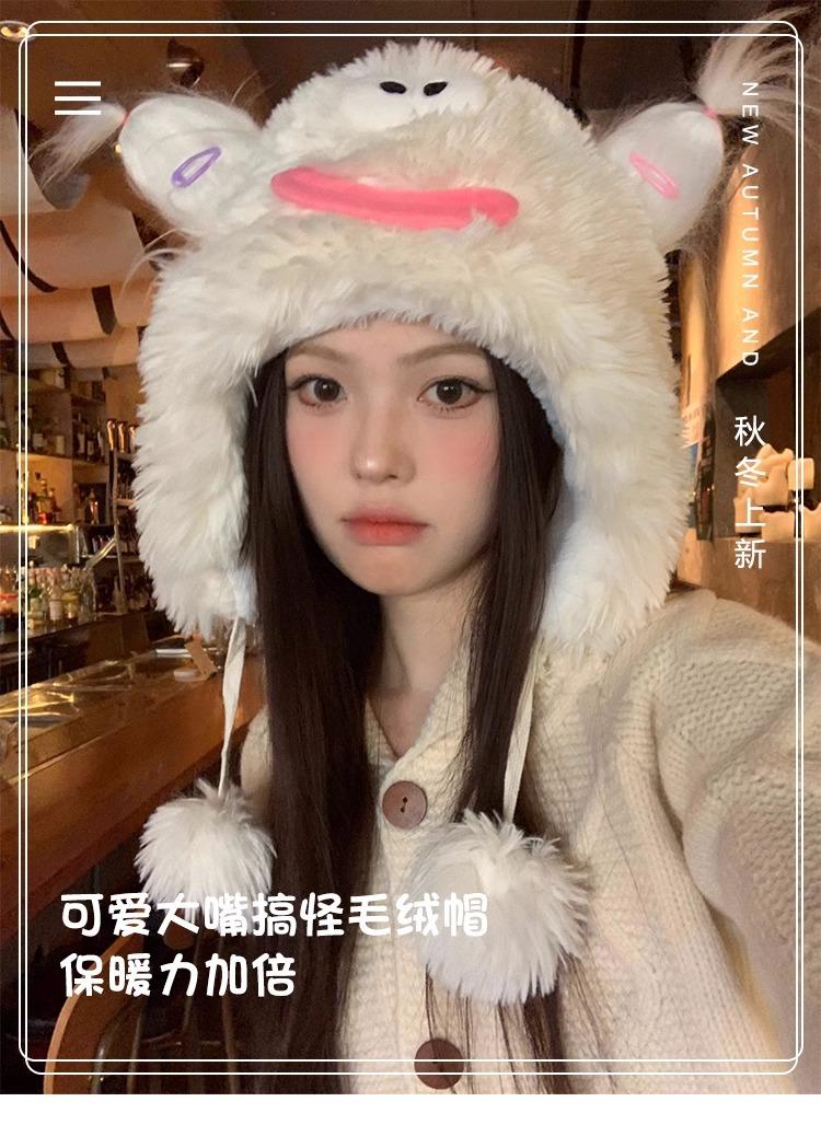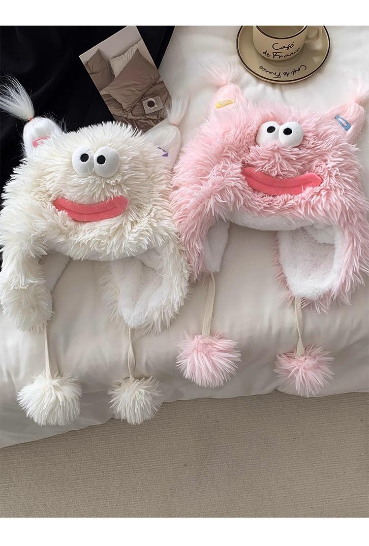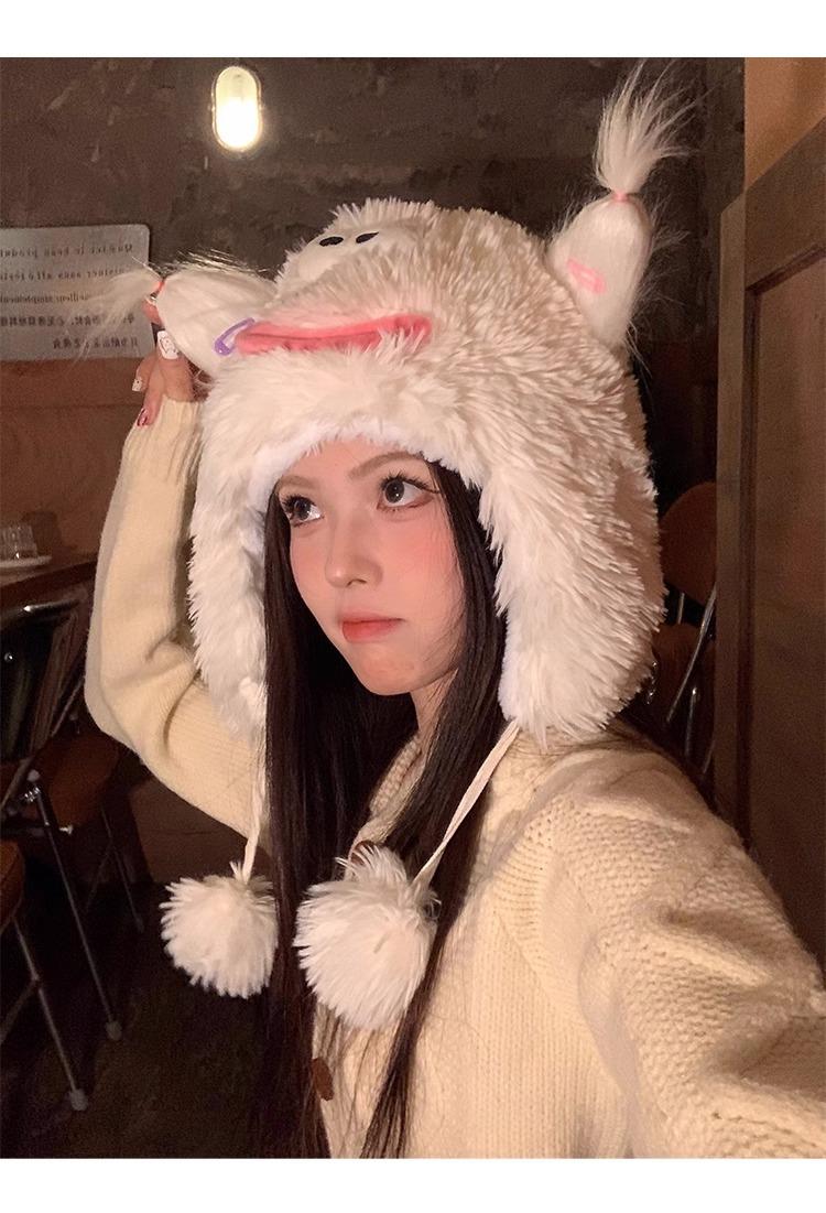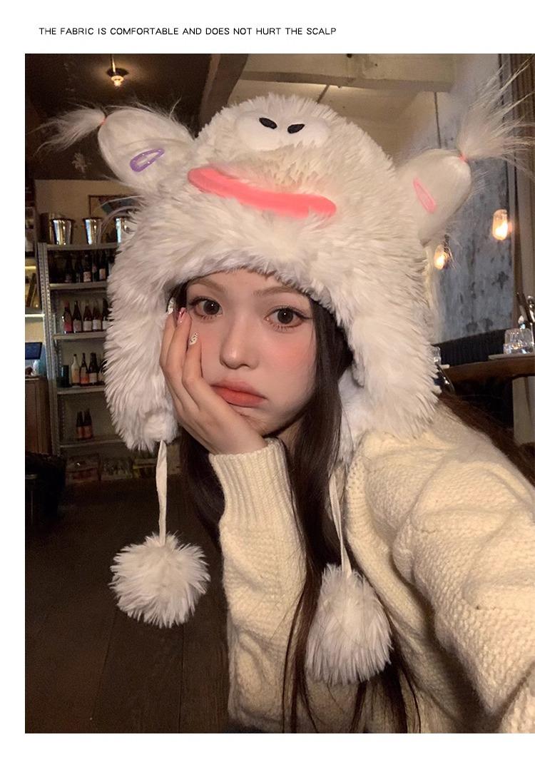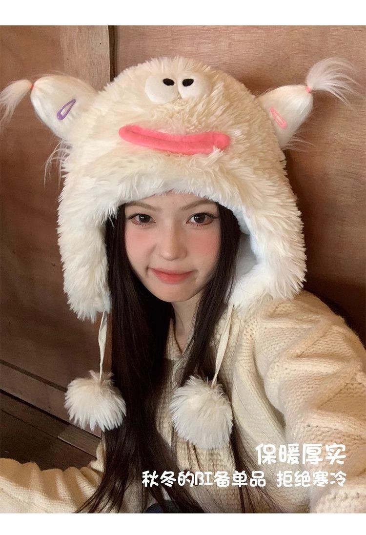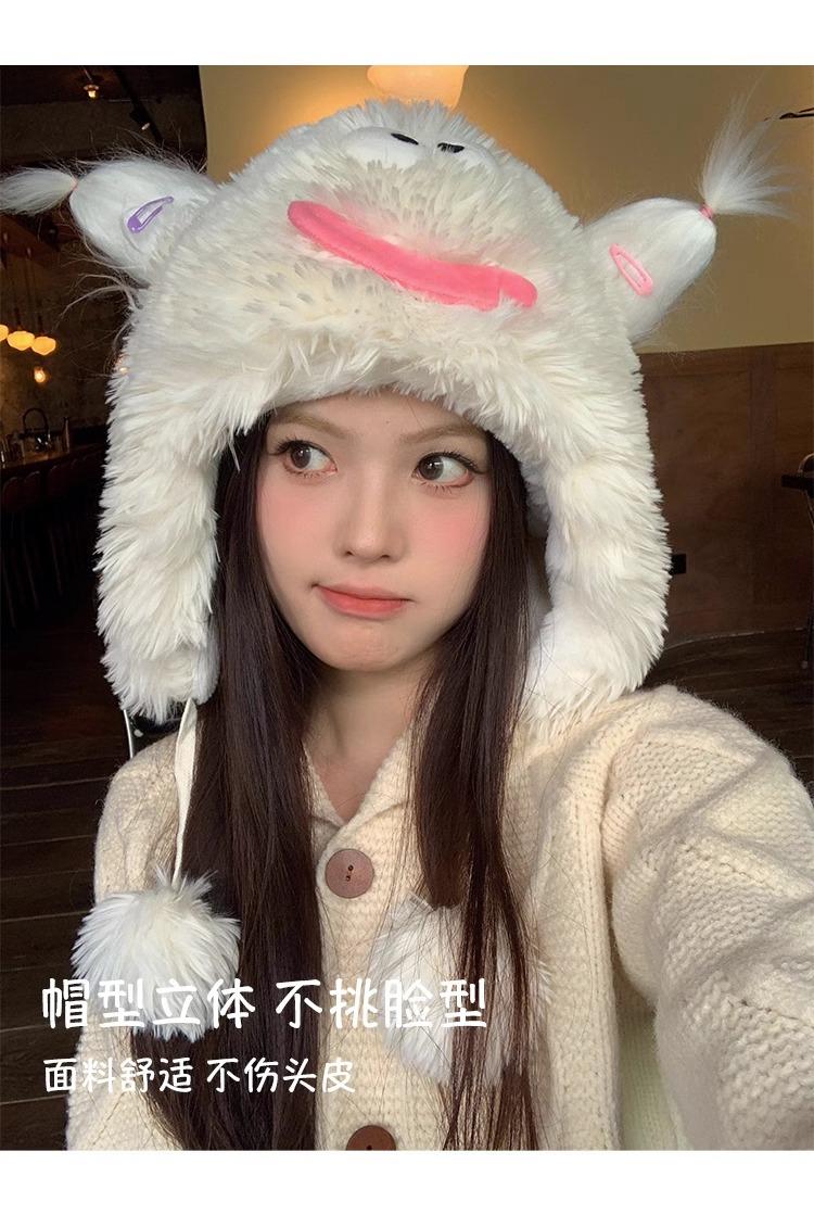 Sombrero Lindo Divertido para Mujer 2024 Nuevo Otoño e Invierno Cálido Sombrero Lei Feng Protección para las Orejas Engrosado Sombrero Tejido Estilo Coreano Cara Pequeña