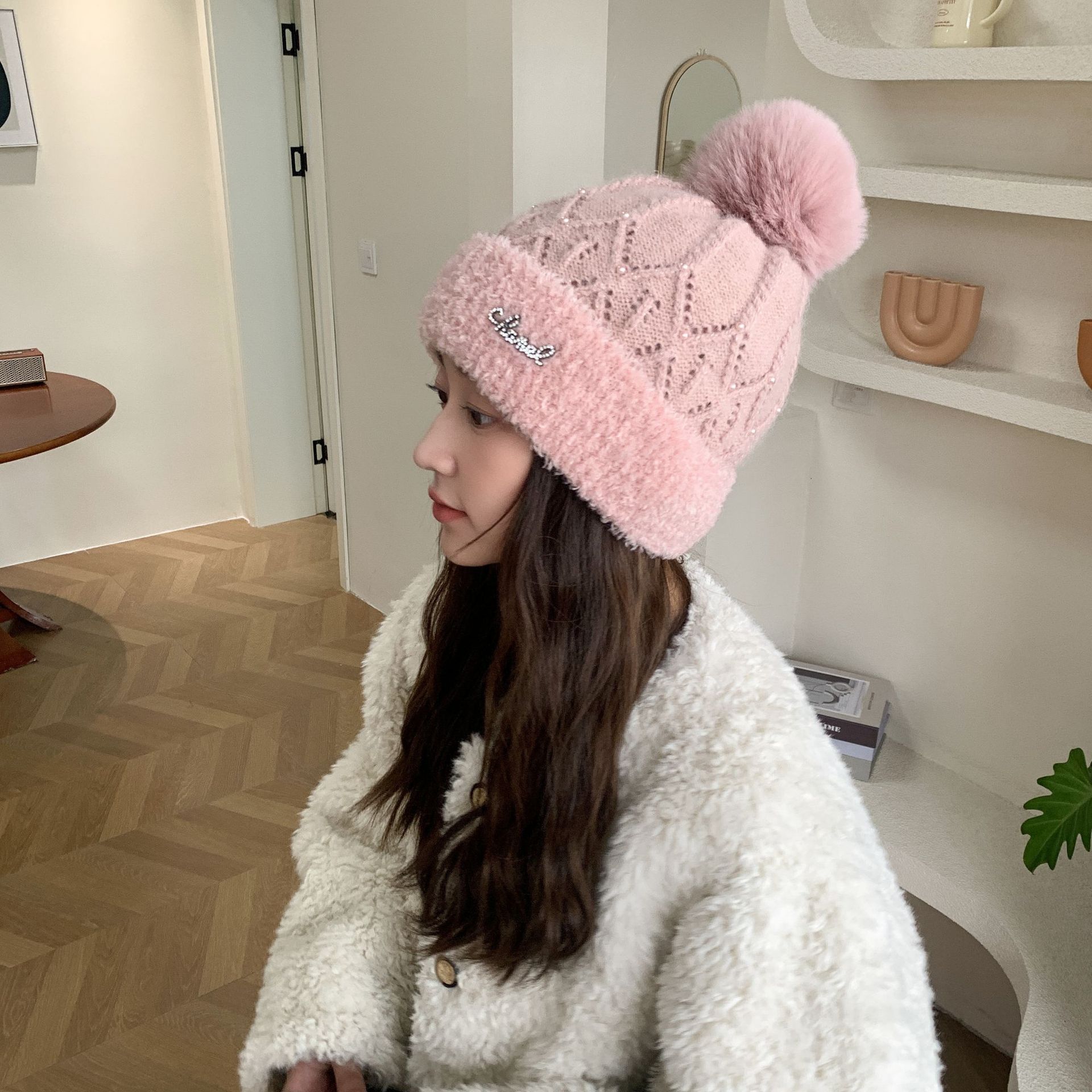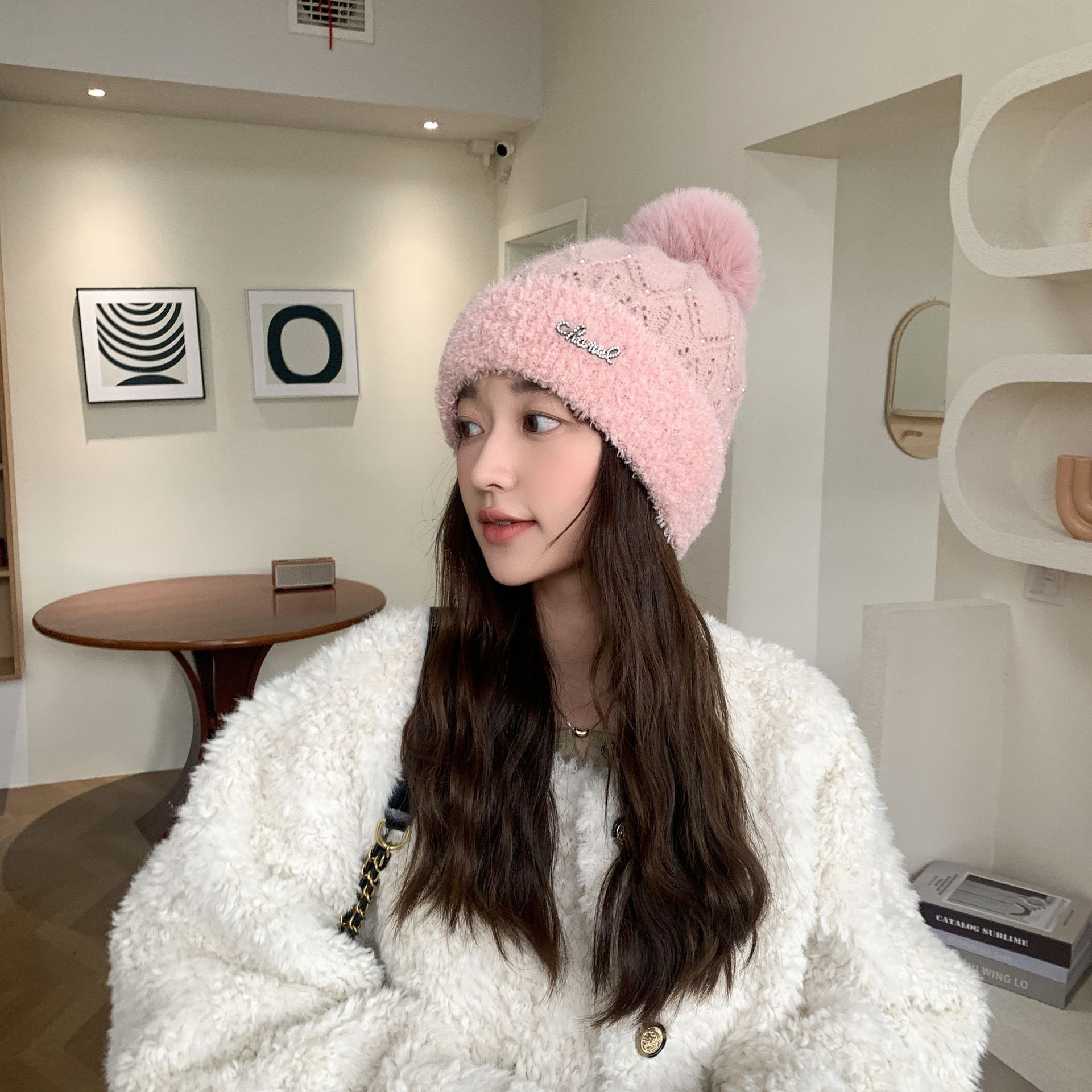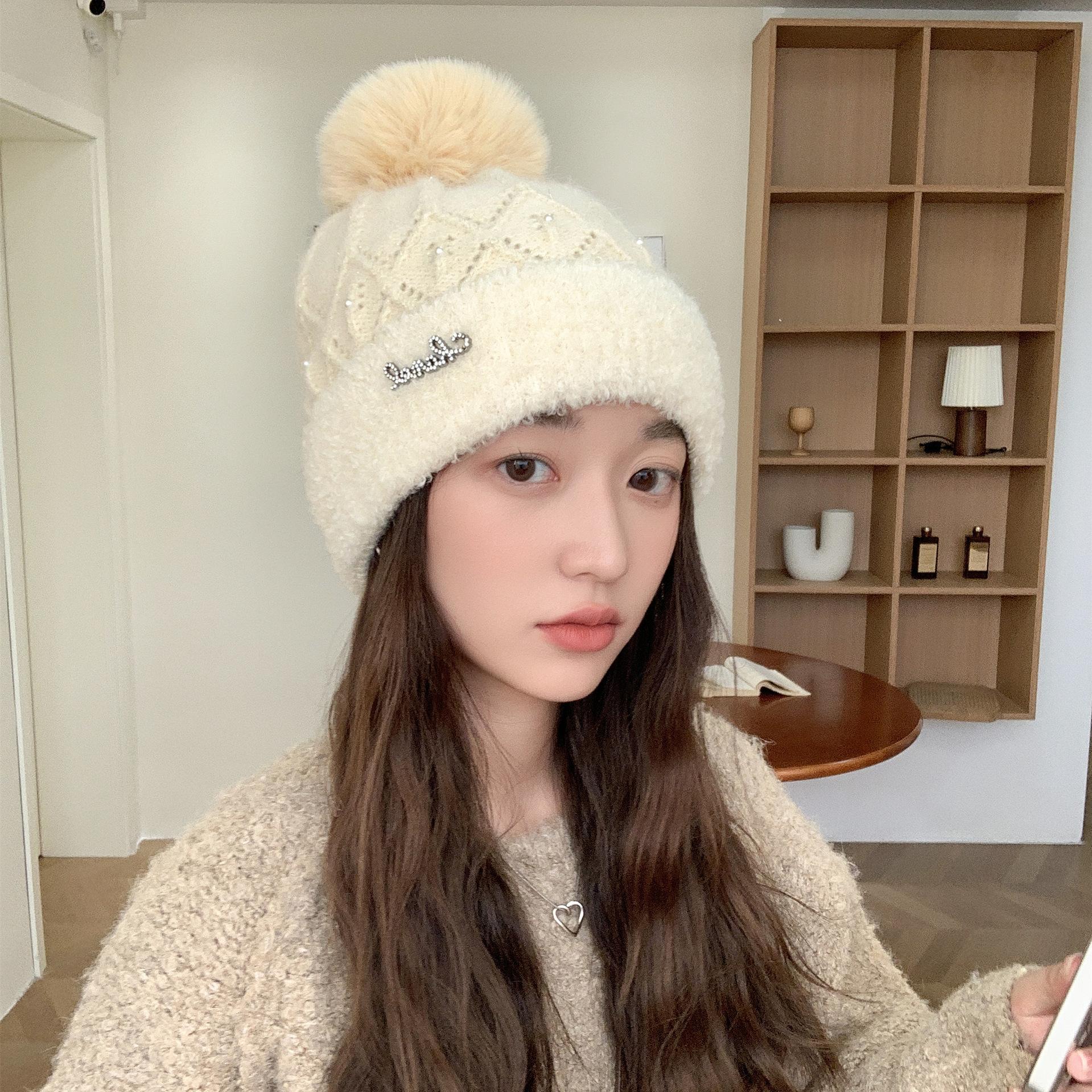 Sombrero Lindo Sombrero con Orejas Sombrero de Lana de Pelo de Conejo para Niños Otoño e Invierno Cálido Combinable Protección para las Orejas Sombrero Tejido Muestra Rostro Pequeño