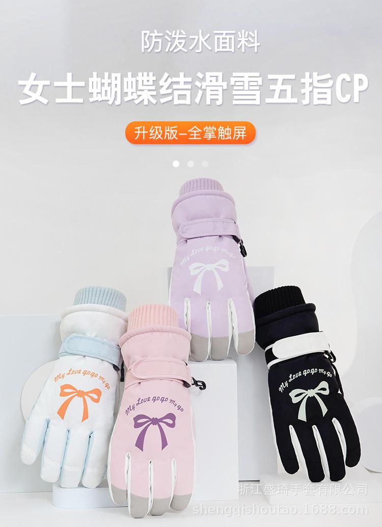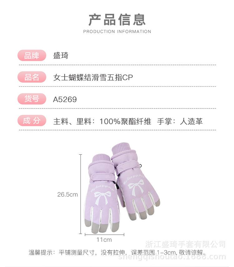 Guantes de esquí de invierno para exteriores con cinco dedos y pantalla táctil para mujer, para estudiantes, ciclismo, resistentes al viento, antideslizantes, forrados con vellón grueso, resistentes al frío y cálidos.