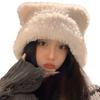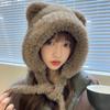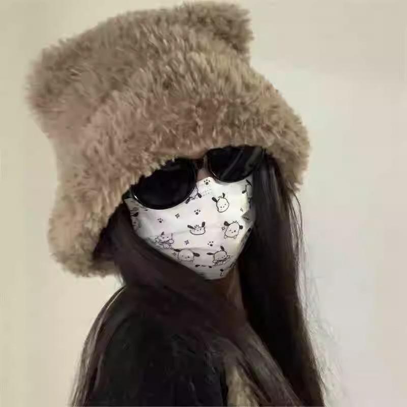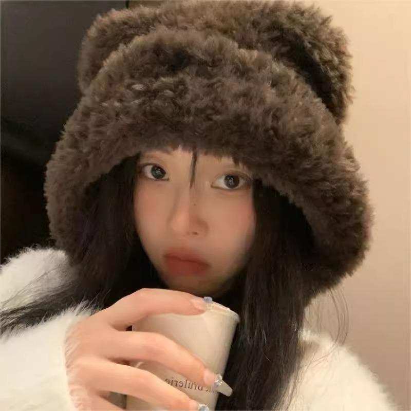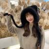 Invierno Lindo Sombrero con Protección para las Orejas de Oso para Mujer Cabeza Grande Wai Sombrero Tejido Esponjoso Ciclismo A Prueba de Frío Peludo Sombrero Pulóver