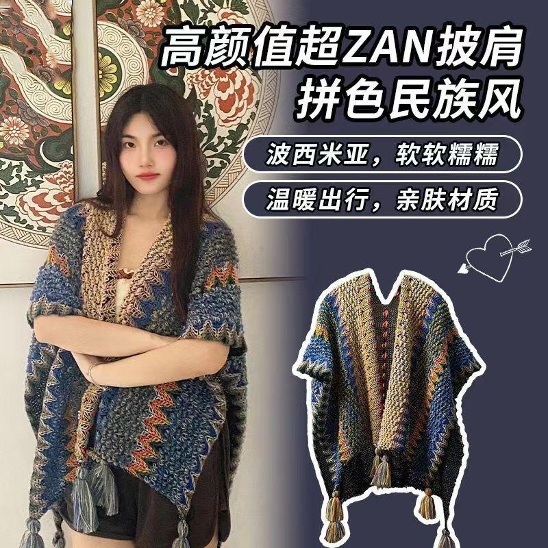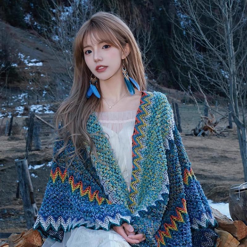 Chal étnico con combinación de colores para mujer 2024 nuevo de alto valor moda otoño e invierno bufanda de doble uso para turismo en Yunnan