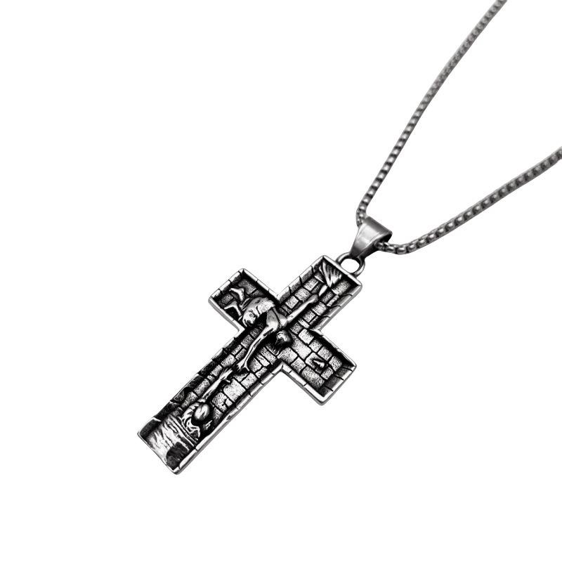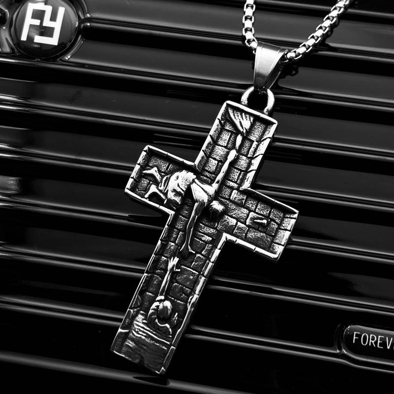 Collar con colgante de cruz del Salvador, joyería para hombre, regalo de marca de moda, colgante personalizado de acero de titanio estilo hip hop para hombre.