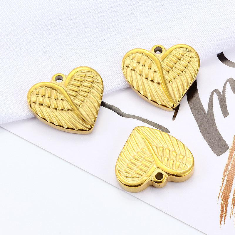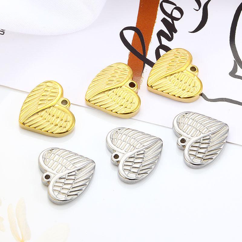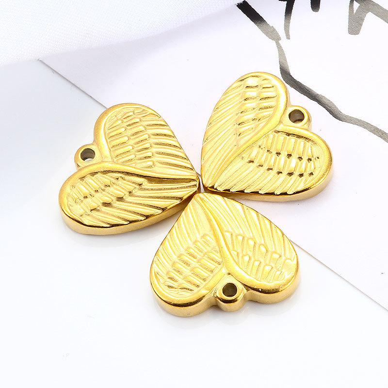 Nuevo colgante con diseño de alas de amor, accesorios de acero inoxidable dorado, collar, pulsera y colgante de acero de titanio en forma de corazón.