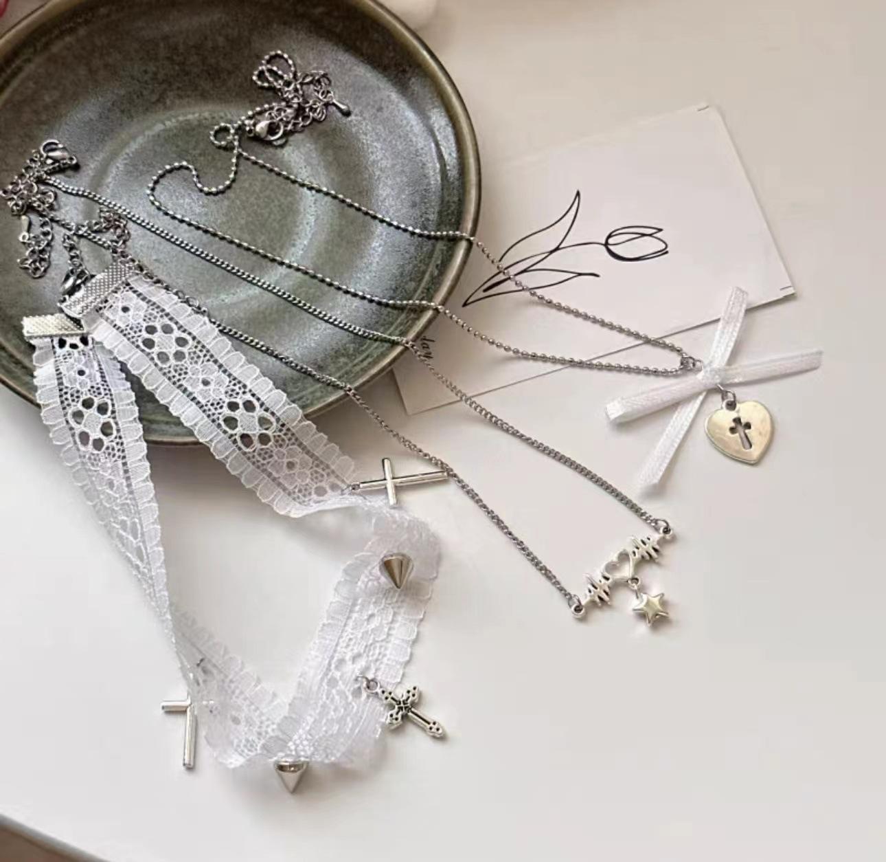 Lace cross three-piece set, Lace cross single strip, Heart-moving five-pointed star single strip, Bow cross heart single strip