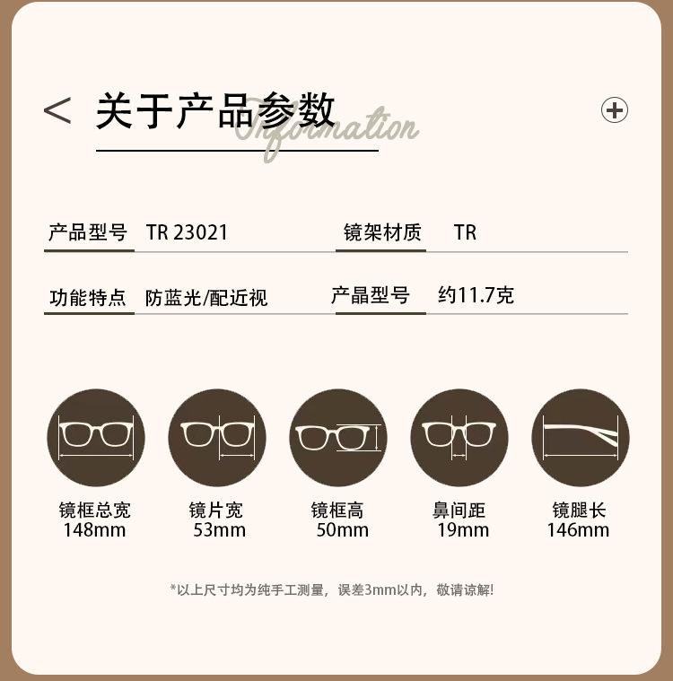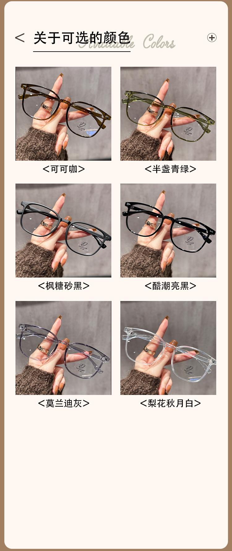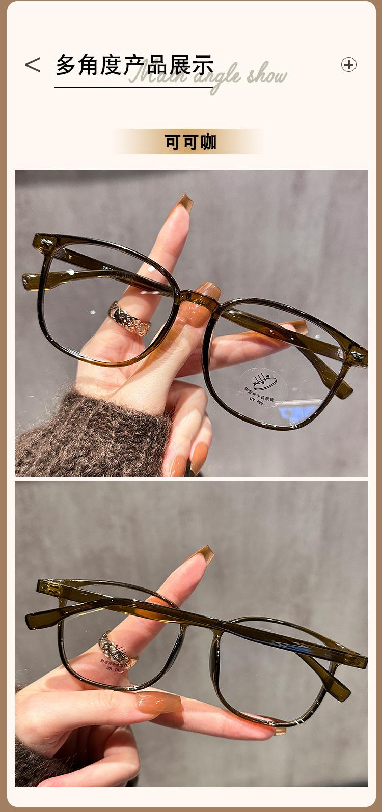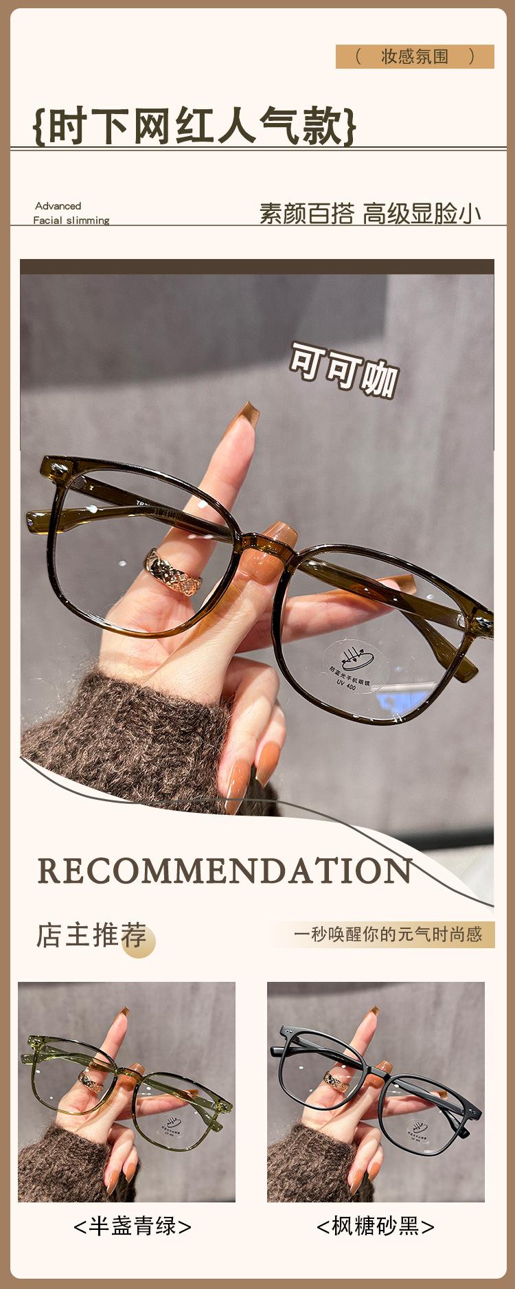 Gafas para miopía TR23021 de estilo coreano con montura grande y lisas para hombre y mujer, de estilo versátil, en tonos café cacao blanco, para otoño e invierno.