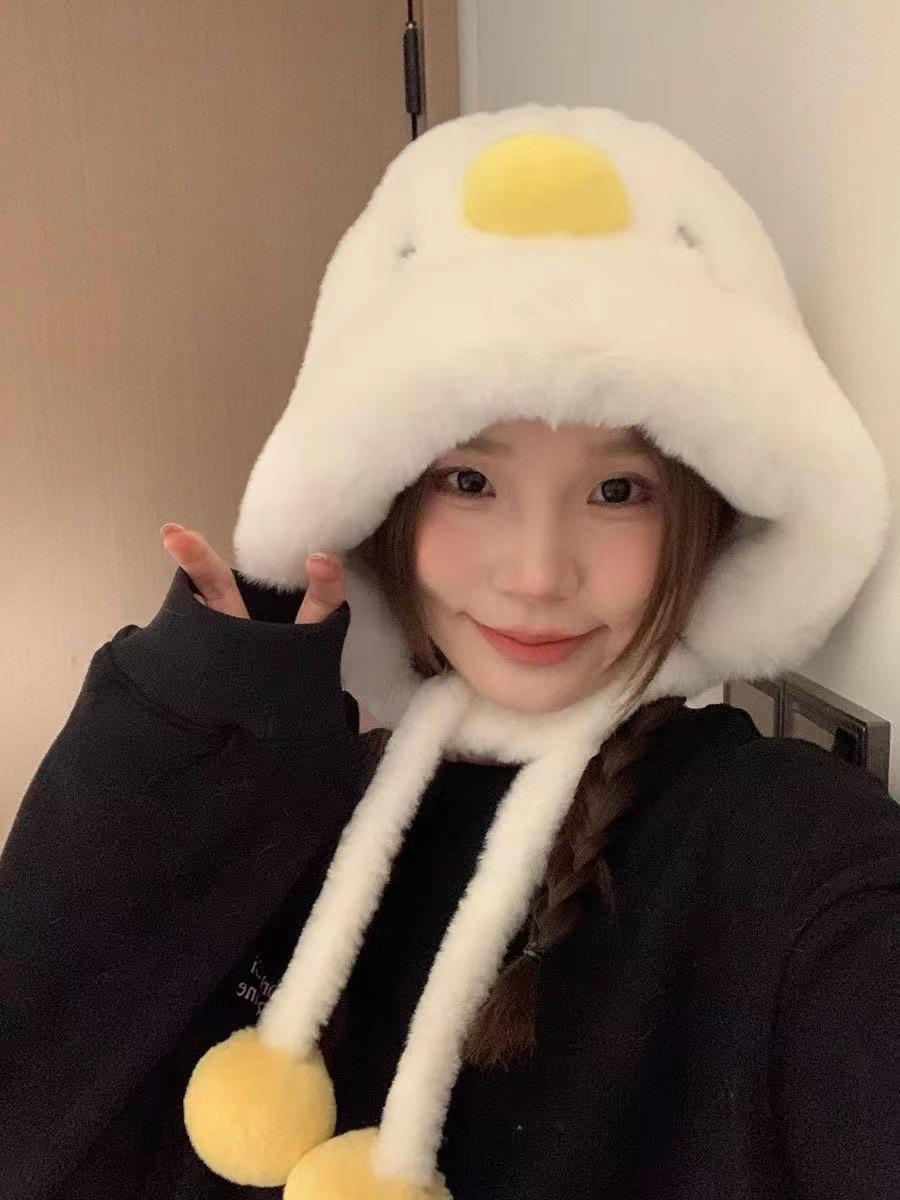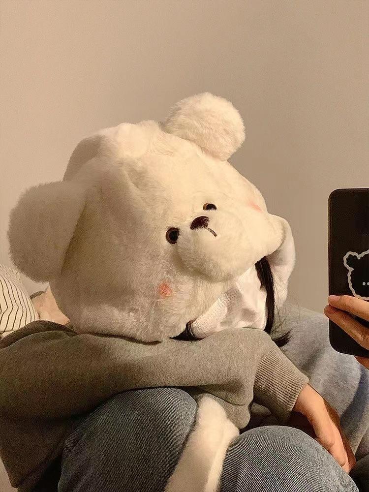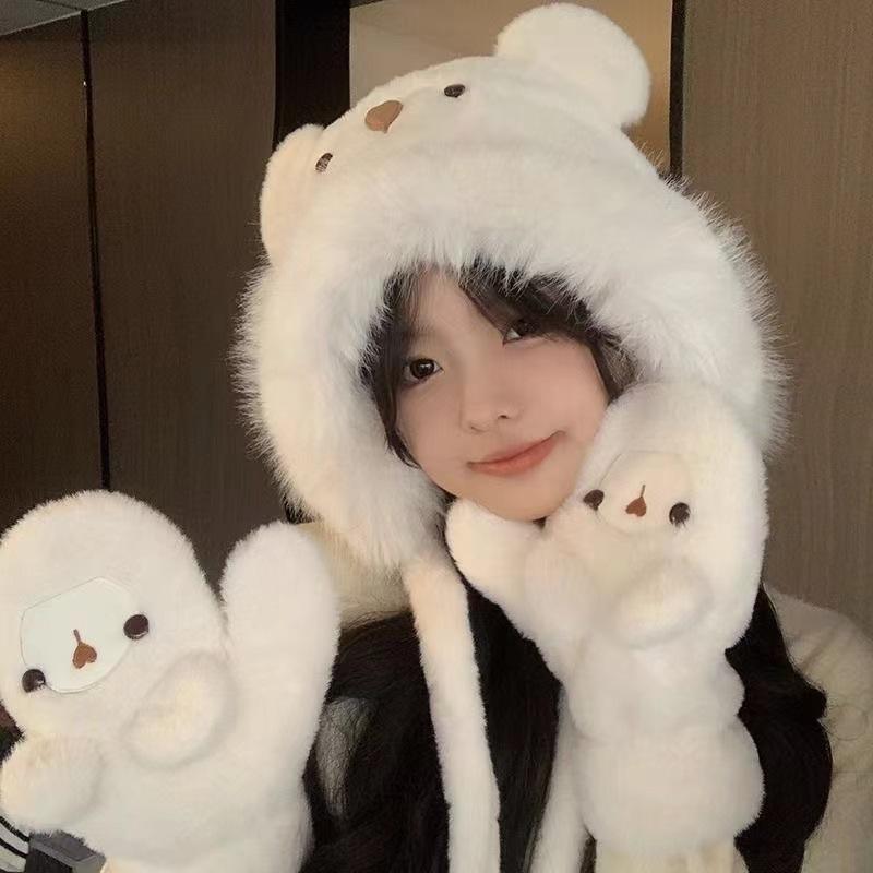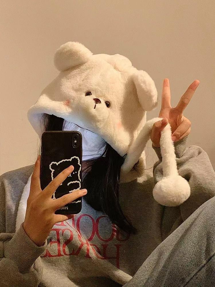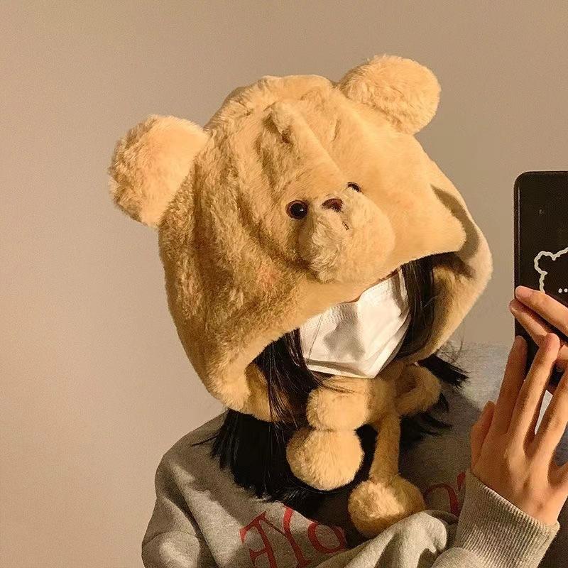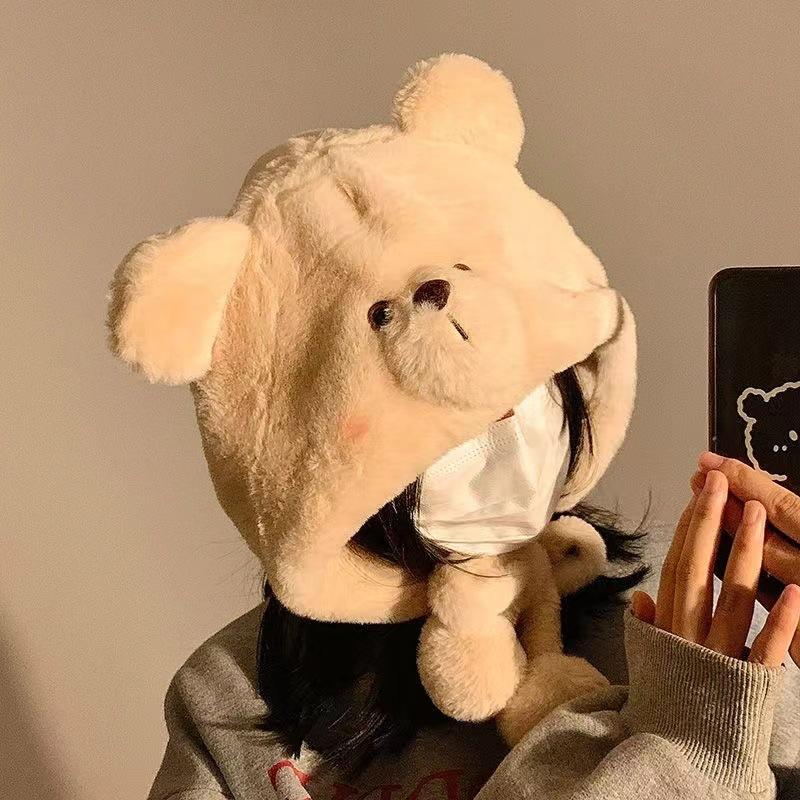 Gorro de mujer con orejas de oso de peluche, grueso y cálido, para otoño e invierno, con protección para los oídos, bonito gorro Lei Feng para ciclismo.