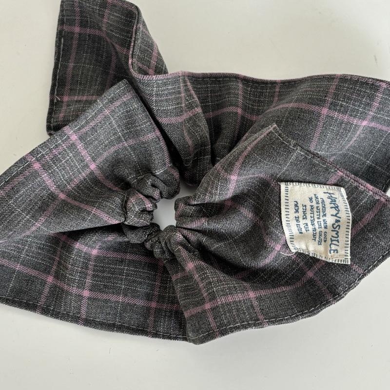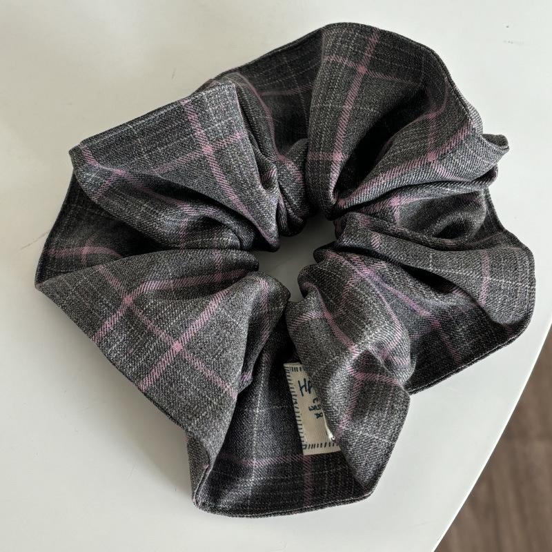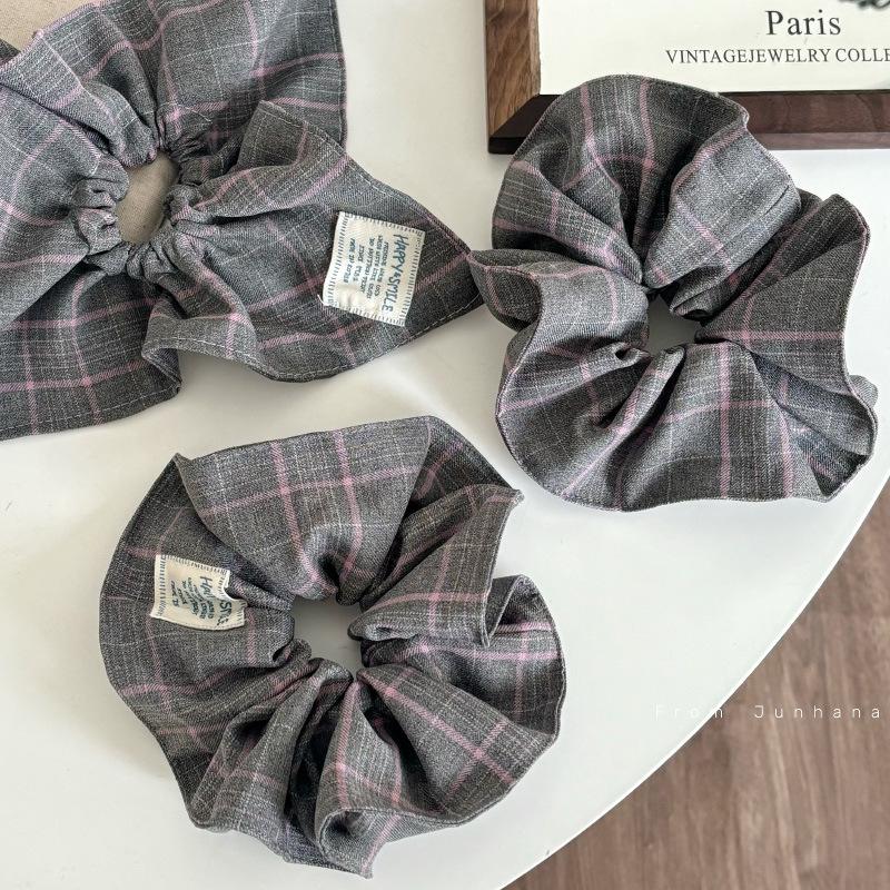 Anillo para el cabello cuadrado de alta calidad con diseño de cuadros grises en polvo para el intestino grueso, elegante y a la moda, accesorio para el cabello con cola de caballo sencilla y combinable para mujer.