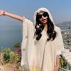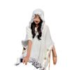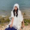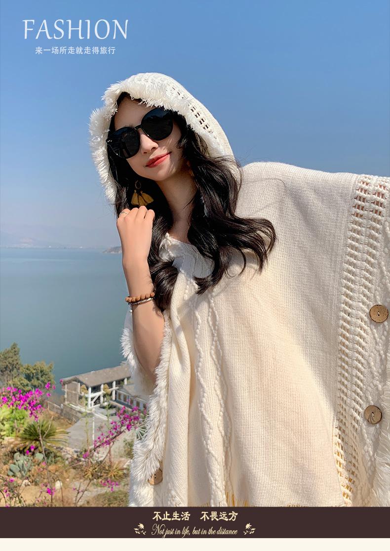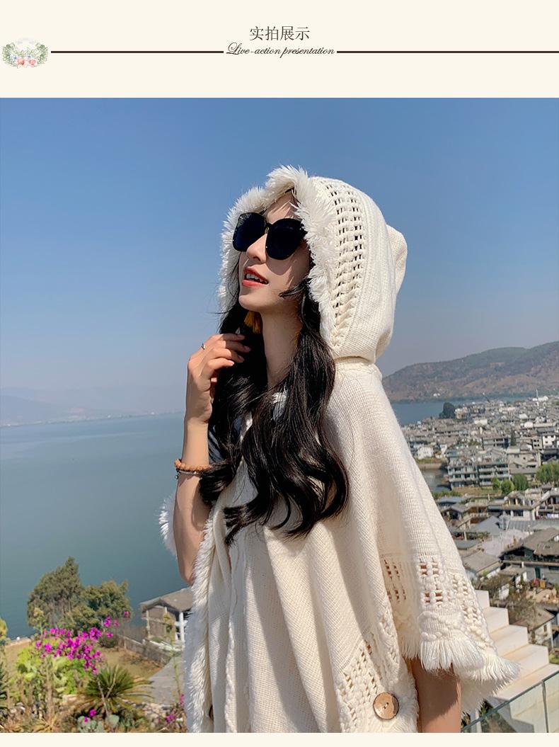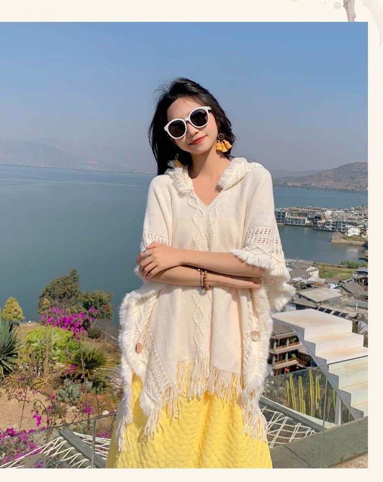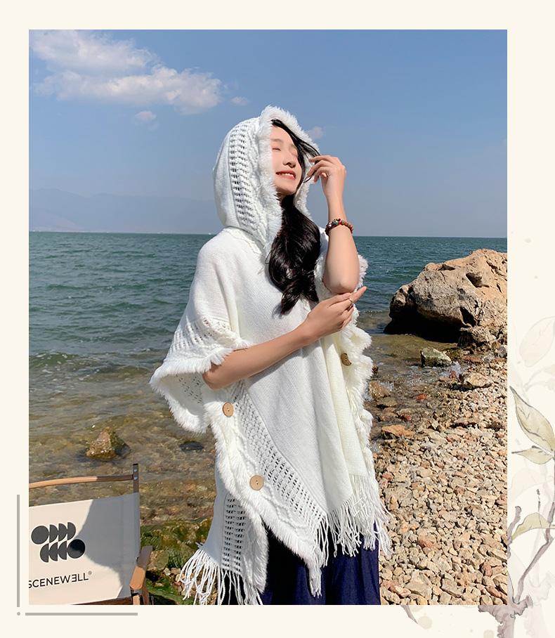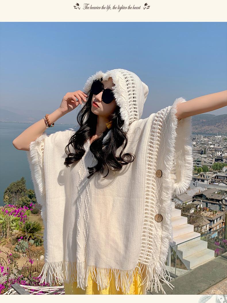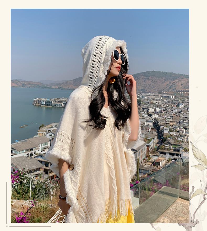 Chal Étnico Suéter de Punto con Borlas Bohemio Xinjiang Xizang Yunnan Viaje Capa con Capucha Mujer