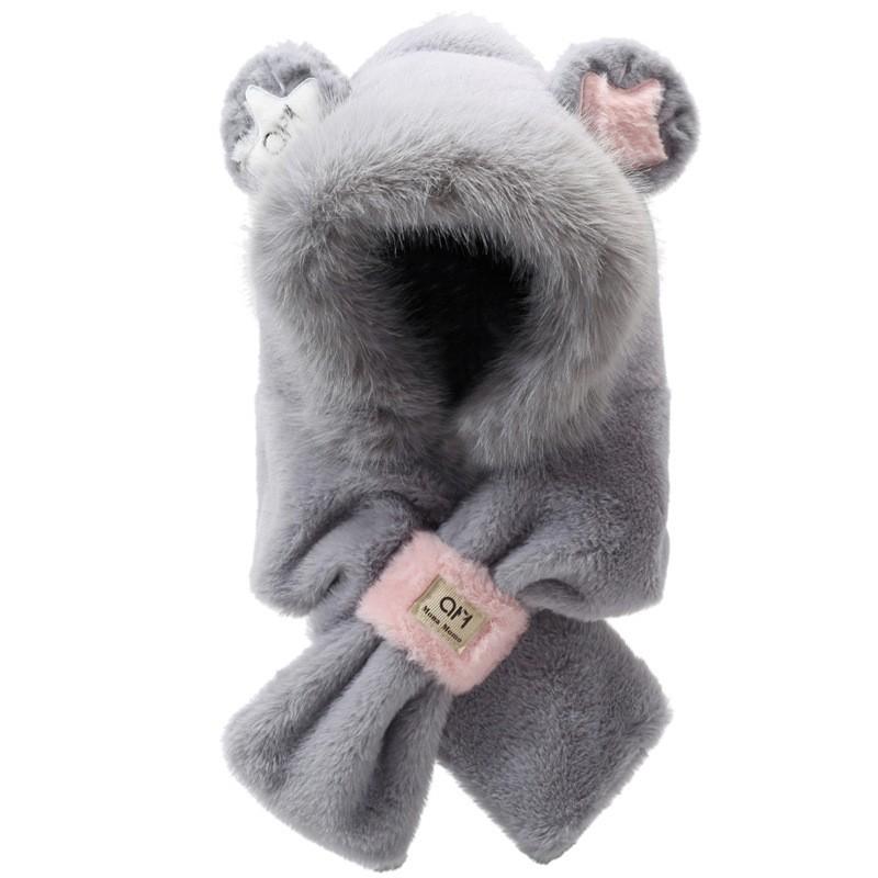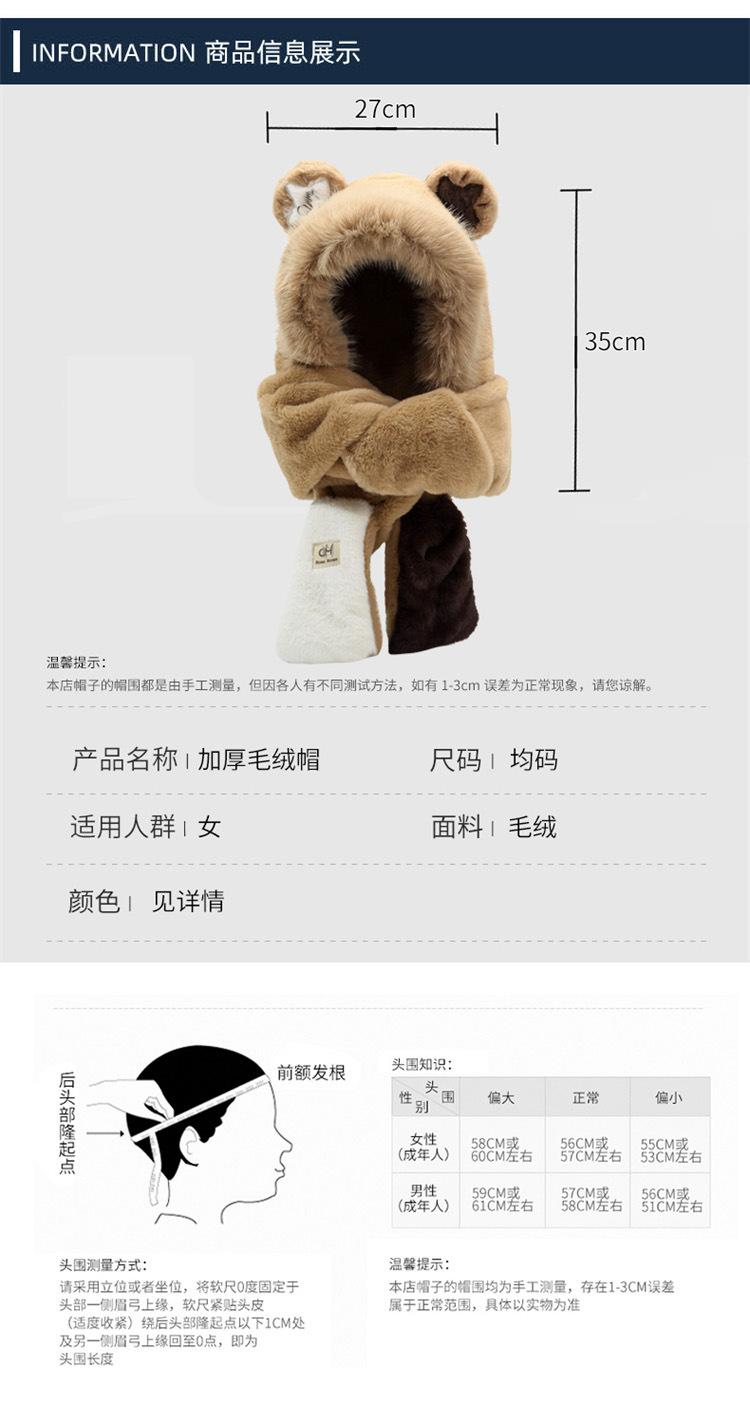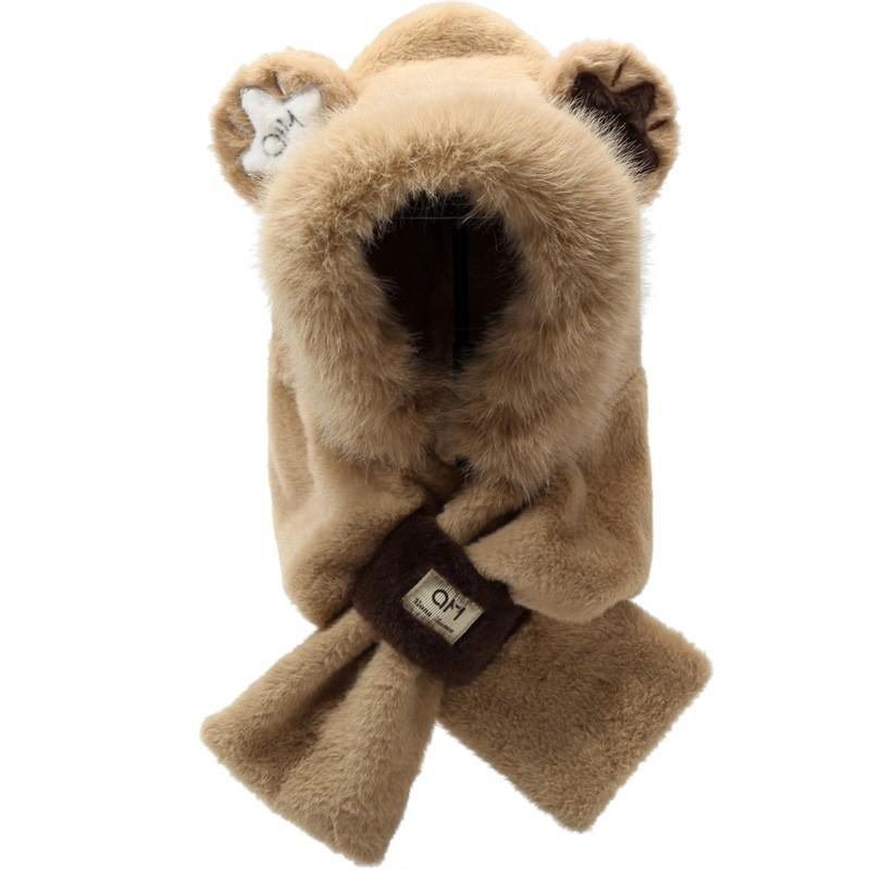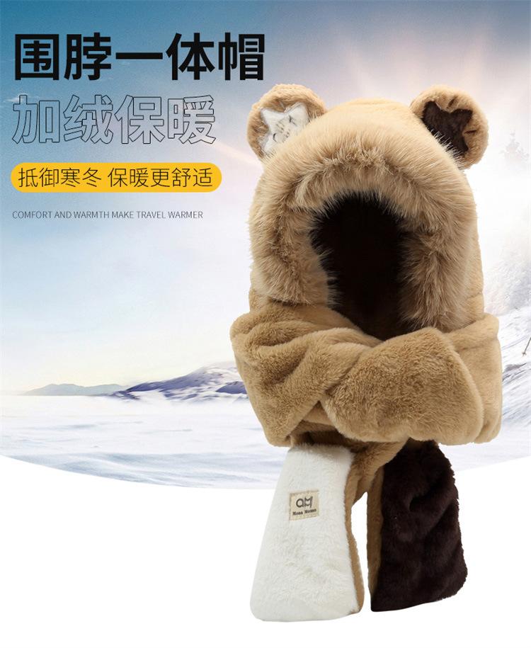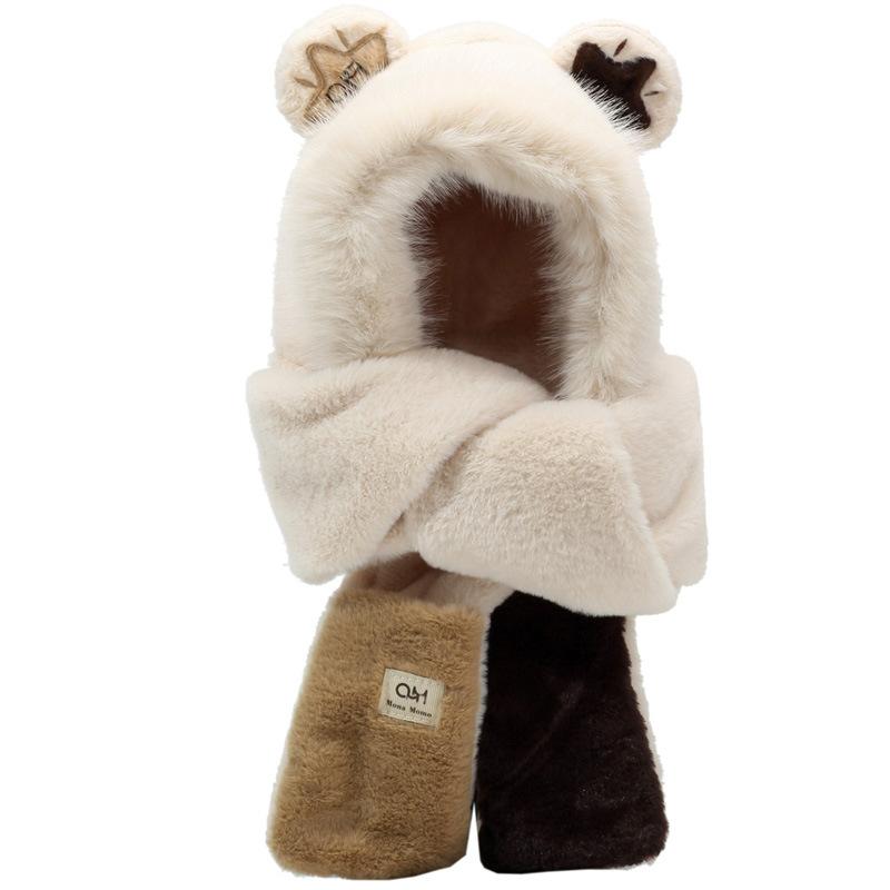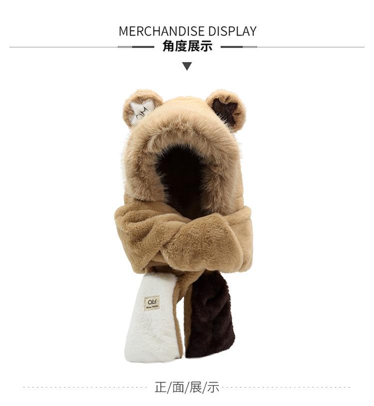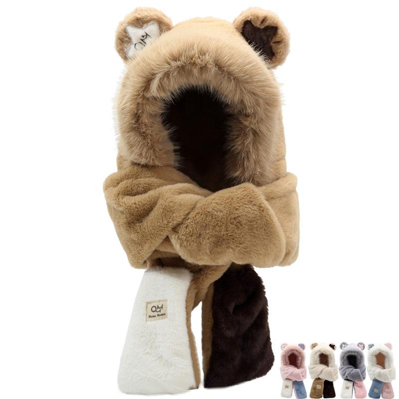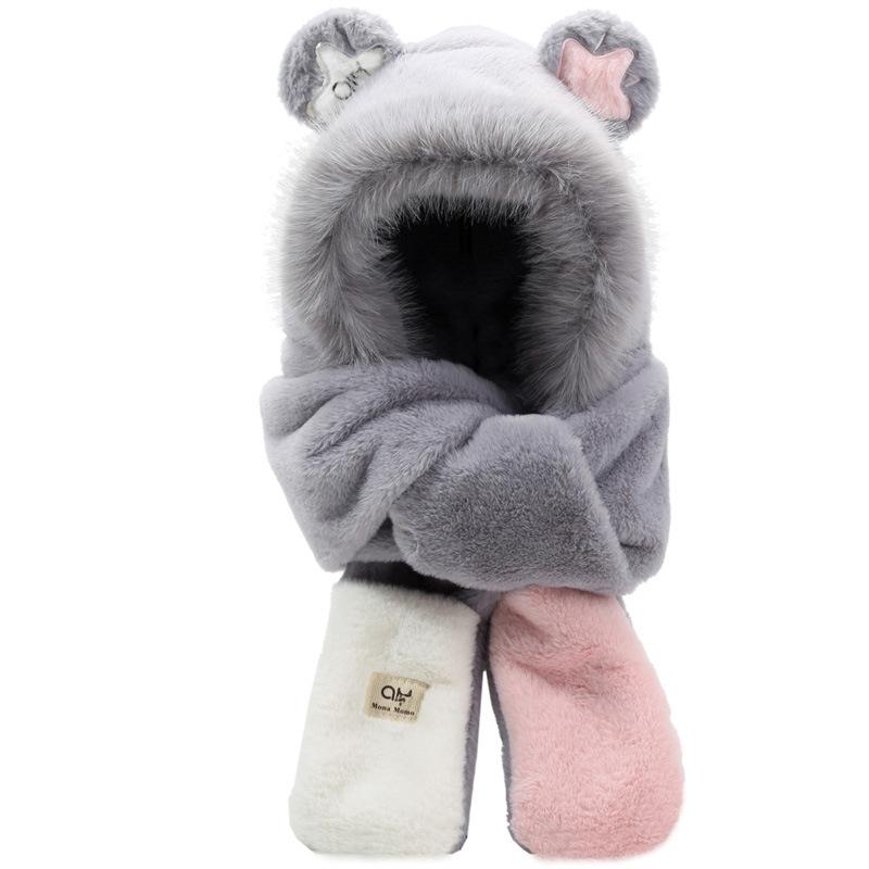 Invierno nuevo sombrero para mujer cálido de tres piezas sombrero bufanda guantes engrosado lindo oso estrellas protección para las orejas sombrero Lei Feng
