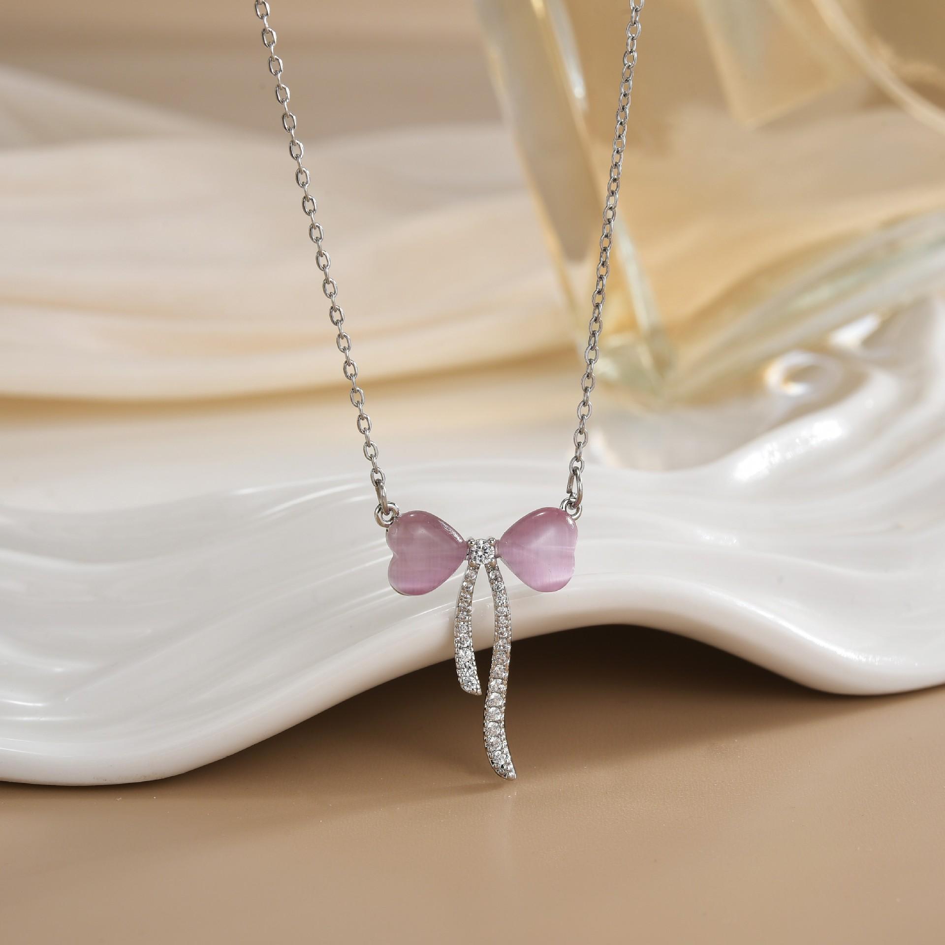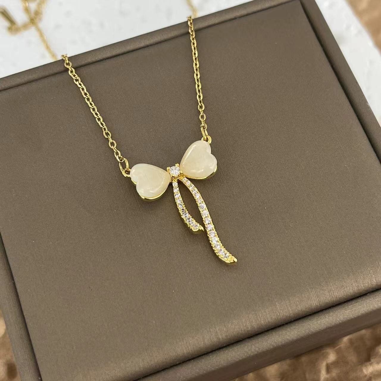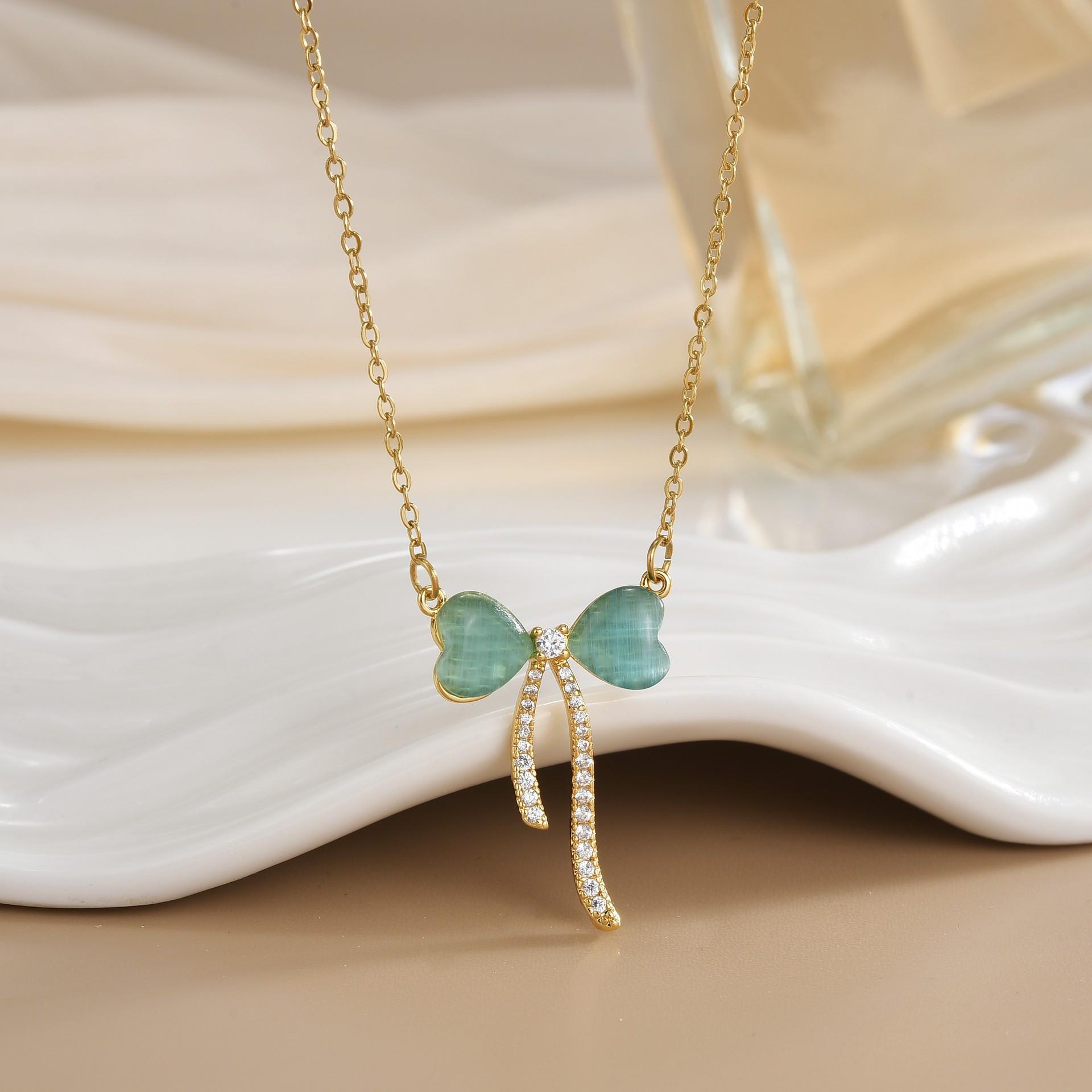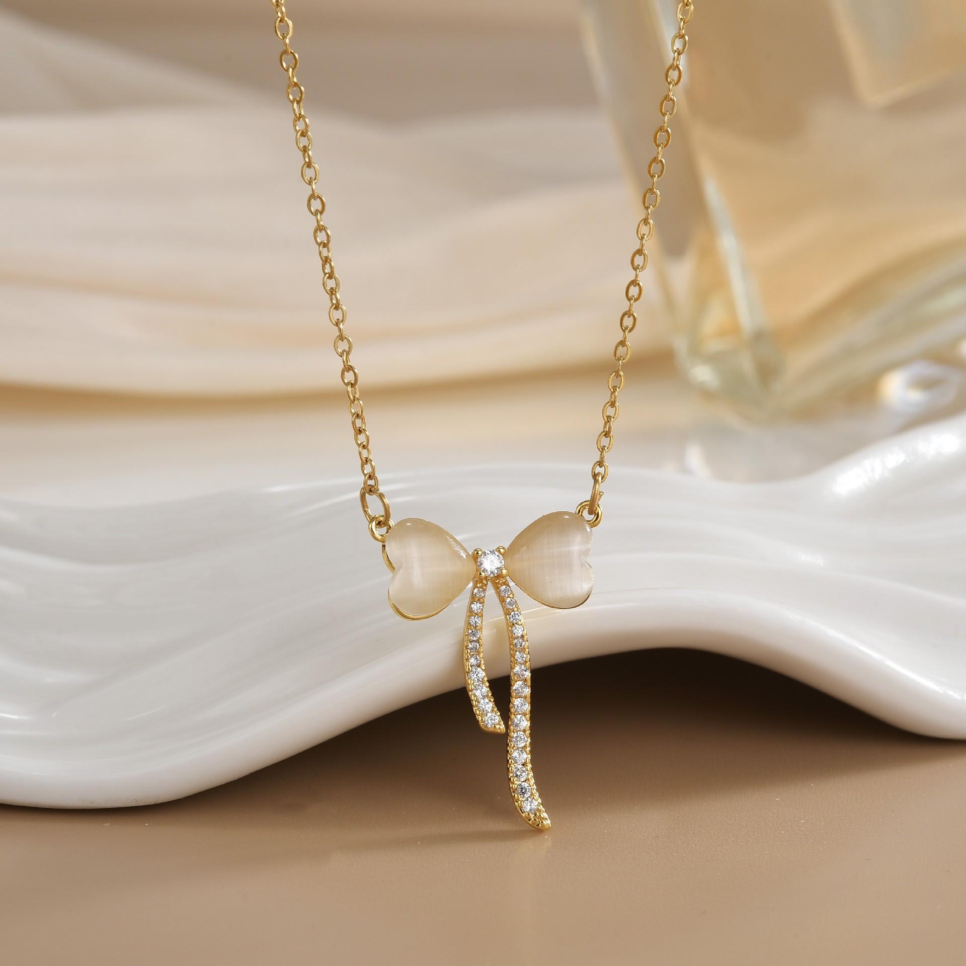 Accesorios de moda de temperamento puro japonés y coreano para mujer, pequeño, fresco, de alto sentido, cadena de clavícula, collar con lazo de ópalo, venta al por mayor