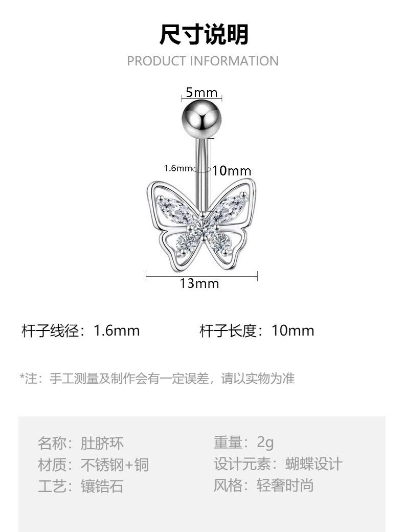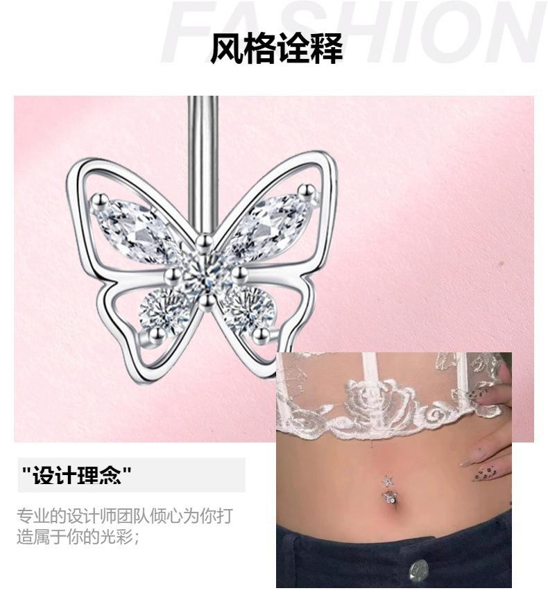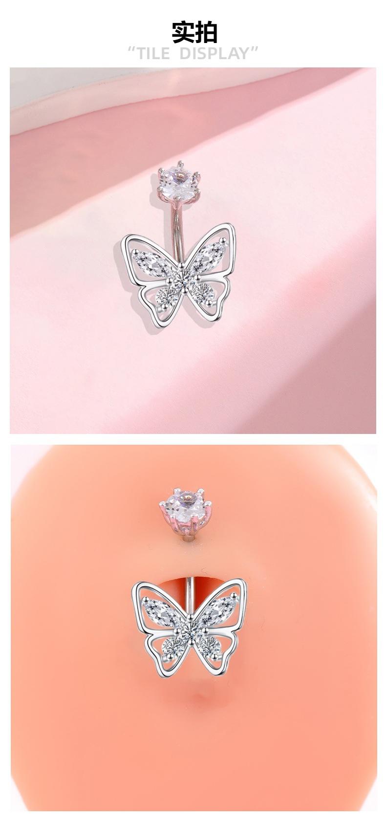 Nuevo anillo de ombligo de circonita con incrustaciones de cobre y mariposa hueca, joyería de moda europea y americana para perforar el ombligo, venta al por mayor