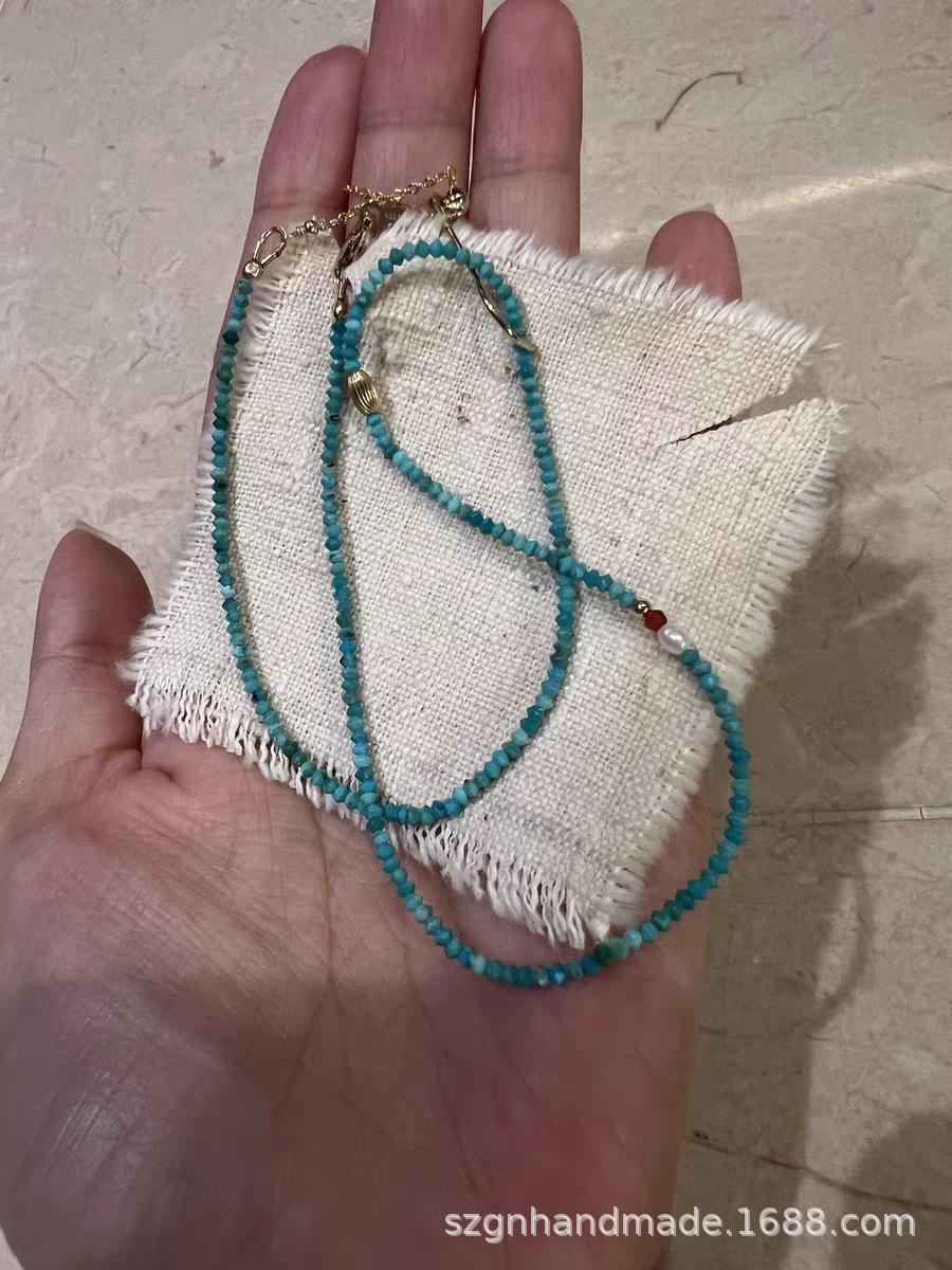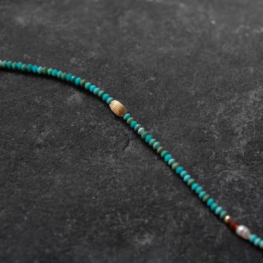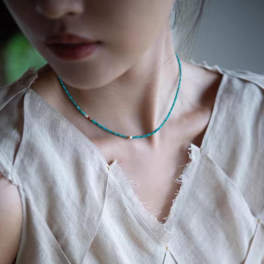 Collar de cuentas chinas con diseño de nicho para mujer, fabricado en EE. UU., con cuentas de OVNI de pino azul y verde importadas de Afganistán.
