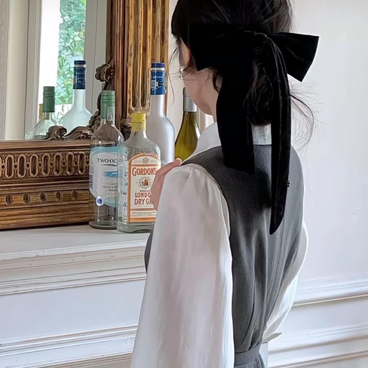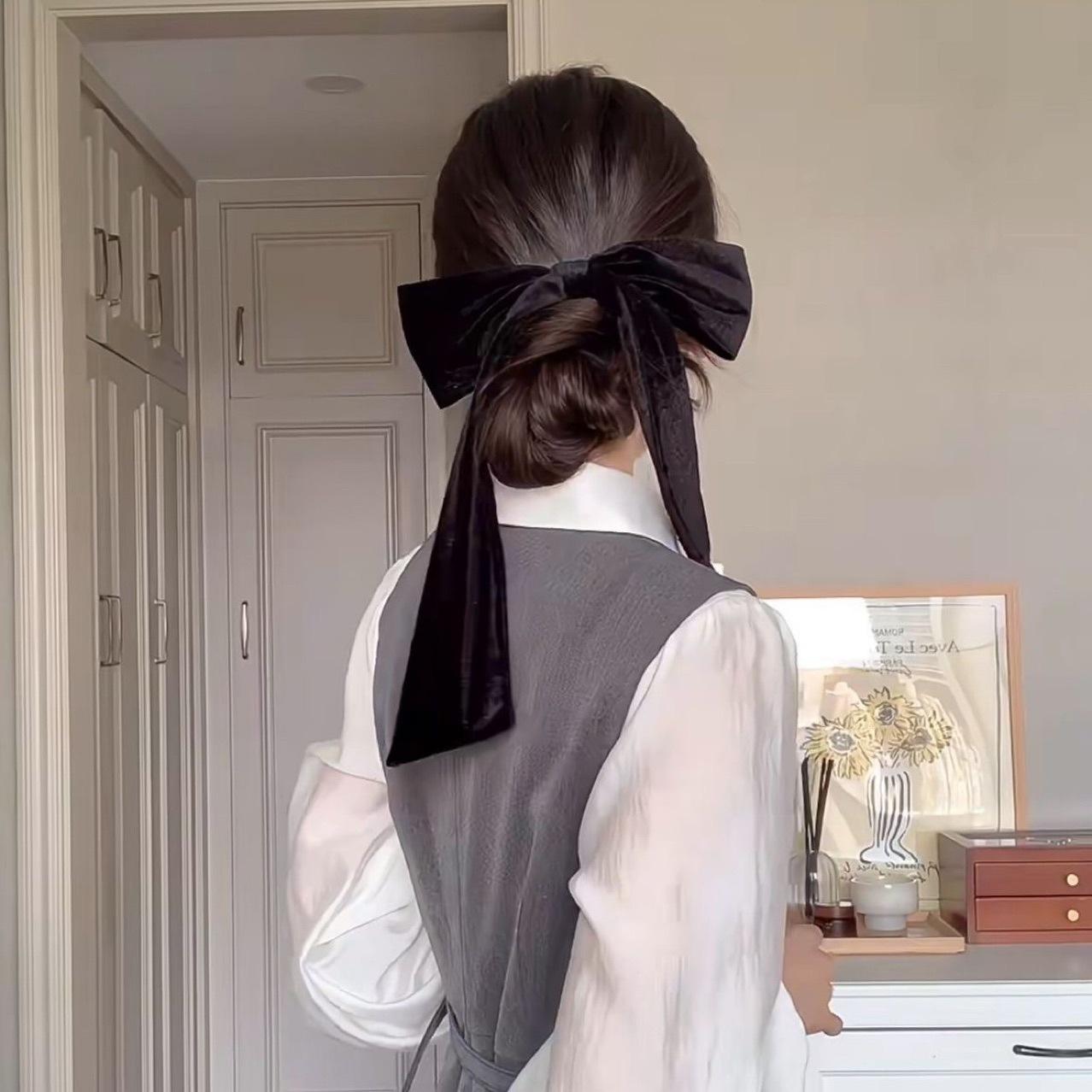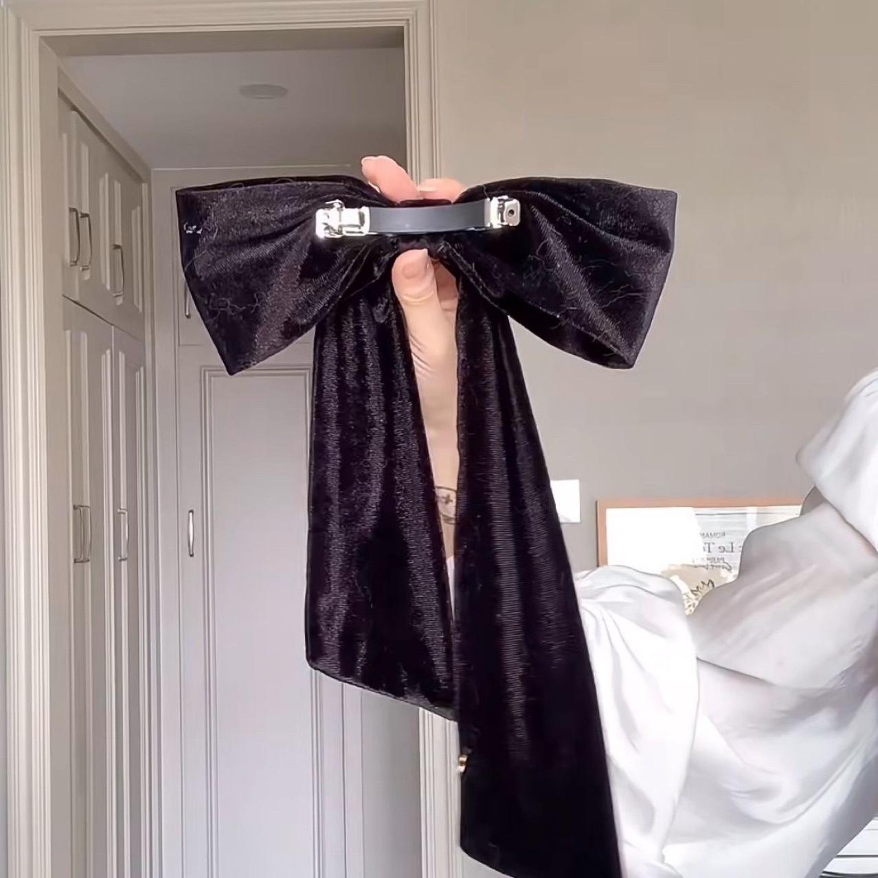 Horquilla elegante con lazo de terciopelo negro para la parte posterior de la cabeza, cinta con resorte, accesorios avanzados para el cabello, horquilla, tocado nuevo