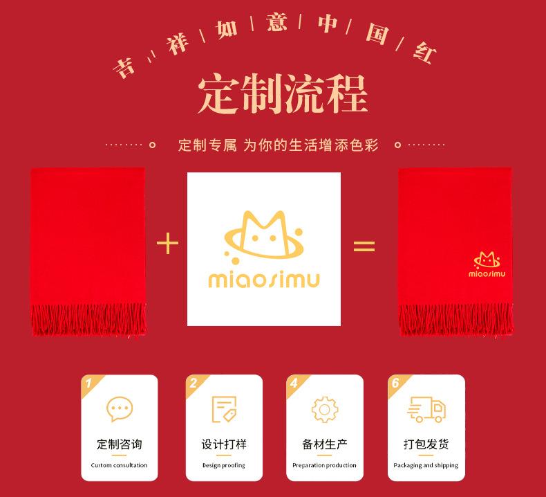 Bufanda roja china con el logotipo bordado, actividades de impresión, inauguración de la reunión anual, regalo, fiesta, chal de cachemira rojo, venta al por mayor