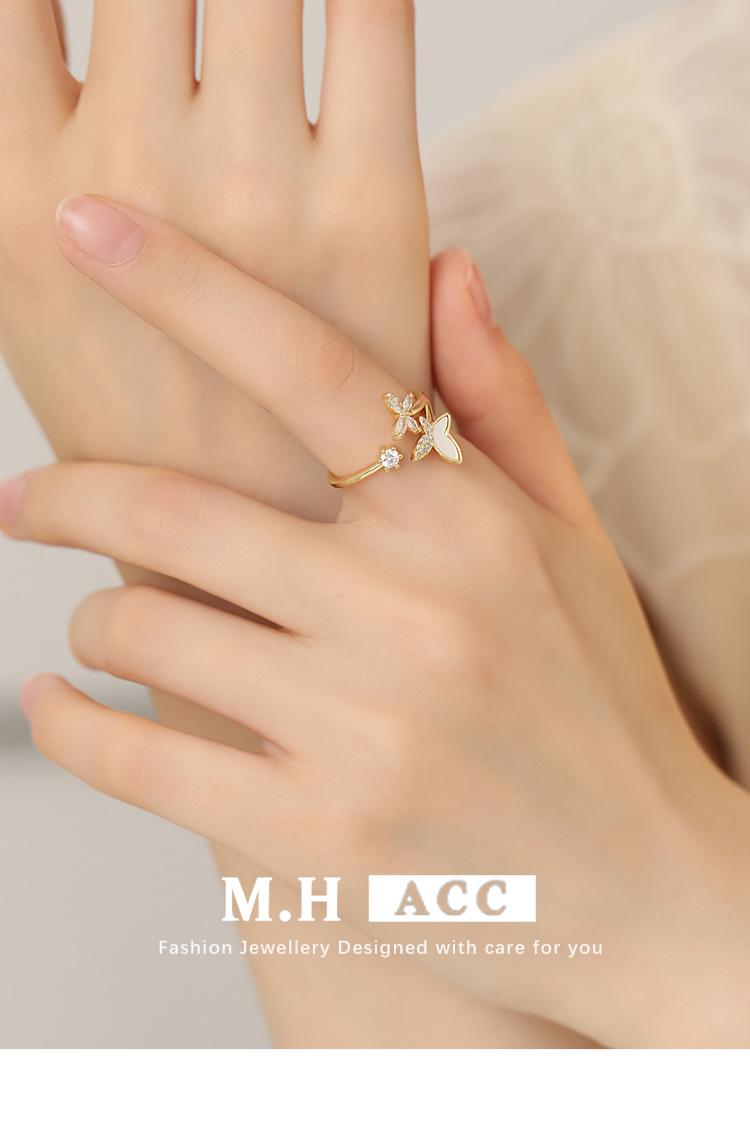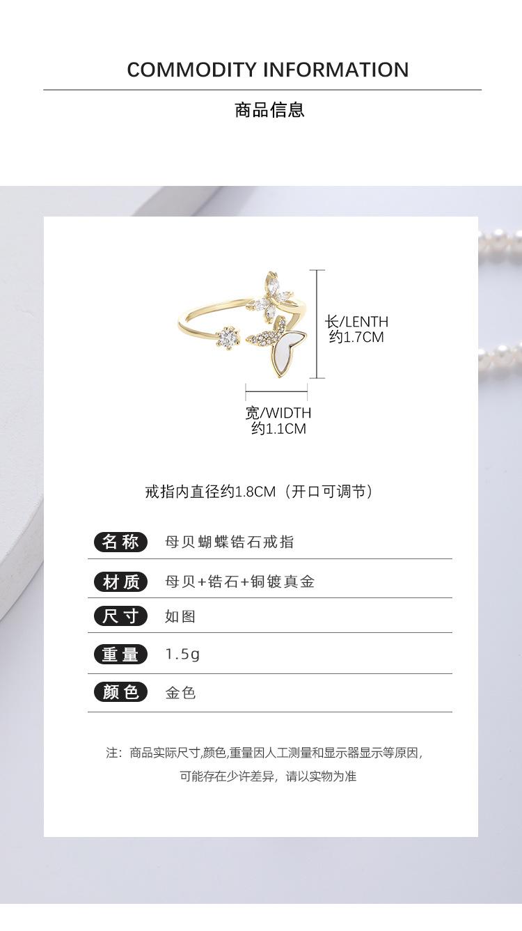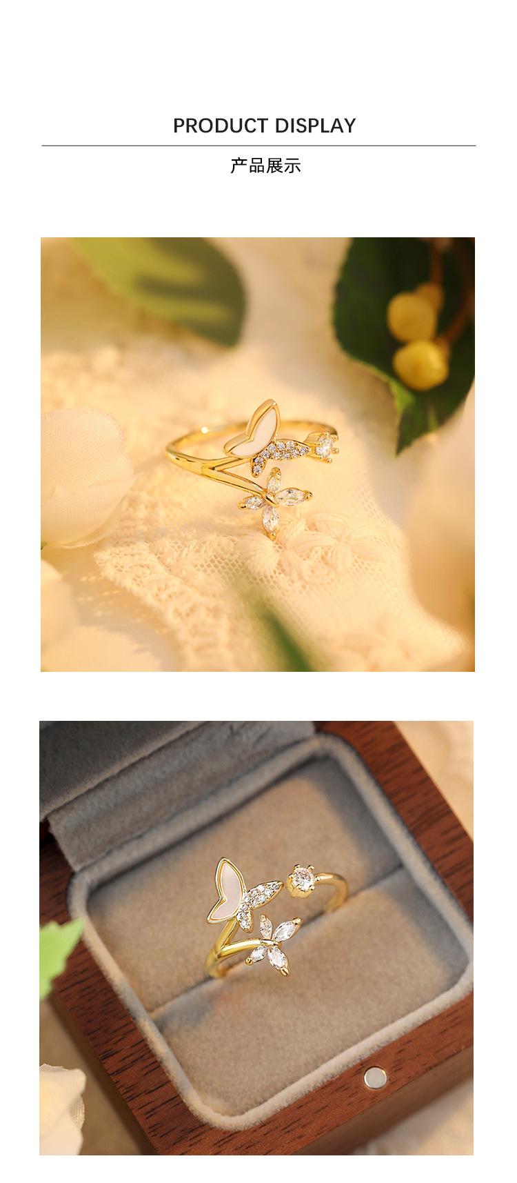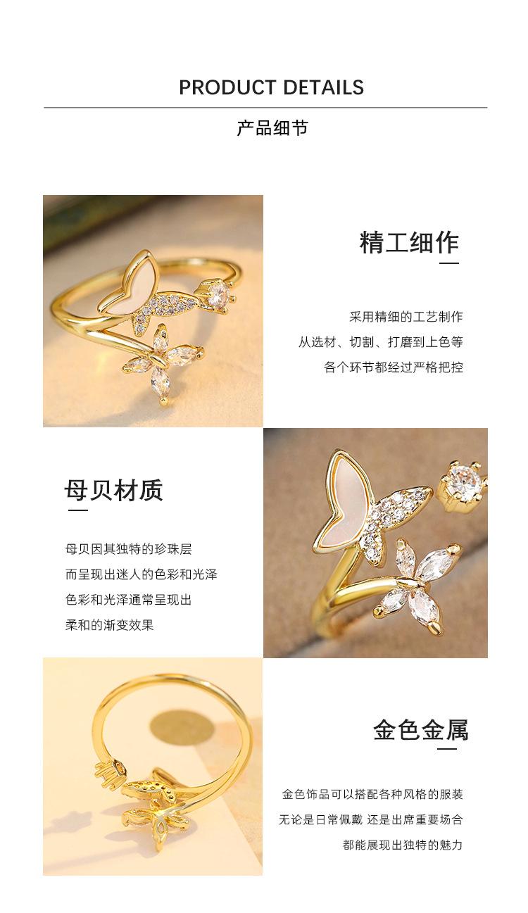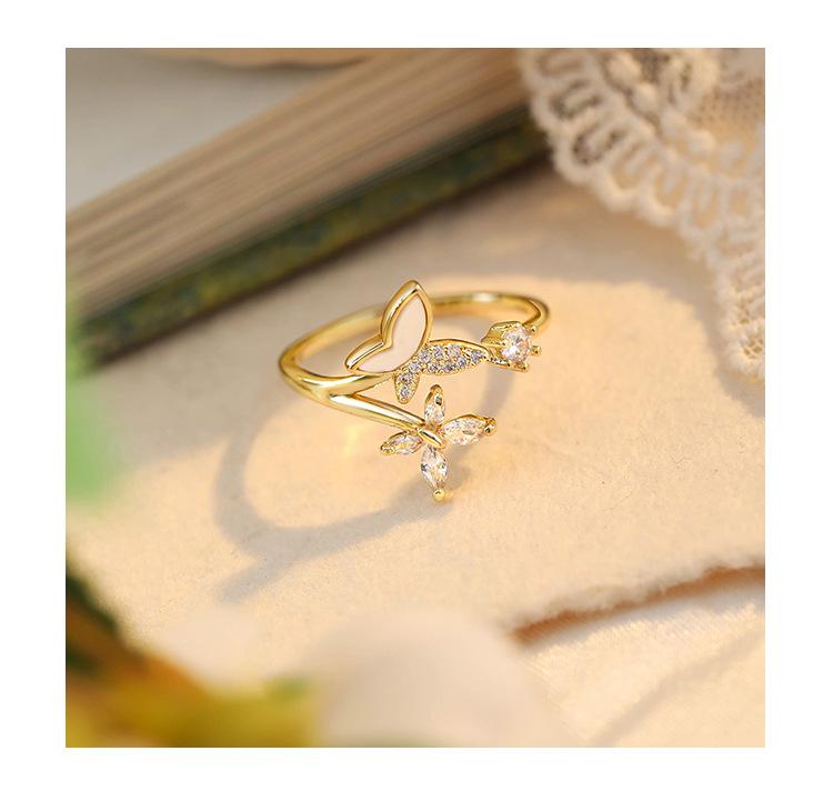 Anillo de Circonita Mariposa Madre del Bajo para Mujer Nicho de Alta Gama Lujo Ligero Anillo de Dedo Nueva Moda Elegante Anillo Abierto Venta al por Mayor